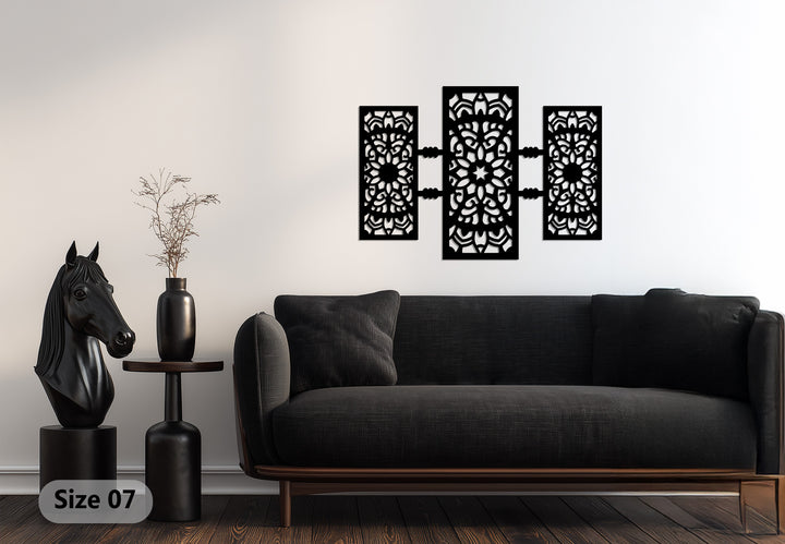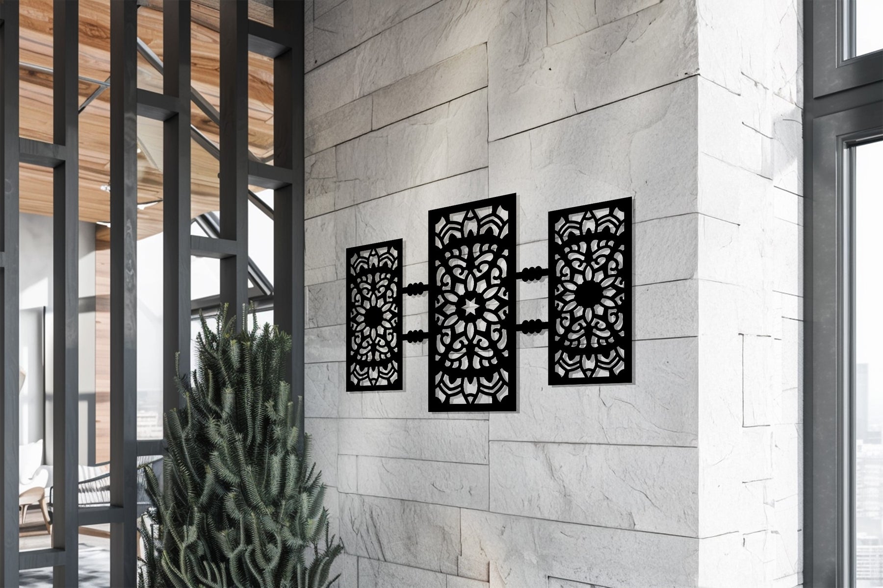 تناغم الأرابيسك – تصميم هندسي ثلاثي الأجزاء فن جداري معدني