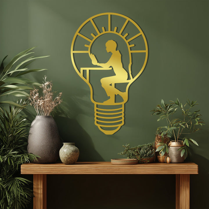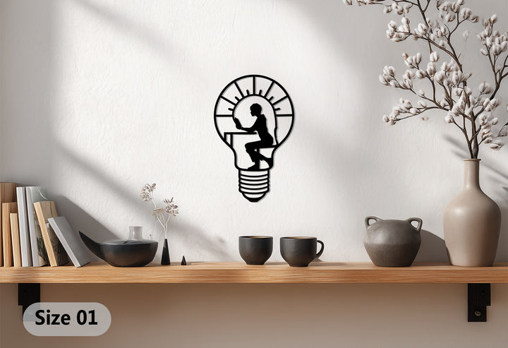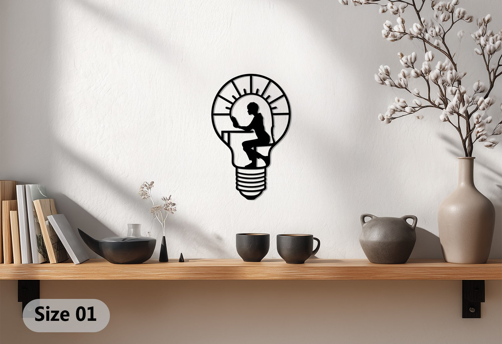 أشعل خيالك مع عقل نيّر فن جداري معدنيرمزٌ للابتكار والفكر. يتميز هذا التصميم برسمٍ دقيقٍ لشخصية مفكر داخل مصباحٍ متوهج، ليجسد جوهر الإبداع والتركيز والإلهام. خطوطه الأنيقة ولمسته المعدنية العصرية تجعله قطعةً مميزةً مثاليةً لأماكن العمل أو غرف الدراسة أو الاستوديوهات الإبداعية.