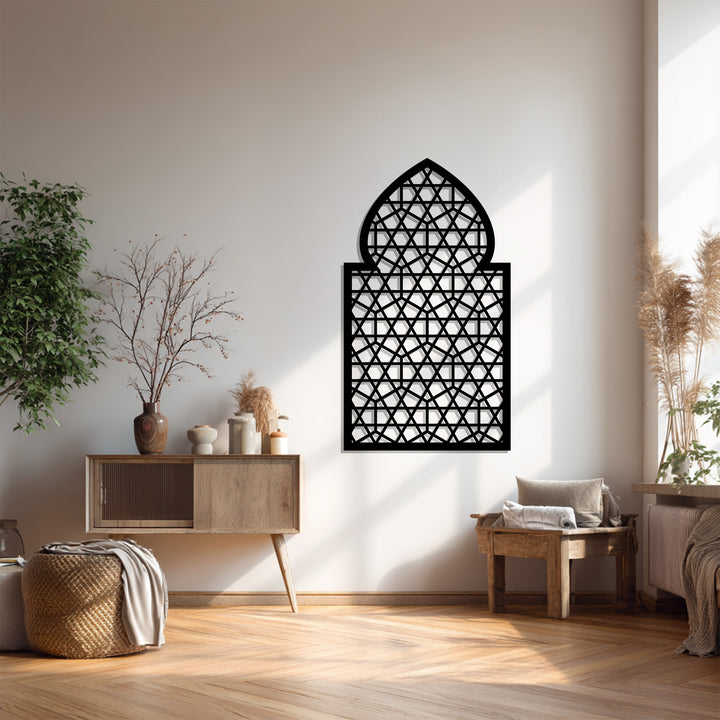 أضف لمسة من الأناقة الراقية والجمال المعماري إلى منزلك مع التناظر الإلهي – الهندسة الزخرفية فن جداري معدنيتتميز هذه التحفة الفنية العمودية بترتيب معقد من المنحنيات المتدفقة والزخارف المتناظرة، مما يرمز إلى الانسجام والرقي الخالد.