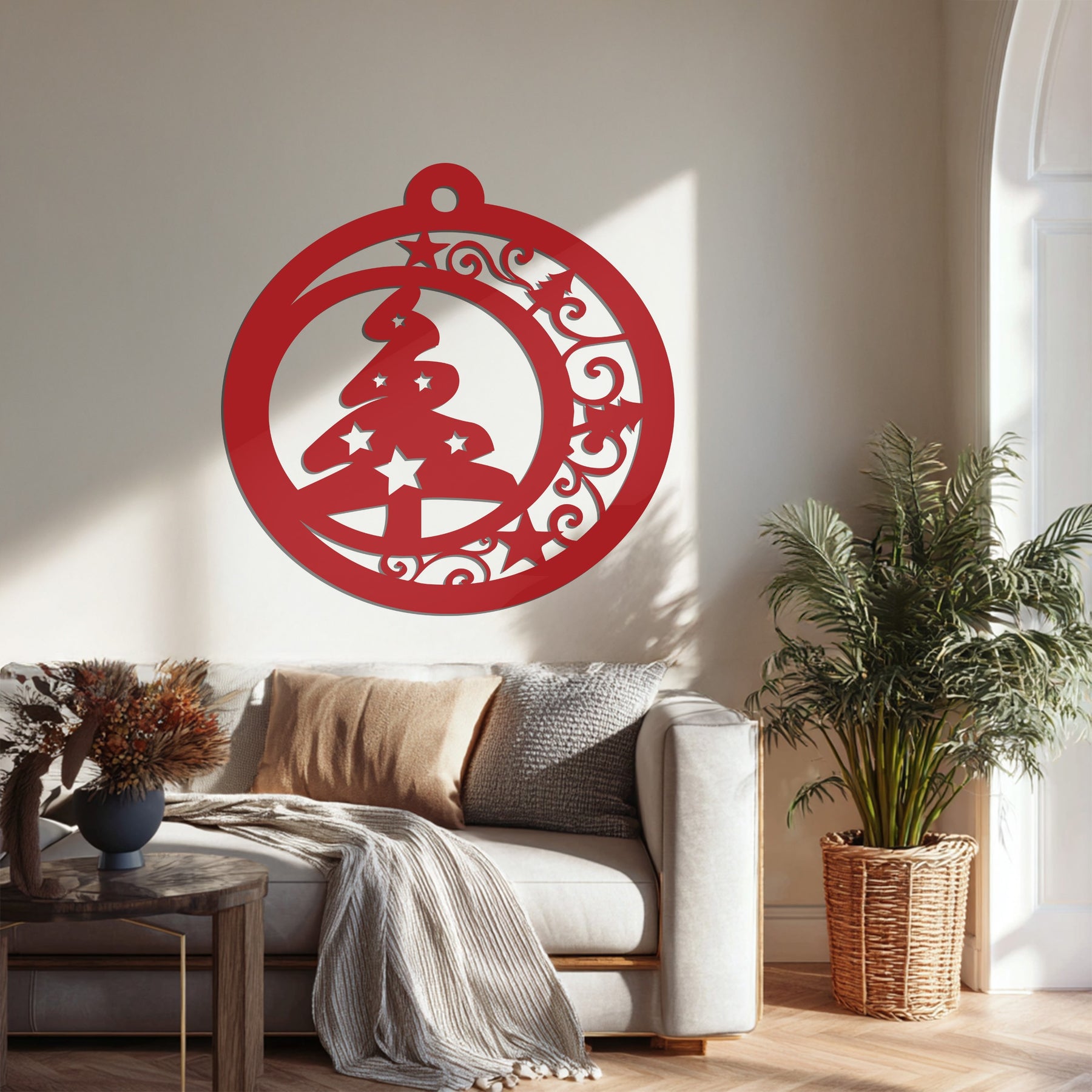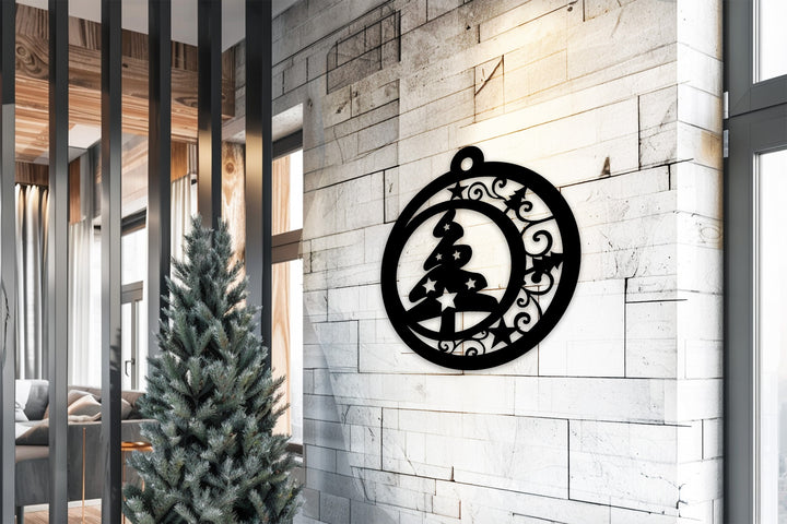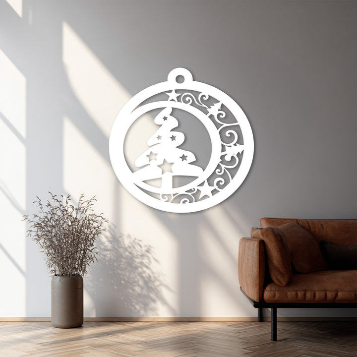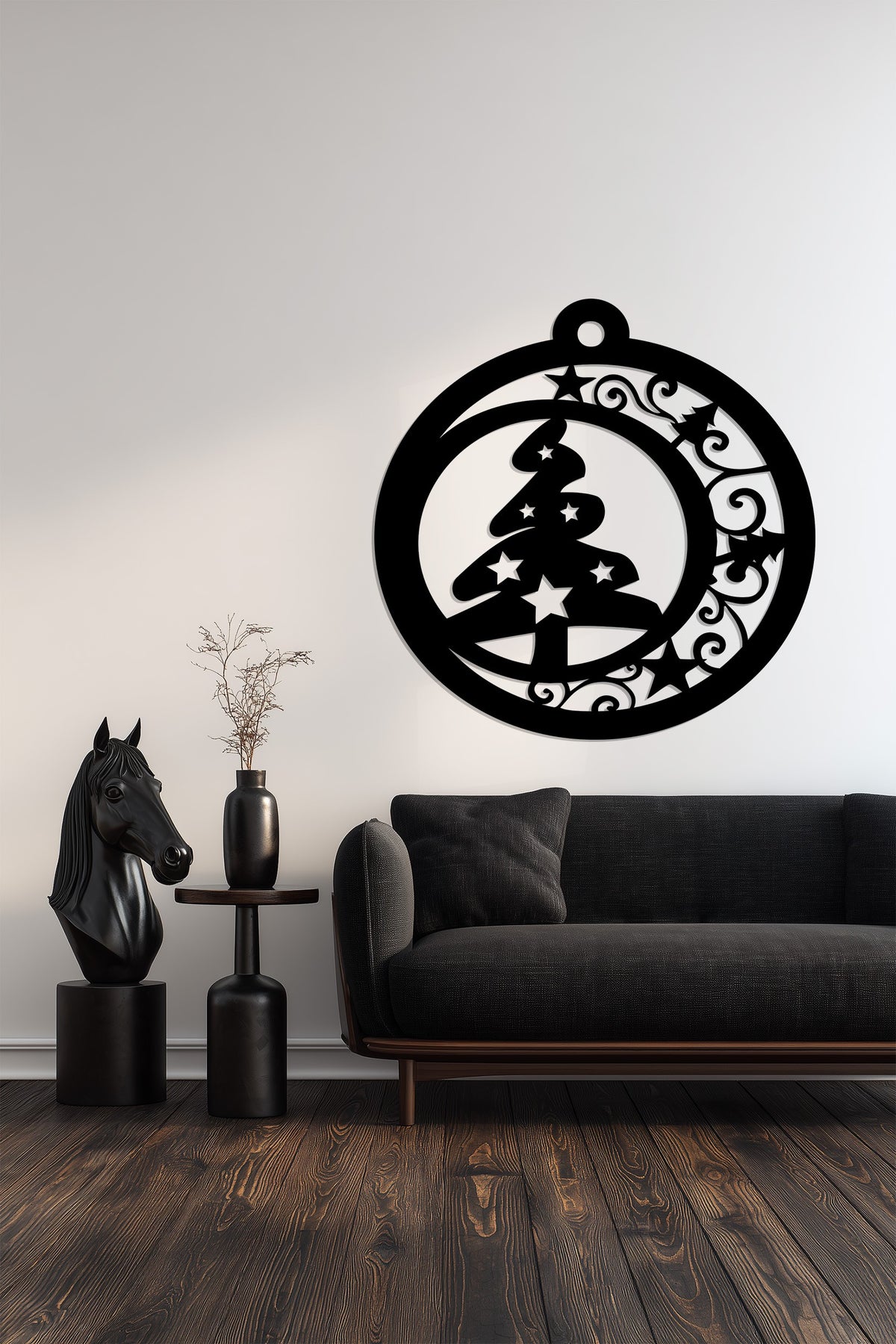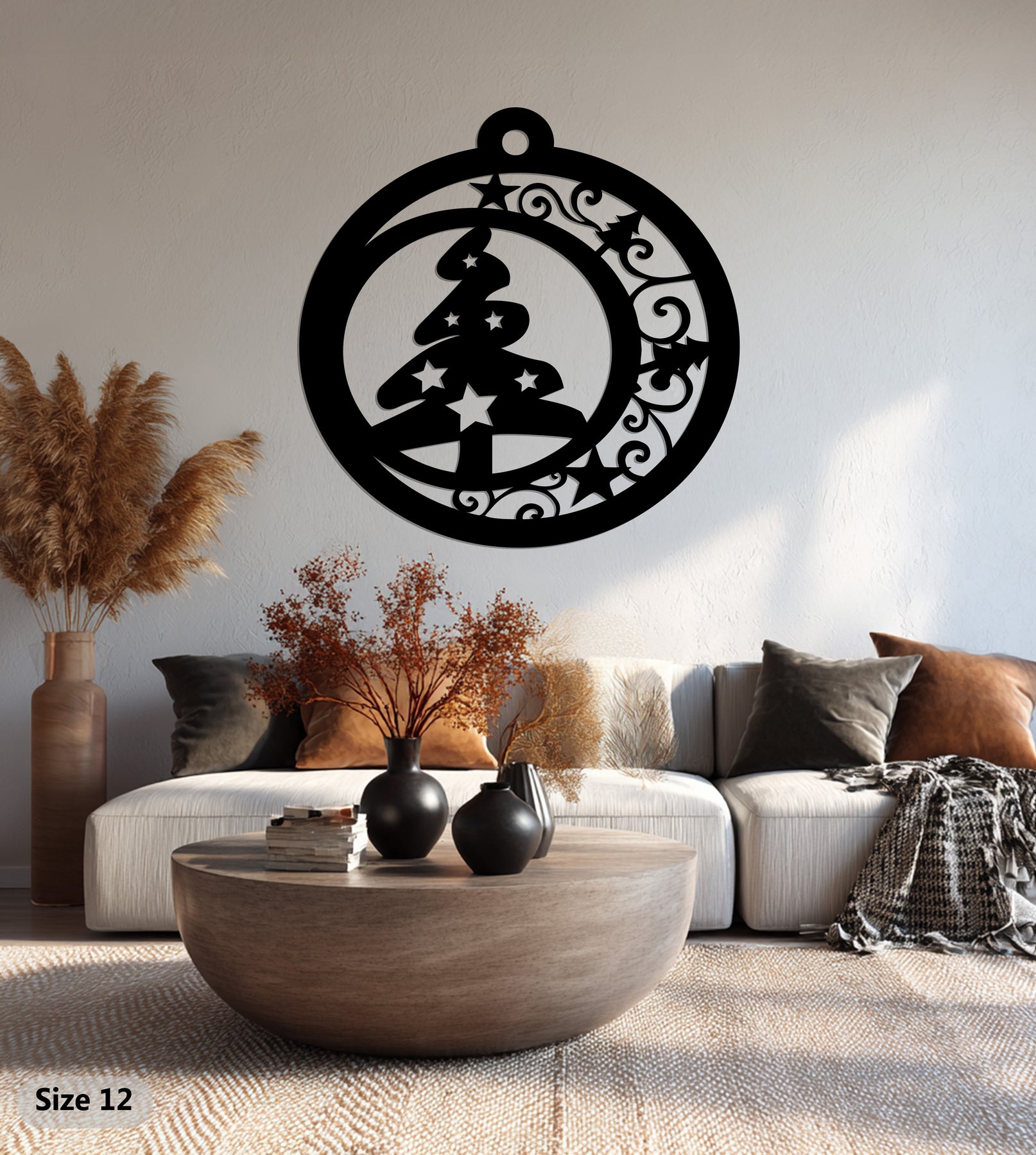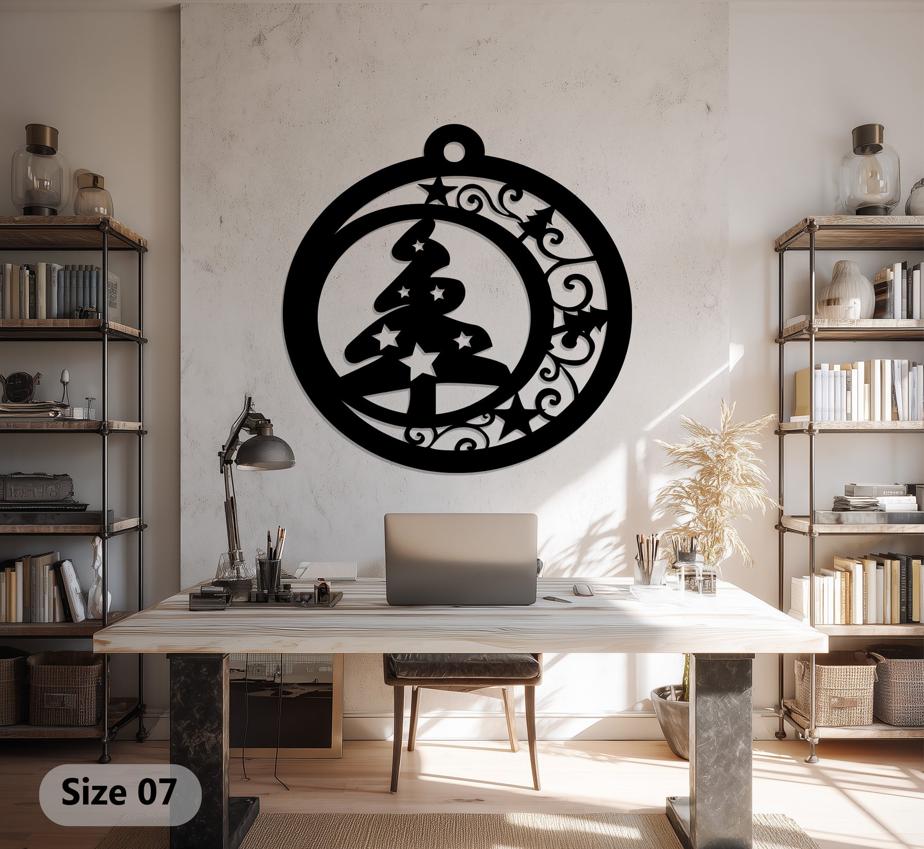أضف سحر العطلات إلى منزلك مع عيد ميلاد سماوي فن جداري معدنييتميز هذا التصميم بشجرة عيد ميلاد أنيقة محاطة بنجوم متلألئة وزخارف هلالية، ليجمع بين روح الاحتفال وفن راقٍ. يرمز إطاره الدائري إلى الوحدة والفرح، مما يجعله إضافة مثالية لديكور جدران منزلك في عيد الميلاد.