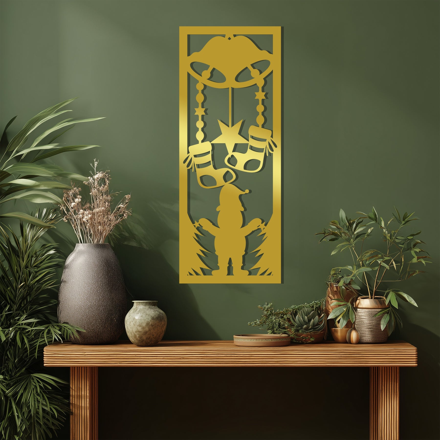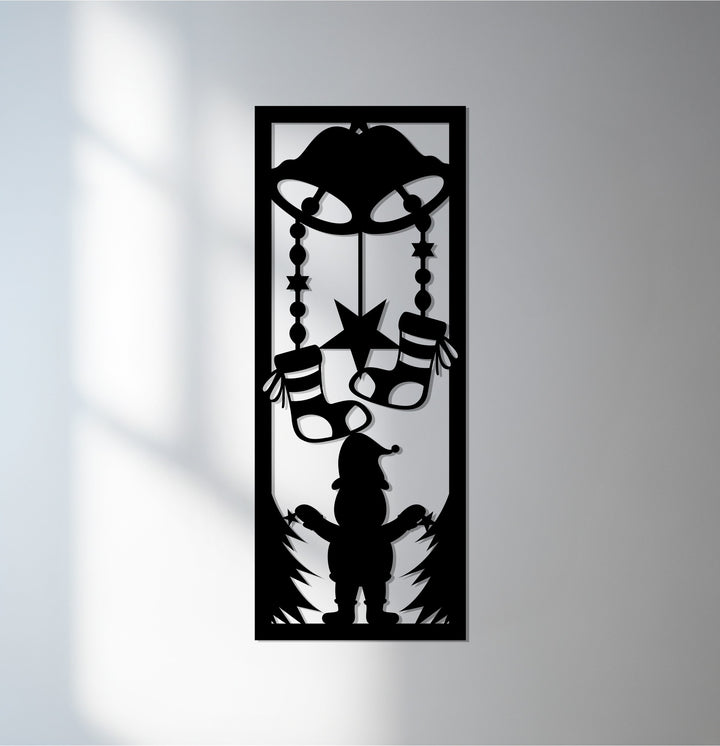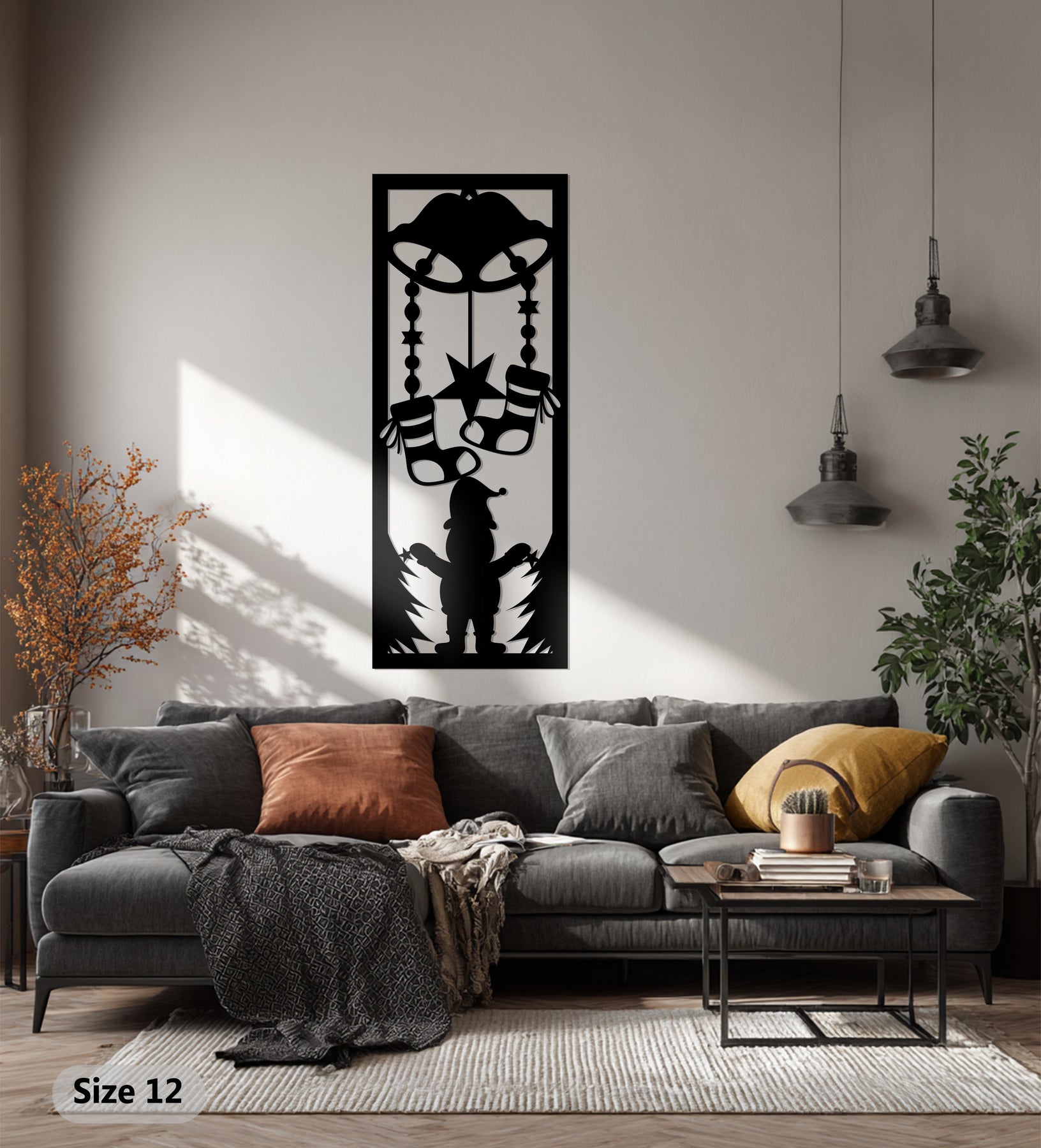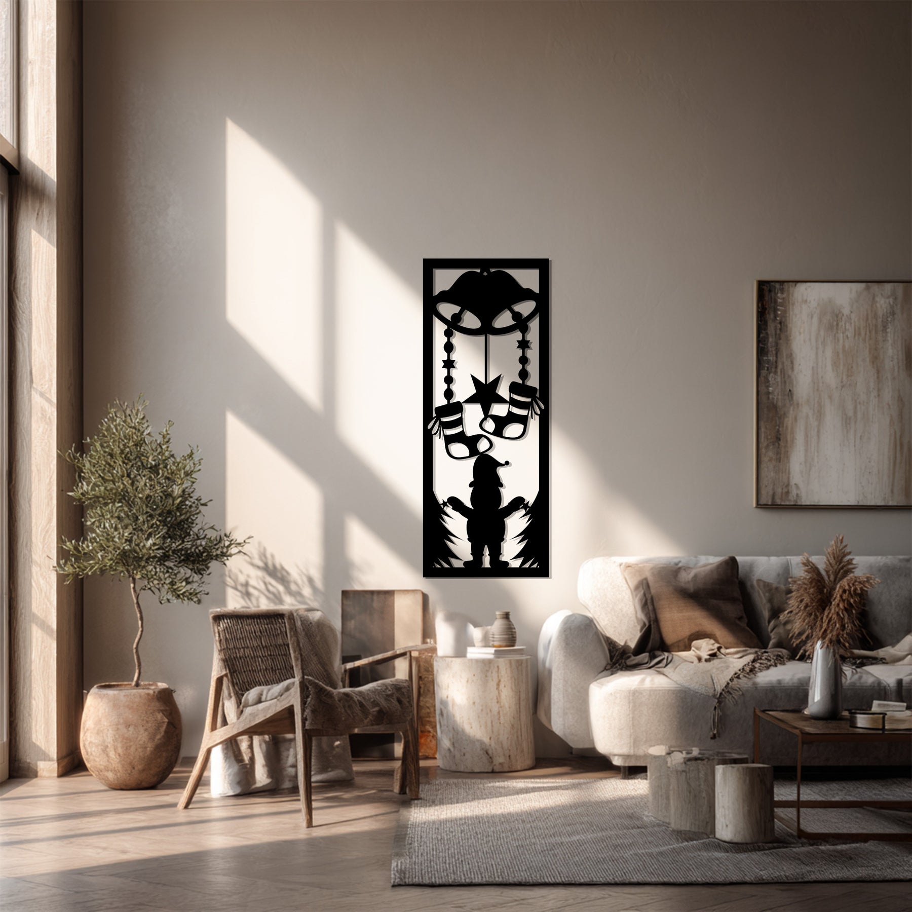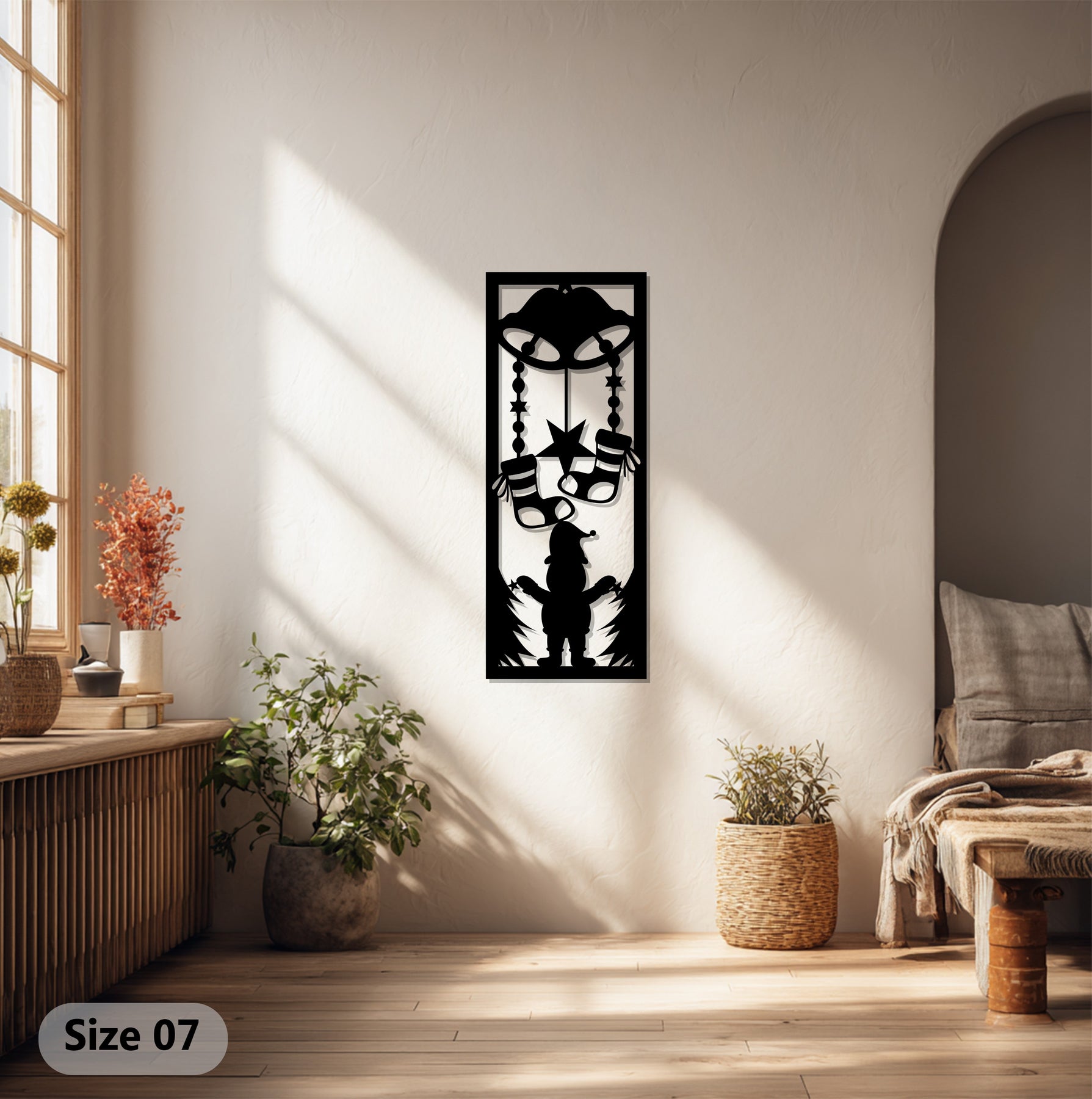 أضف روح عيد الميلاد المبهجة إلى منزلك مع أجراس عيد الميلاد فن جداري معدنييتميز هذا التصميم العمودي الساحر بجنية مرحة محاطة بجوارب معلقة ونجوم وأجراس احتفالية، ترمز إلى الدفء والعائلة والاحتفال. بفضل تركيبته المرحة وتفاصيله الدقيقة، يُعد قطعة مميزة للممرات أو المداخل أو بالقرب من شجرة عيد الميلاد.