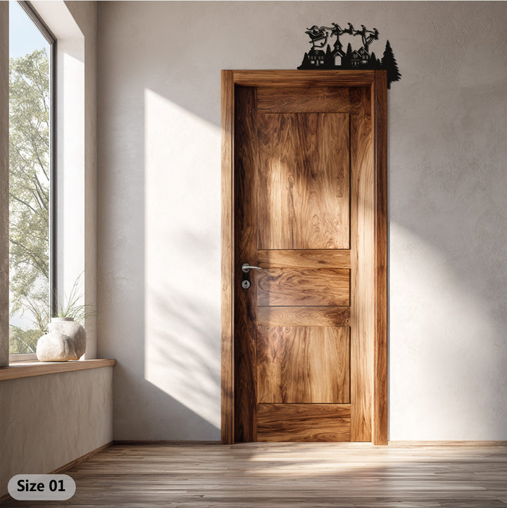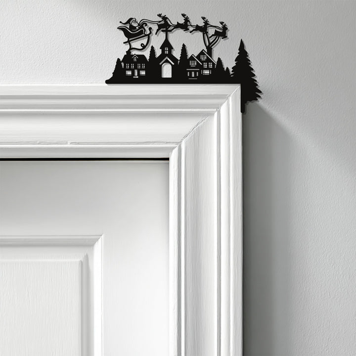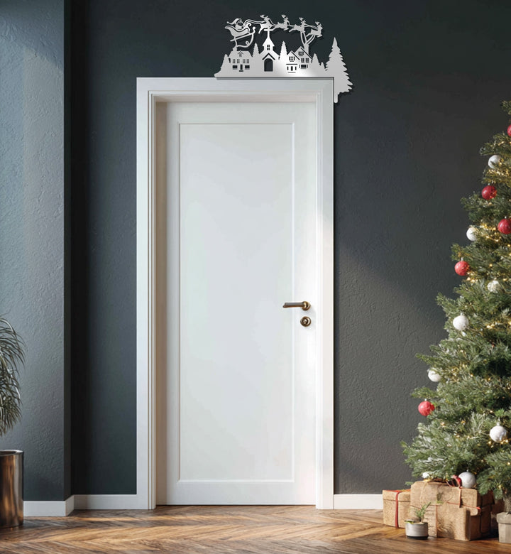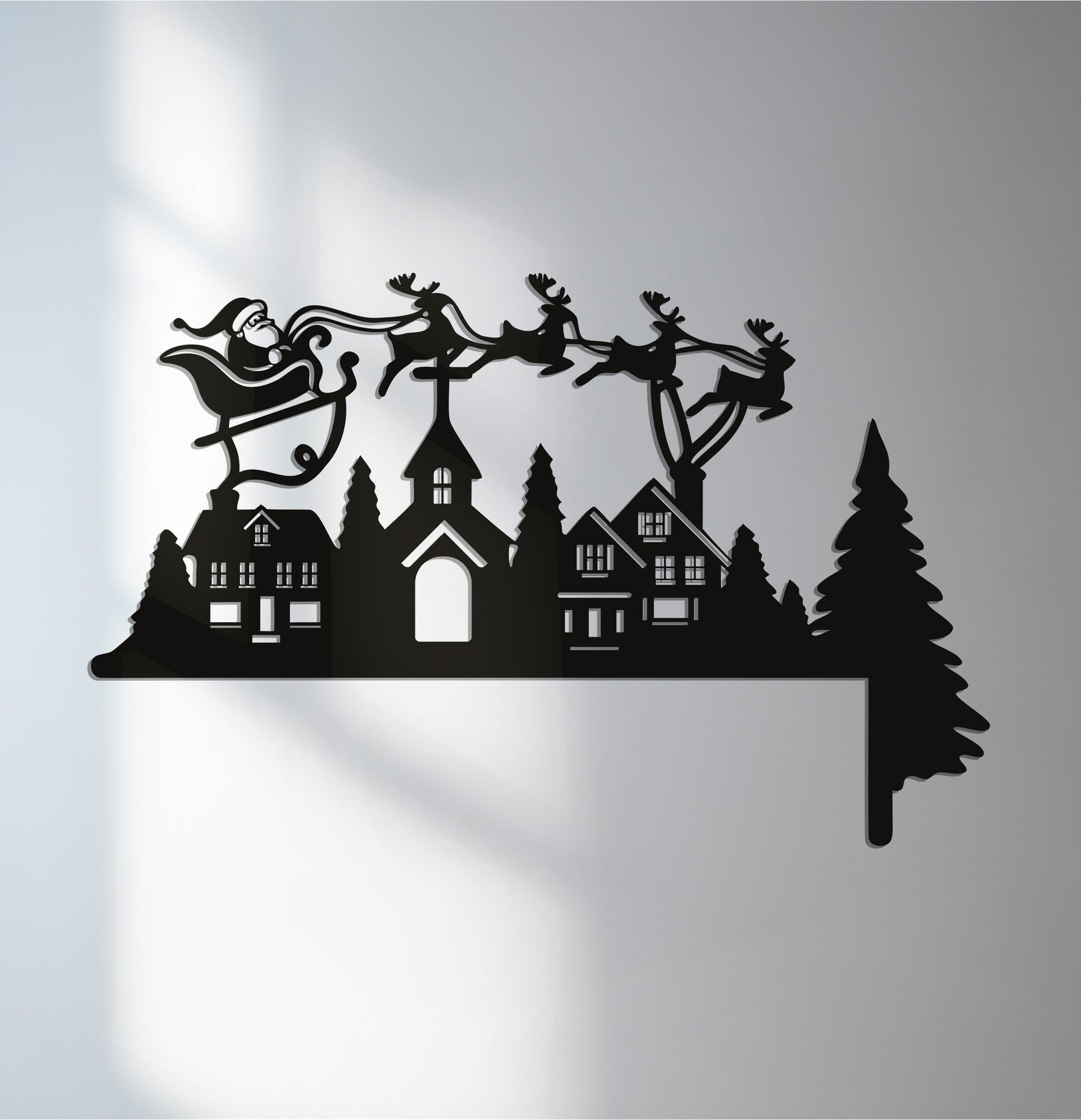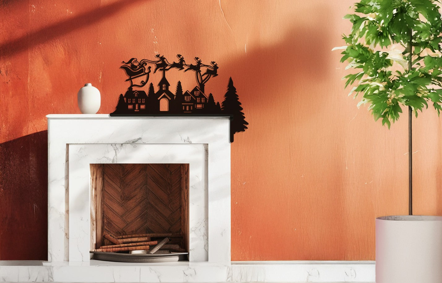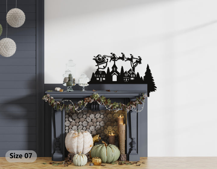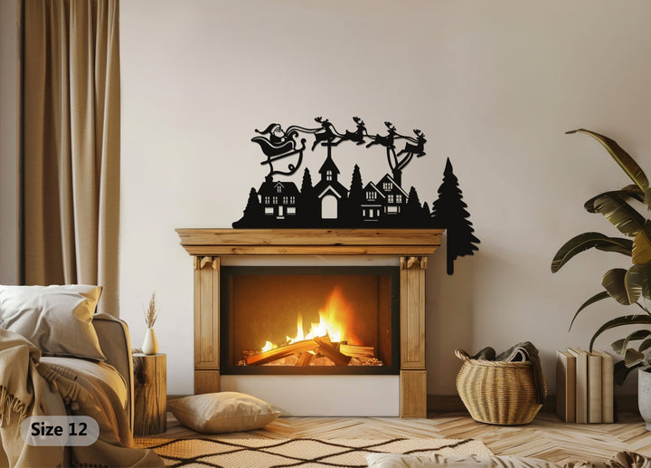 أضف سحر ليلة عيد الميلاد إلى منزلك مع قرية ليلة عيد الميلاد – ديكور مدفأة معدني على شكل زلاجة سانتاتتميز هذه القطعة الفنية الرائعة بوجود سانتا ورنة يحلقون فوق قرية دافئة وكنيسة، وهي تجسد روعة ودفء موسم الأعياد.