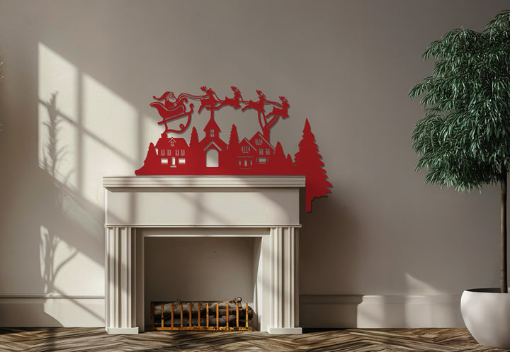 قرية ليلة عيد الميلاد – ديكور مدفأة معدني على شكل زلاجة سانتا