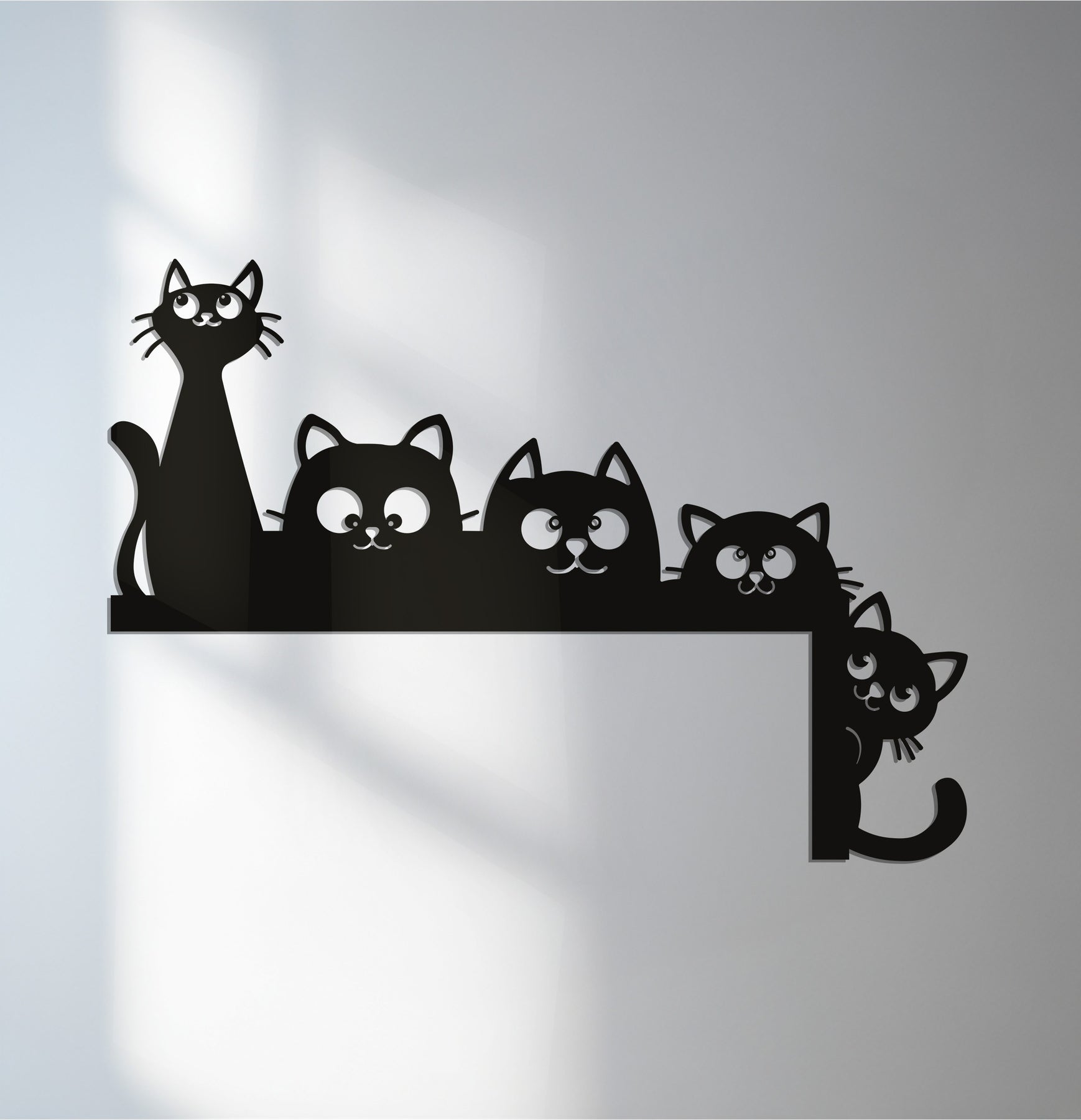 أضف البهجة والجمال إلى منزلك مع رفقاء فضوليون - قطط مرحة فن جداري معدنييتميز هذا التصميم الساحر بصف من القطط الفضولية التي تُطل من الحافة، مما يضفي على الفور دفئًا وروح دعابة وشخصية مميزة على أي مكان. تُعدّ الخطوط المرحة والوجوه المعبرة قطعة فنية مثالية لعشاق القطط ومحبي الديكور العصري على حد سواء.