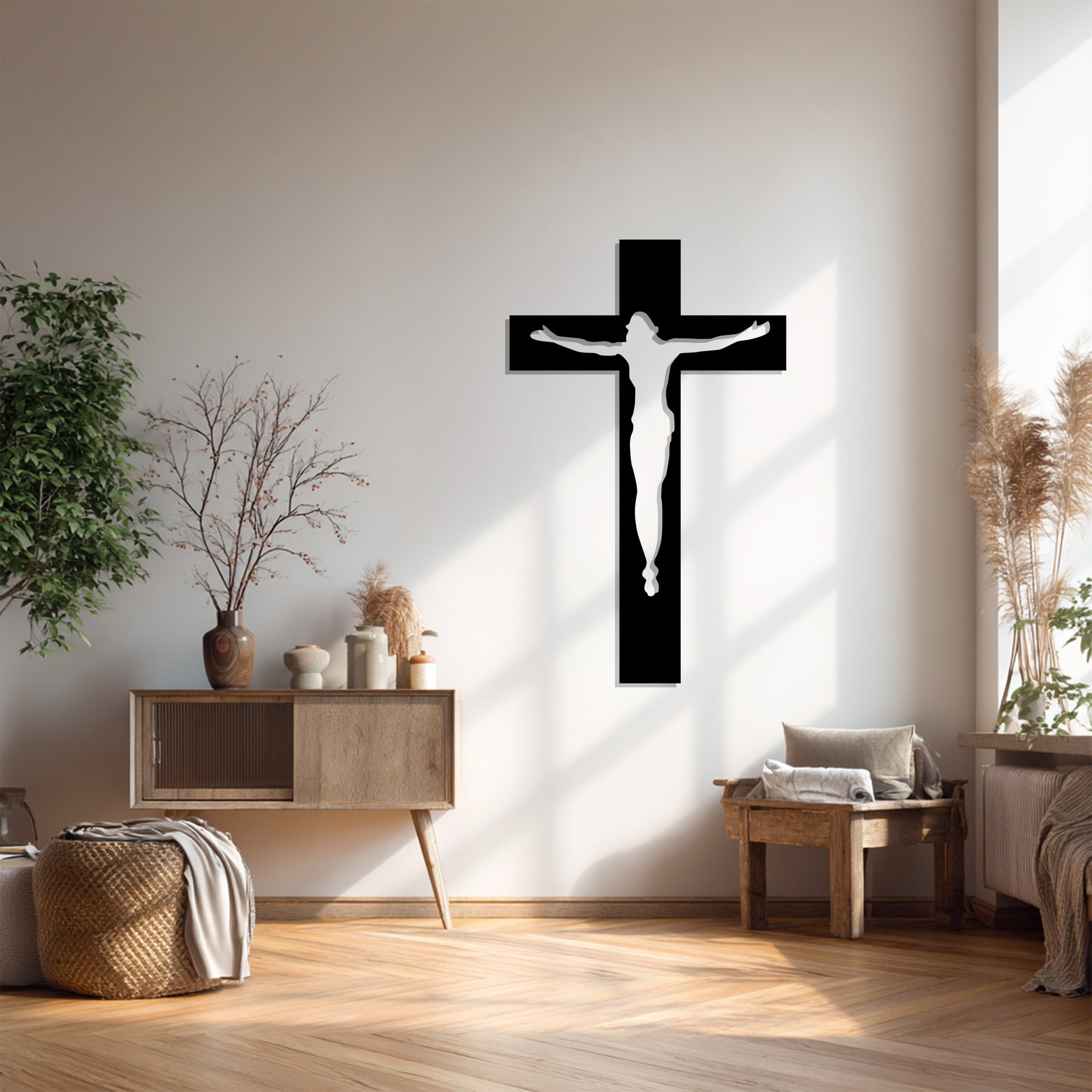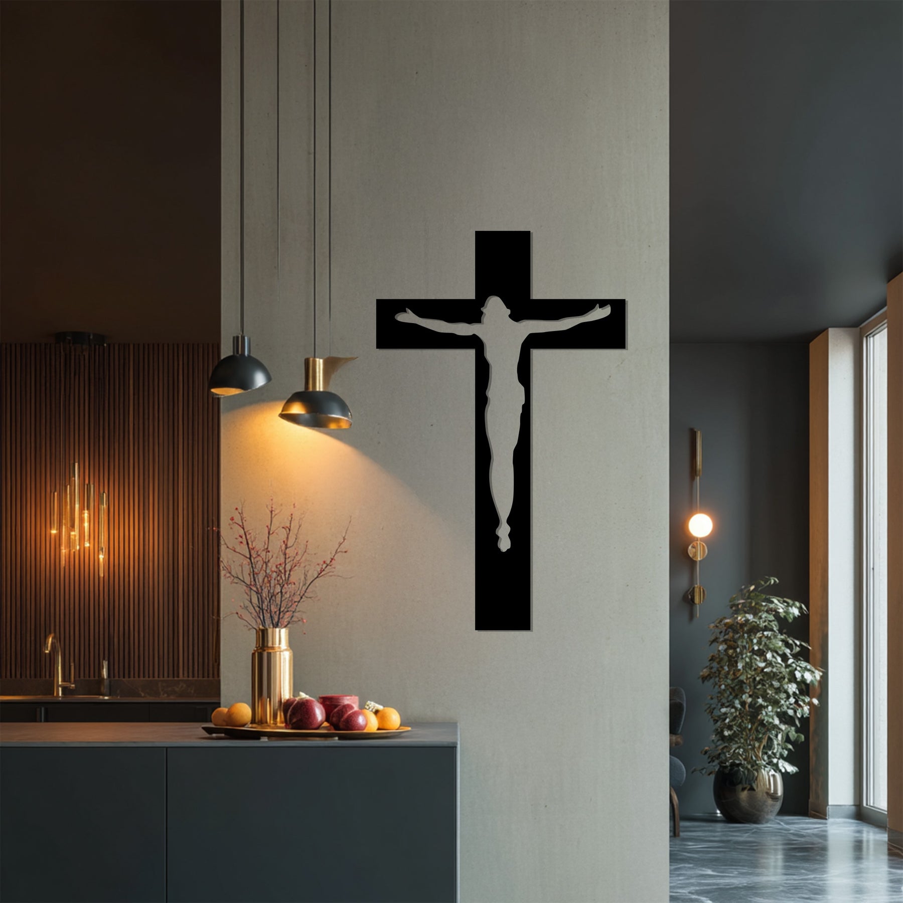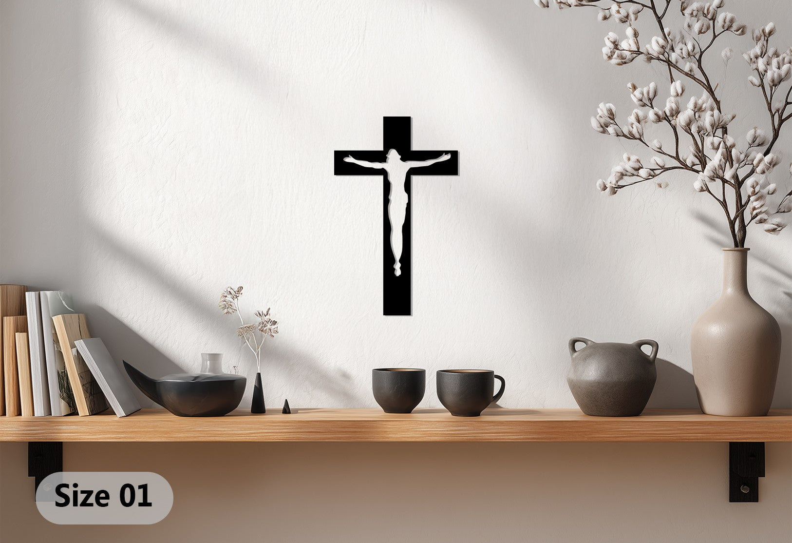 يُعد تصميم الصليب الراقي هذا مثالياً لغرف الصلاة والمنازل الحديثة أو الأماكن المقدسة، فهو يضفي قوة هادئة وجمالاً روحياً على أي جدار.