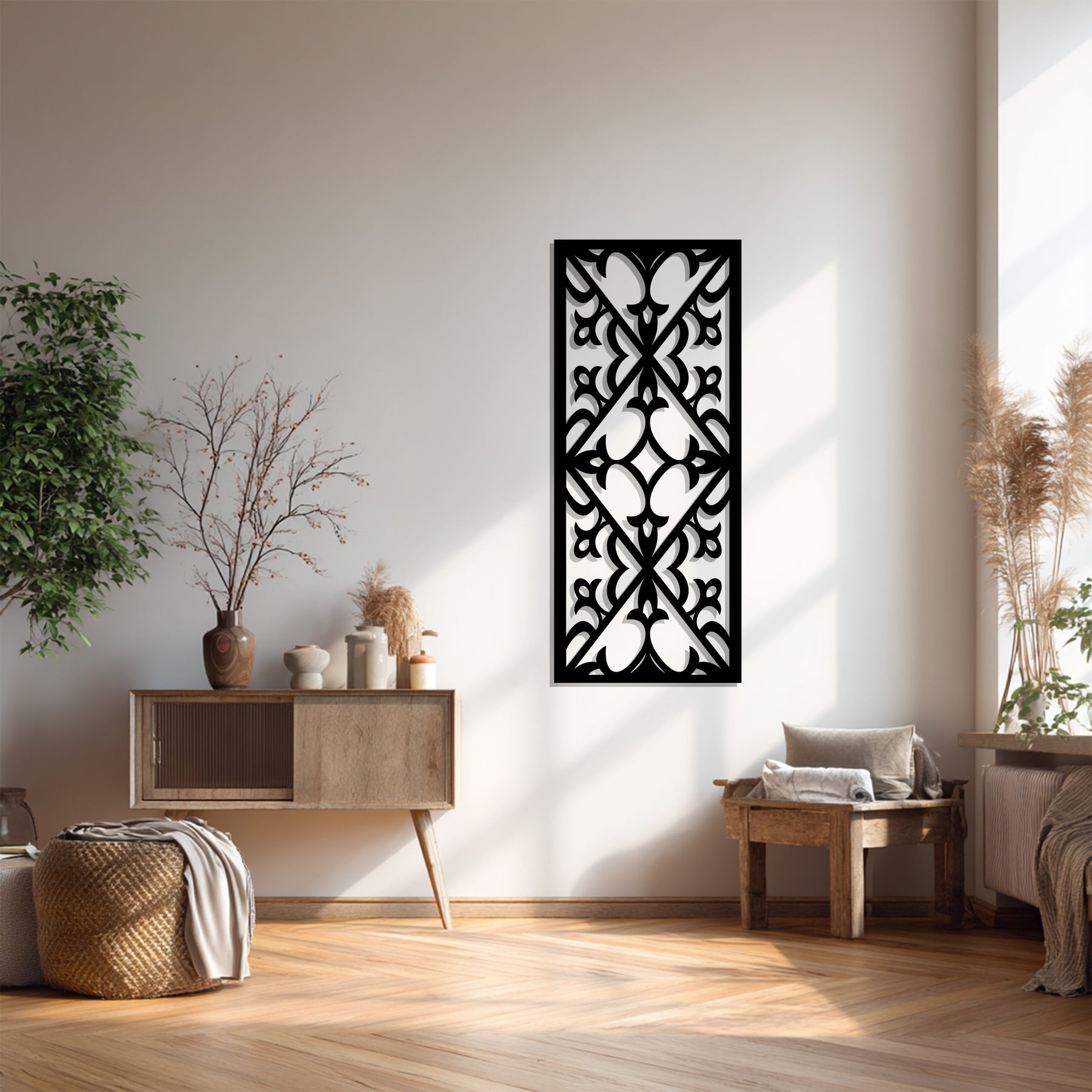 مصنوعة ببراعة بتقنية القطع بالليزر من معدن فاخر ومطلية باللون الأسود غير اللامع، تُضفي هذه القطعة الفنية لمسة جمالية أنيقة على أي ديكور داخلي. مثالية لغرف المعيشة، غرف النوم، الممرات، أو المكاتب، فهي تجمع بين الزخرفة الكلاسيكية والدقة العصرية.