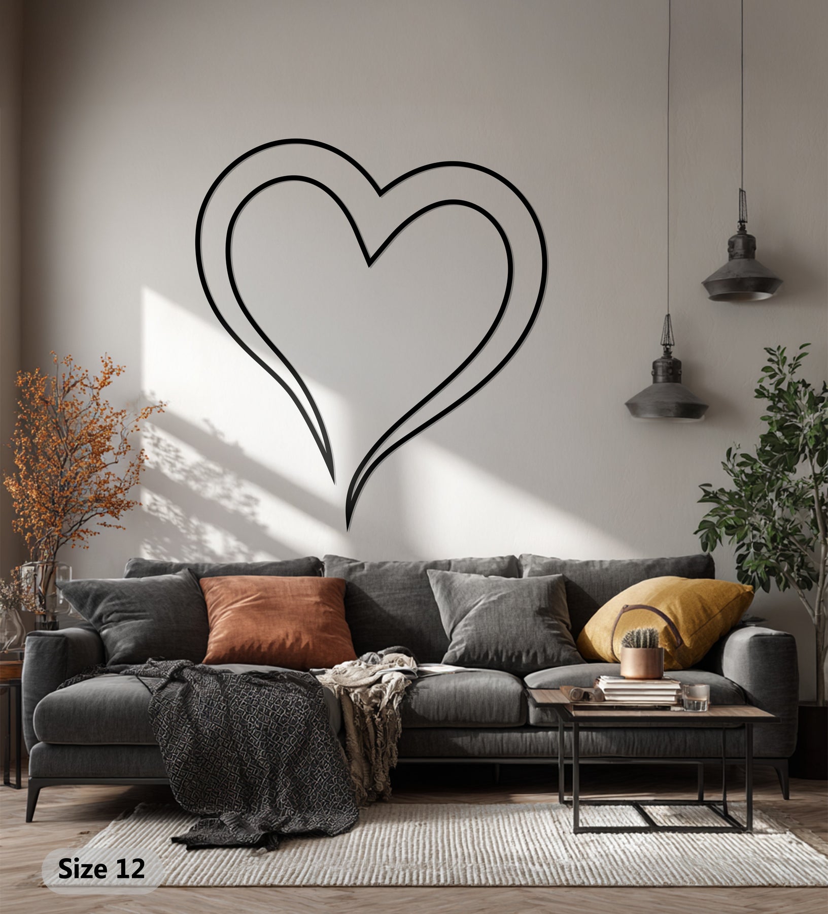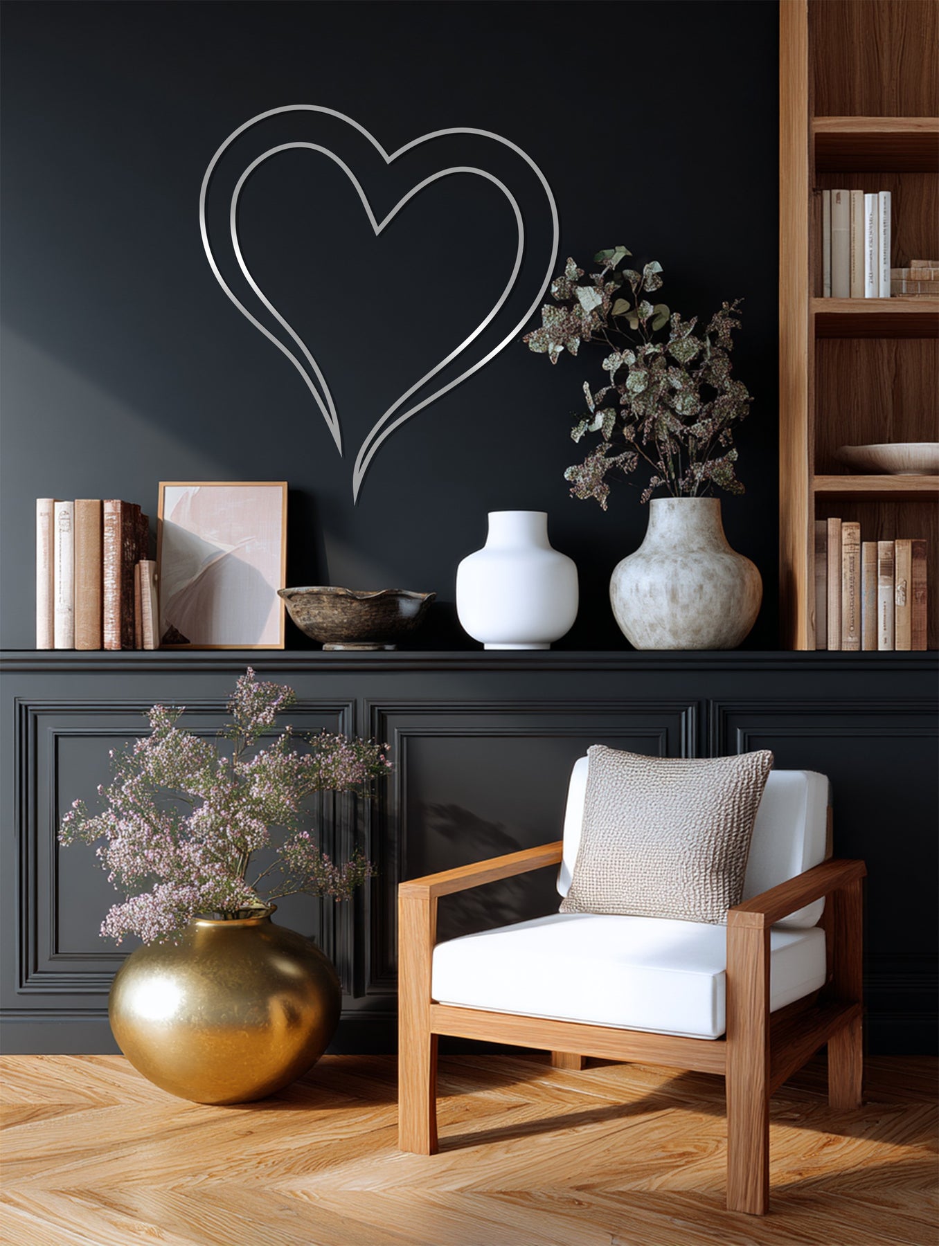 Elegant heart outline metal wall art