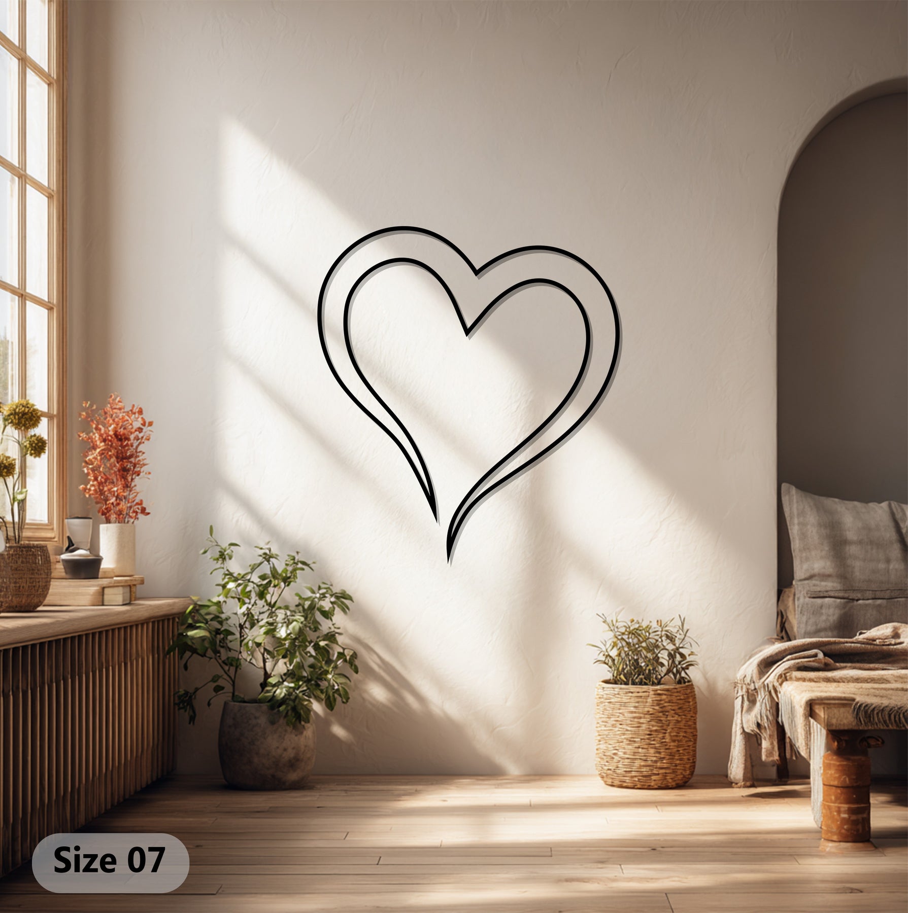 Minimal double heart outline wall decor