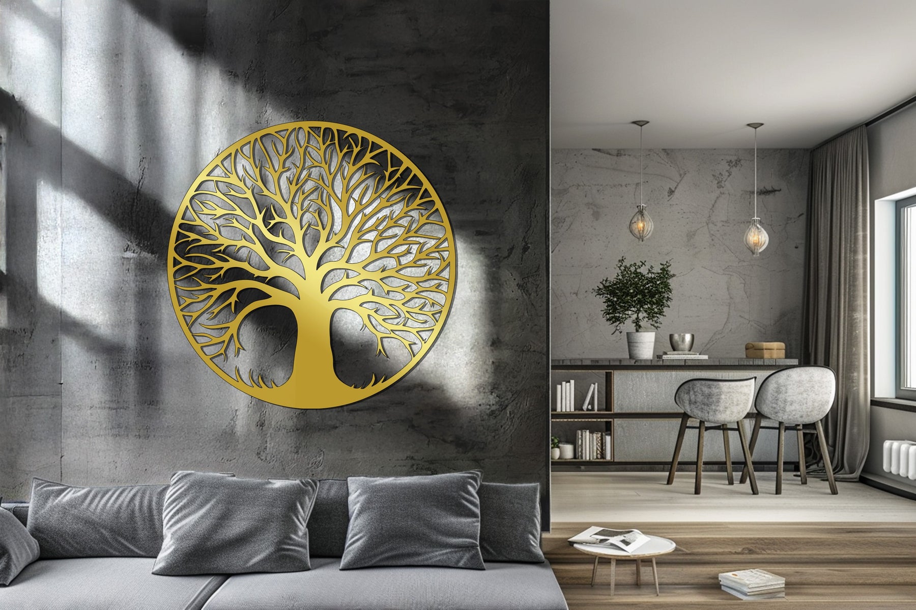 أدخل الانسجام والتوازن والجمال الخالد إلى منزلك مع جذور أبدية فن جداري معدنيترمز هذه الشجرة الدائرية المصممة بدقة إلى القوة والنمو والترابط، مما يجعلها قطعة مركزية مميزة لأي ديكور داخلي. تشع فروعها المتقنة أناقةً، تمثل التجدد المستمر للحياة والوحدة الطبيعية.