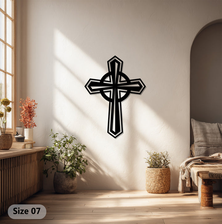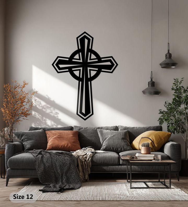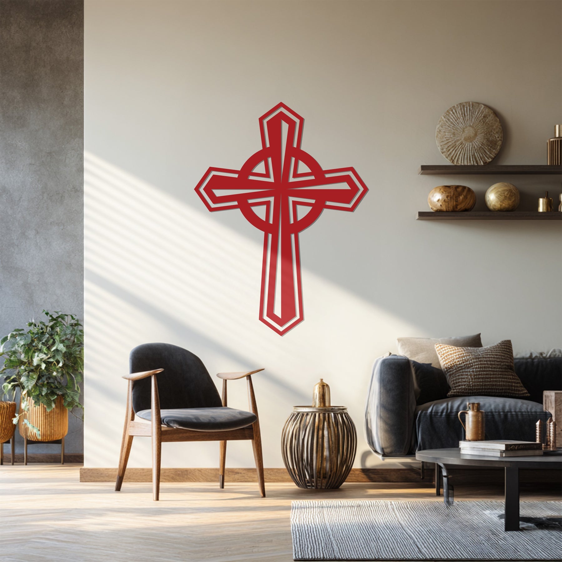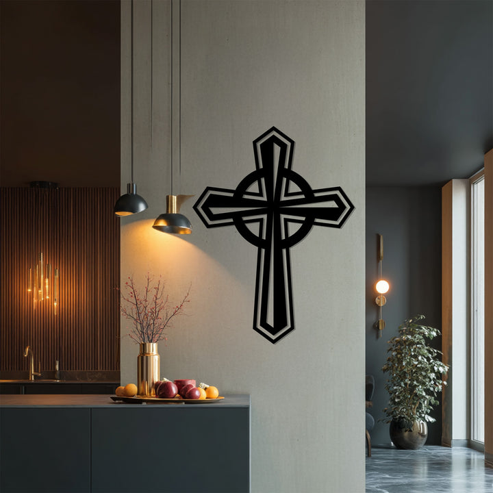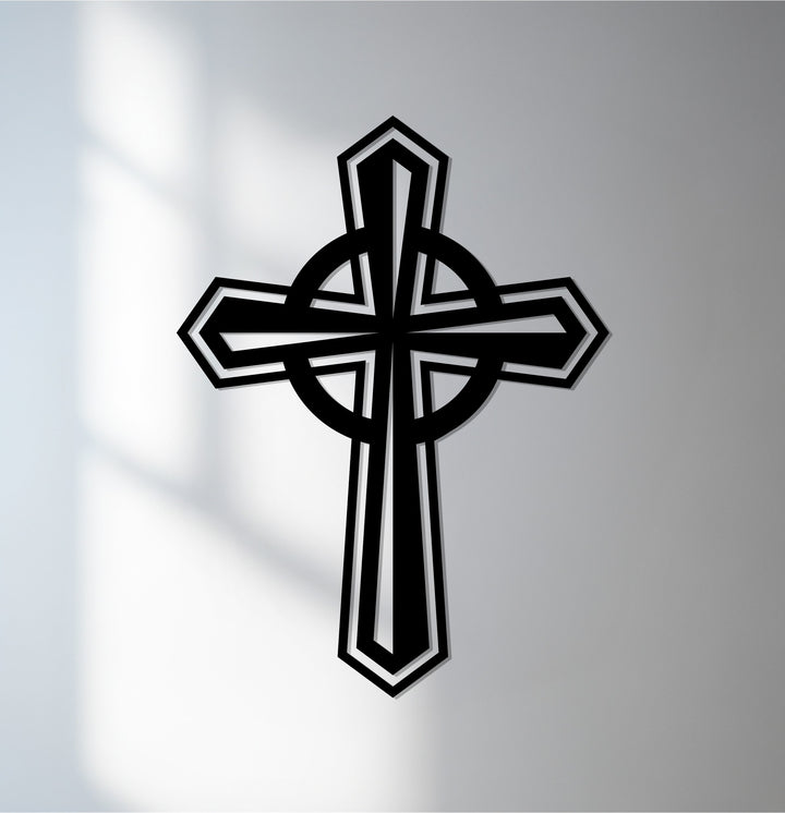 احتفل بتناغم الإيمان والفن مع الوحدة الأبدية فن جداري معدنيتتميز هذه القطعة الفضية الرائعة بتصميم صليب مستوحى من الفن السلتي، متشابك مع أشكال هندسية دائرية، يرمز إلى الخلود والتوازن والوحدة الإلهية. تضفي الخطوط الجريئة المصقولة عمقًا روحيًا ورقيًا عصريًا على أي ديكور داخلي.