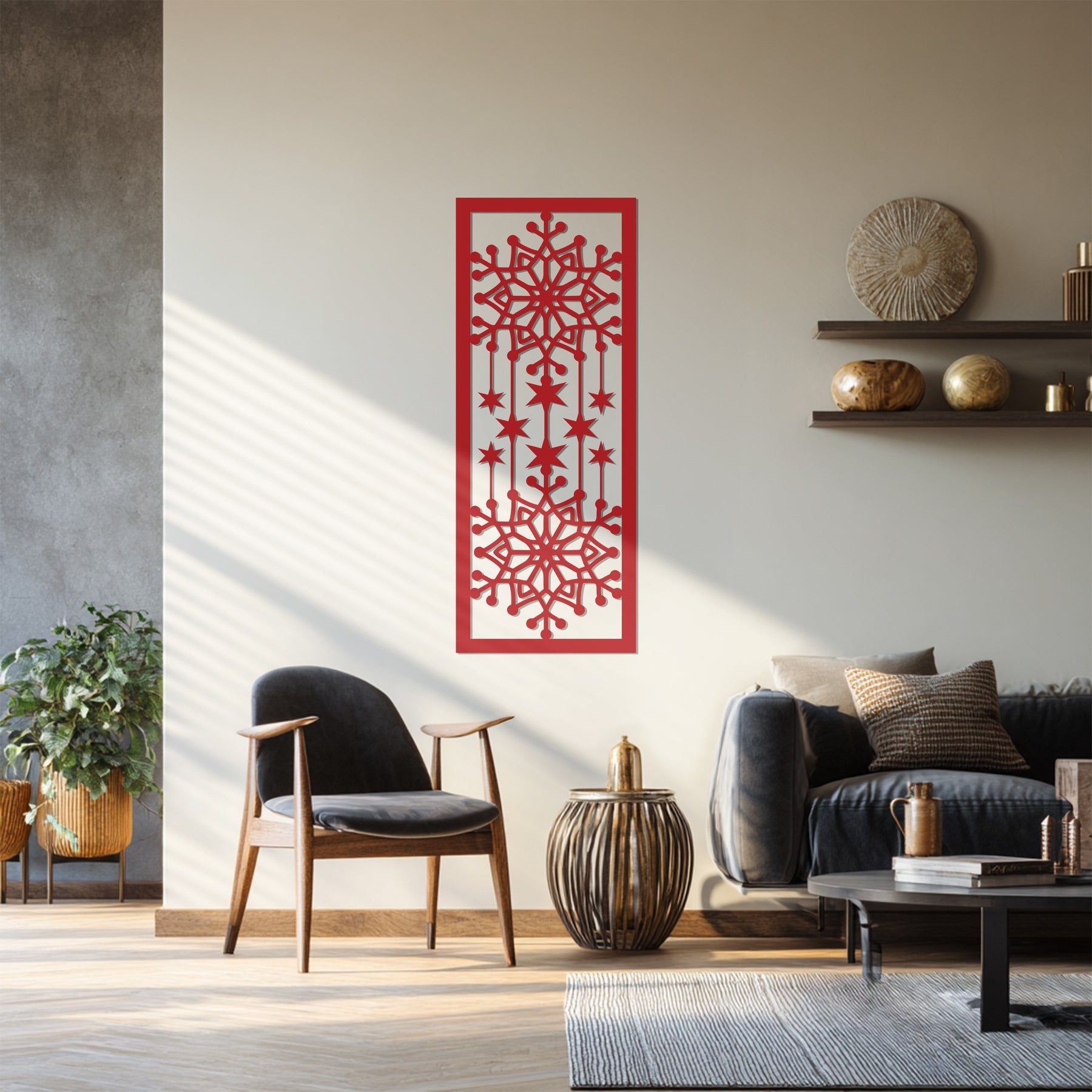 مصنوعة من معدن عالي الجودة، تضفي هذه الزينة الجدارية لمسة عصرية راقية وروح احتفالية على أي ديكور داخلي مع الحفاظ على جاذبية شتوية خالدة.