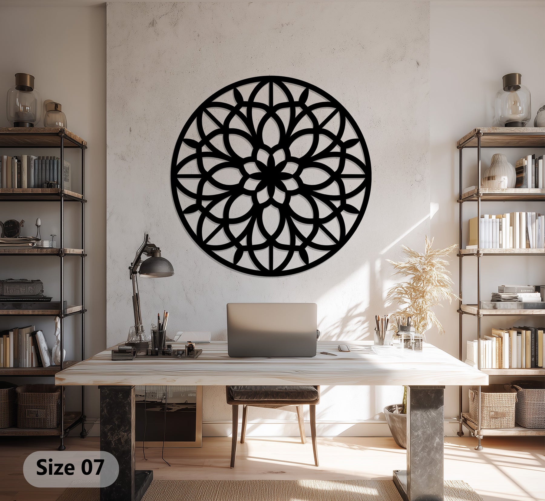 استمتع بالأناقة والتوازن مع تناغم الأزهار – ماندالا فن جداري معدنيمستوحى من تناسق الطبيعة، يمزج هذا التصميم بين أشكال تشبه البتلات وتناغم هندسي ليخلق تحفة دائرية ساحرة. إنه قطعة مميزة مثالية لإضفاء لمسة من الرقي والهدوء على الديكورات الداخلية العصرية أو البوهيمية أو ذات الطابع الزن.