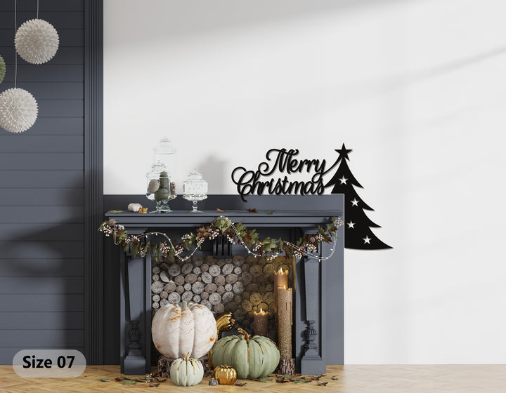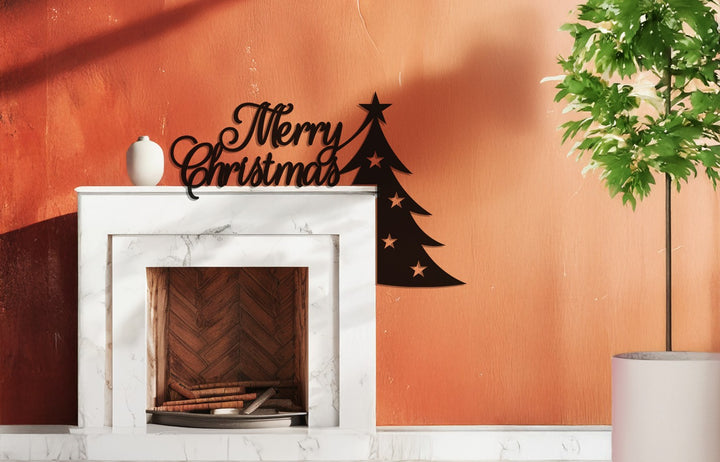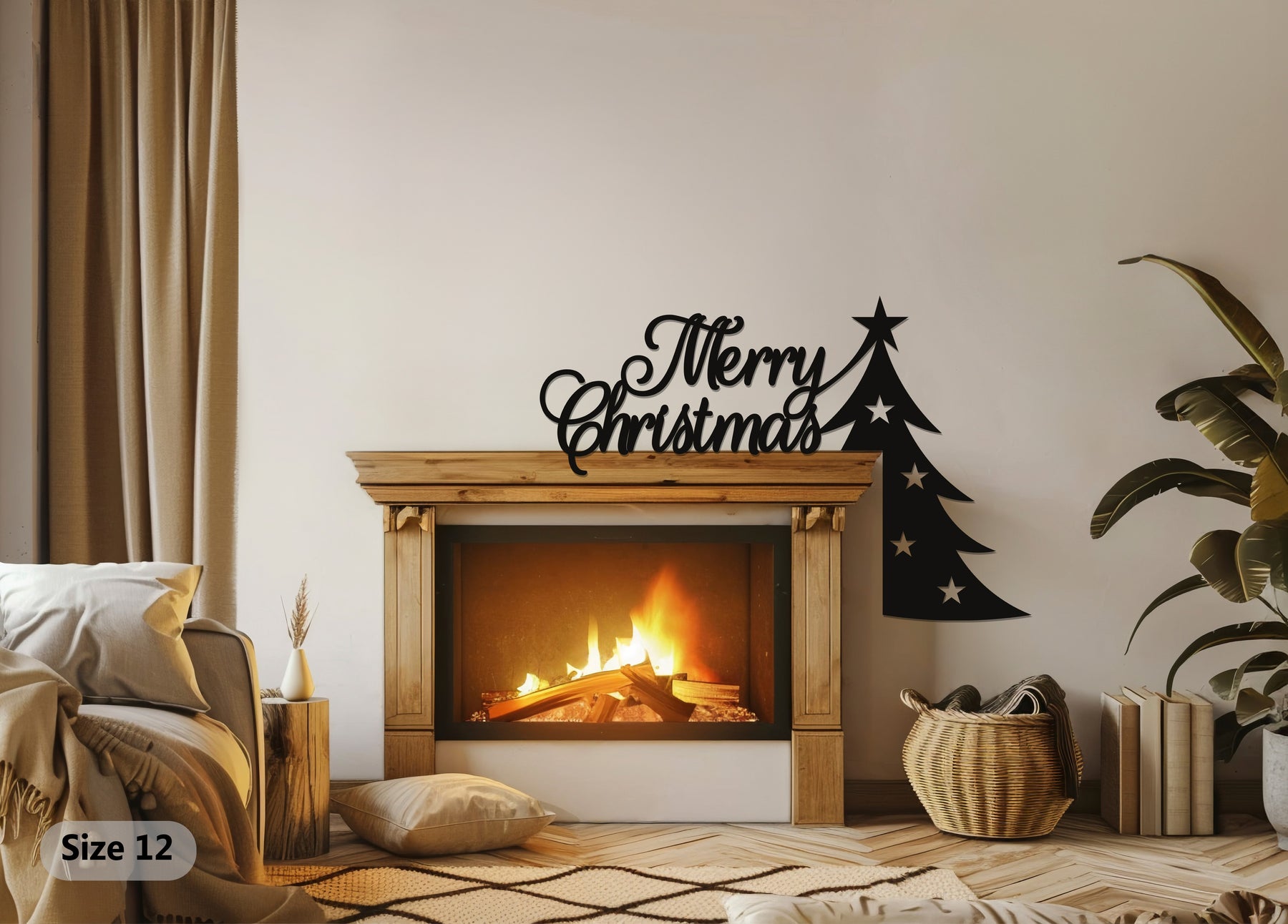 أضف روح الأعياد الحقيقية إلى منزلك مع شجرة عيد الميلاد المجيد – ديكور معدني للمدفأةتتميز هذه القطعة بكتابة أنيقة بخط اليد لعبارة "عيد ميلاد سعيد" وتصميم شجرة يعلوها نجمة، وهي تجسد الدفء والفرح والتألق الاحتفالي لهذا الموسم.