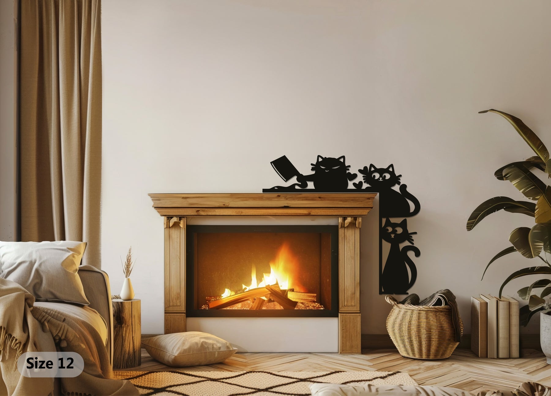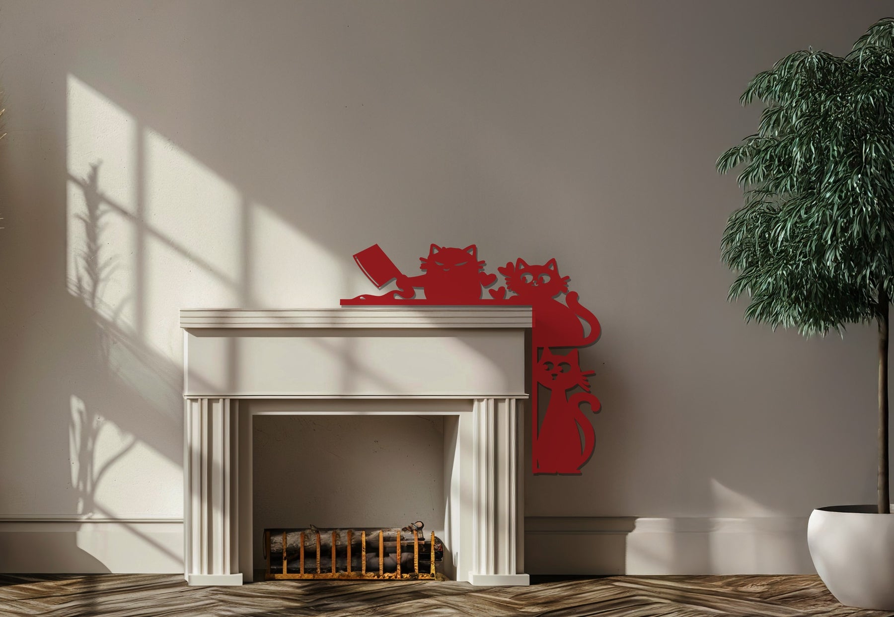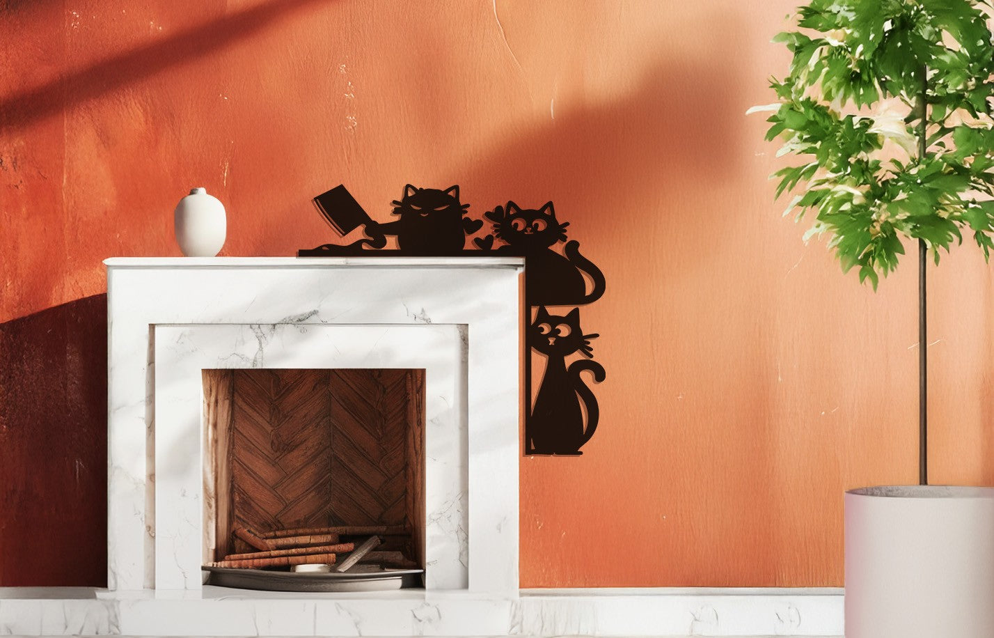 قطط مشاغبة – ديكور معدني مرح للمدفأة على شكل قطة