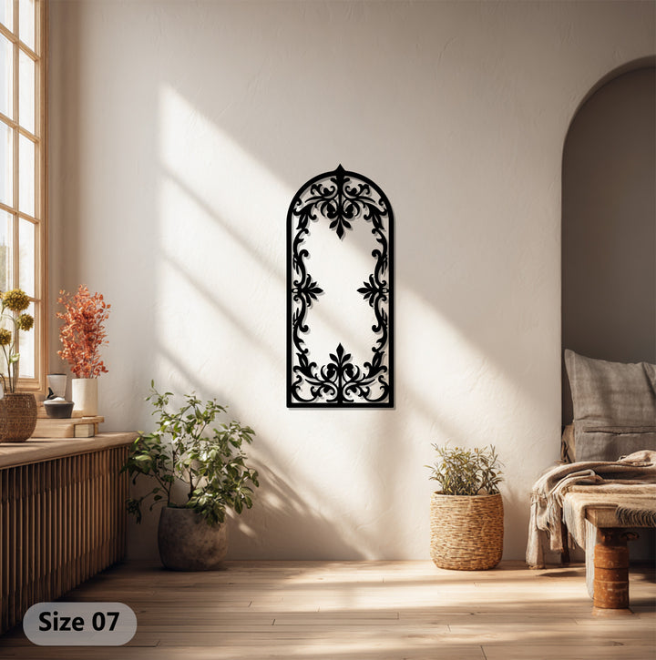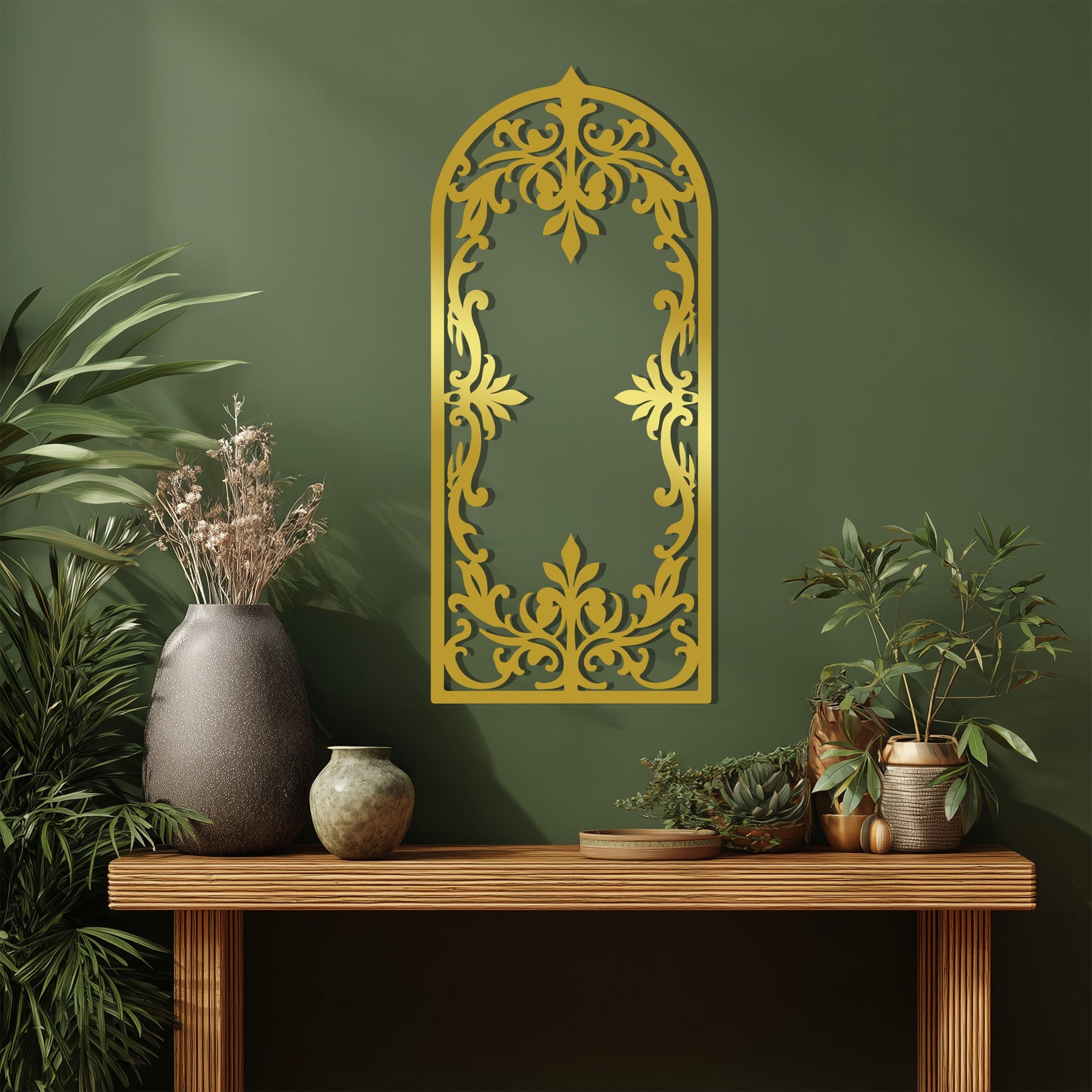 حسّن ديكور منزلك بـ القوس الملكي فن جداري معدنيتحفة فنية تجمع بين التناسق والأناقة. يتميز هذا التصميم بإطار مقوس مزخرف بنقوش زهرية وزخارف لولبية دقيقة، مما يضفي عليه لمسة من الرقي الخالد المستوحى من العمارة الكلاسيكية. مثالي للممرات وغرف المعيشة أو فوق الأثاث، فهو يحول جدارك إلى رمز للفخامة والجمال.