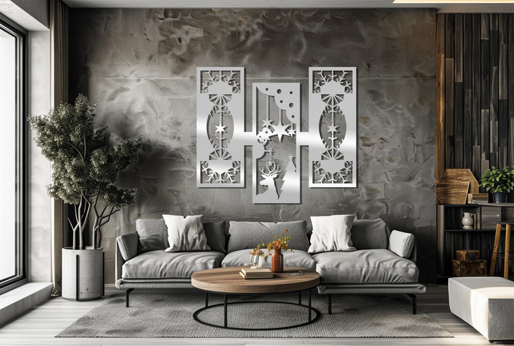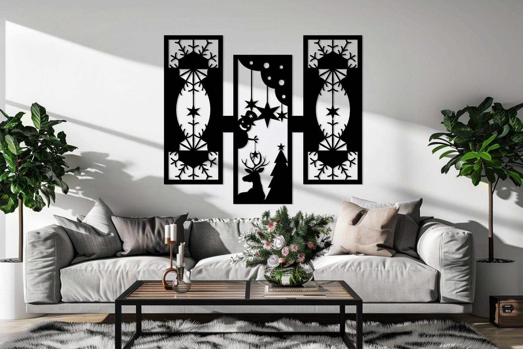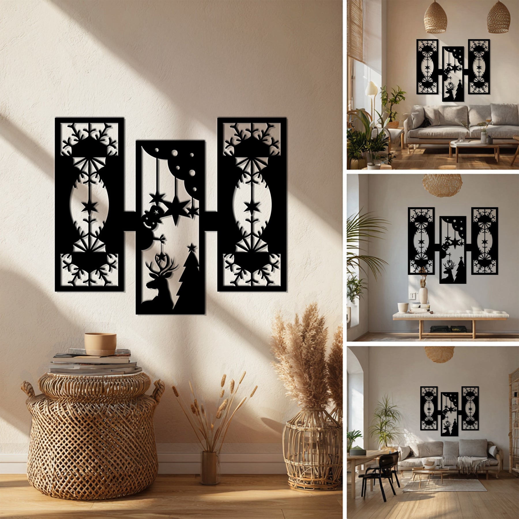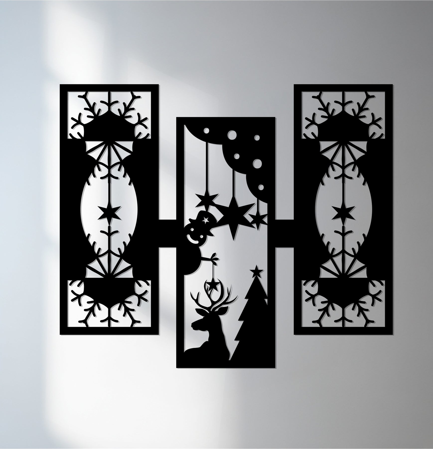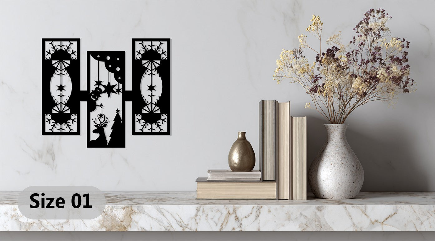 مصنوعة من معدن فاخر مقطوع بالليزر ومطلية باللون الأسود غير اللامع الأنيق، تمزج هذه القطعة الفنية بين زخارف عيد الميلاد التقليدية والفن الحديث. مثالية لغرف المعيشة أو الممرات أو المكاتب، فهي تضفي الدفء والتناسق ولمسة احتفالية راقية على ديكور منزلك. قطعة خالدة تحتفي بروح الشتاء بأسلوب عصري.