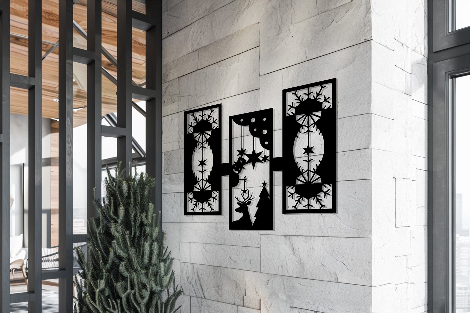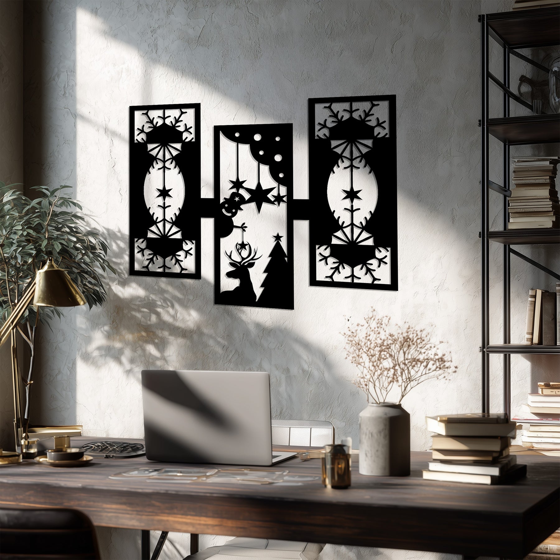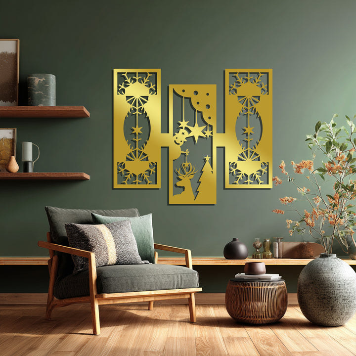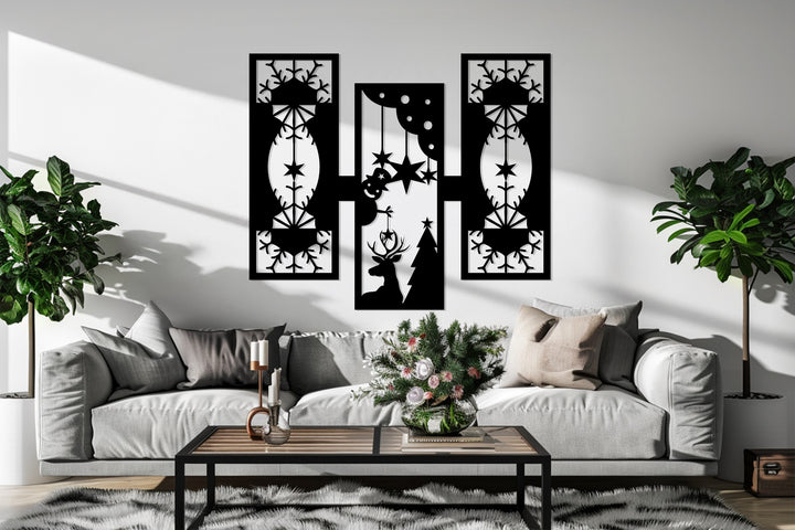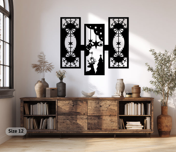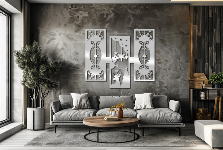 أضواء الرنة - تصميم هندسي لعيد الميلاد فن جداري معدني