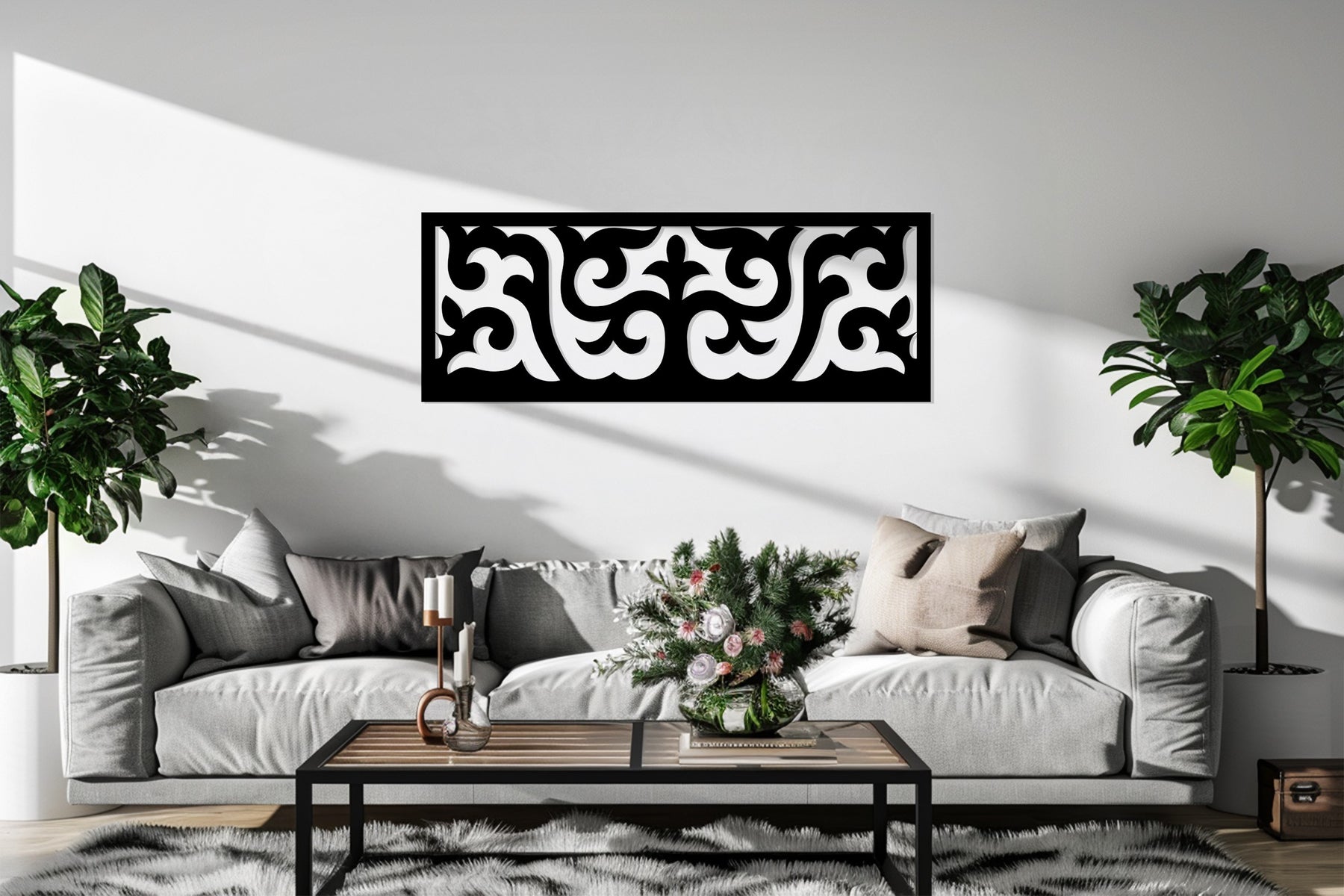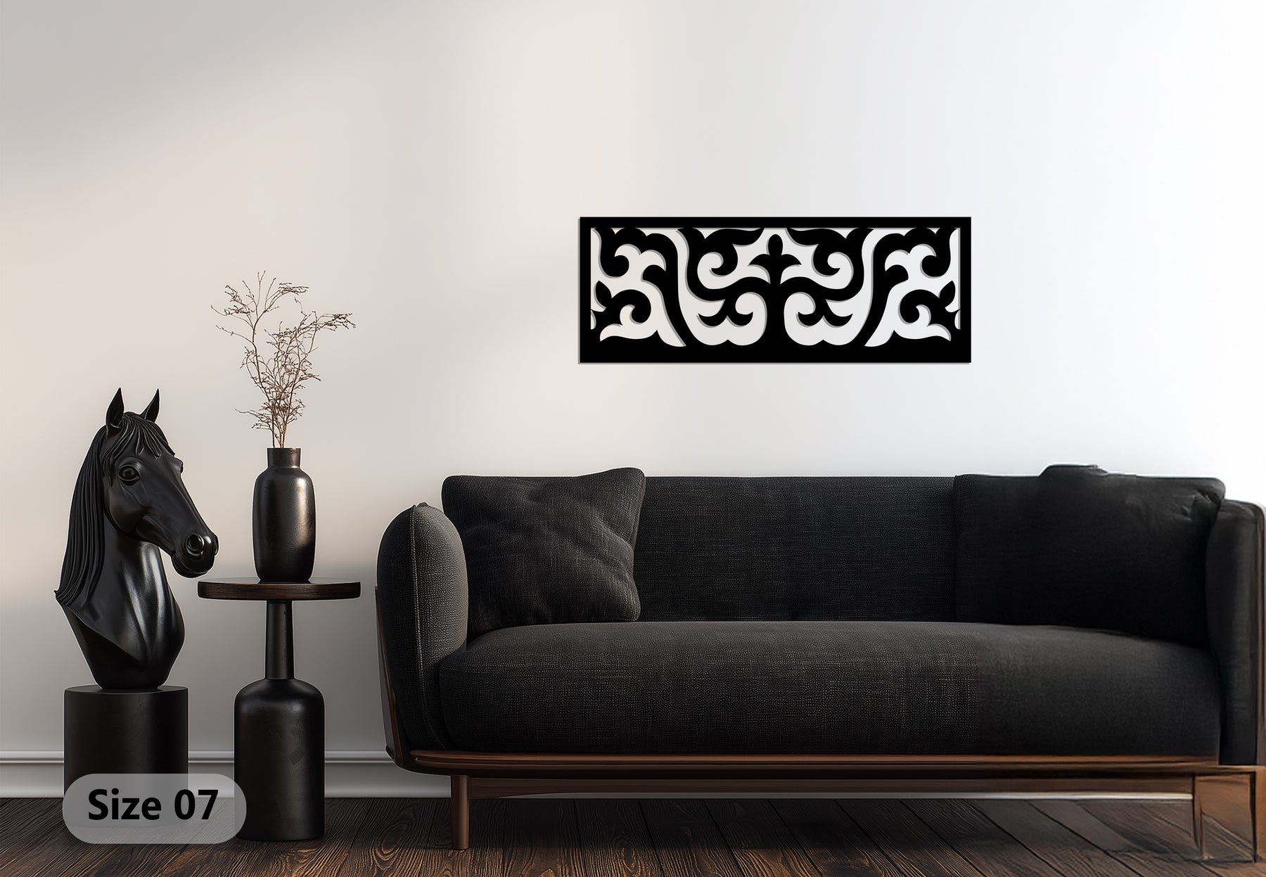 صُمم هذا التصميم بدقة متناهية باستخدام تقنية القطع بالليزر، وطُلي باللون الأسود غير اللامع، ليضفي عمقًا وملمسًا وتناغمًا بصريًا على جدرانك. يُعد مثاليًا لغرف المعيشة والممرات والمكاتب وغرف الطعام، حيث يُعزز ديكورك بإحساس فاخر من التناغم والرقي.