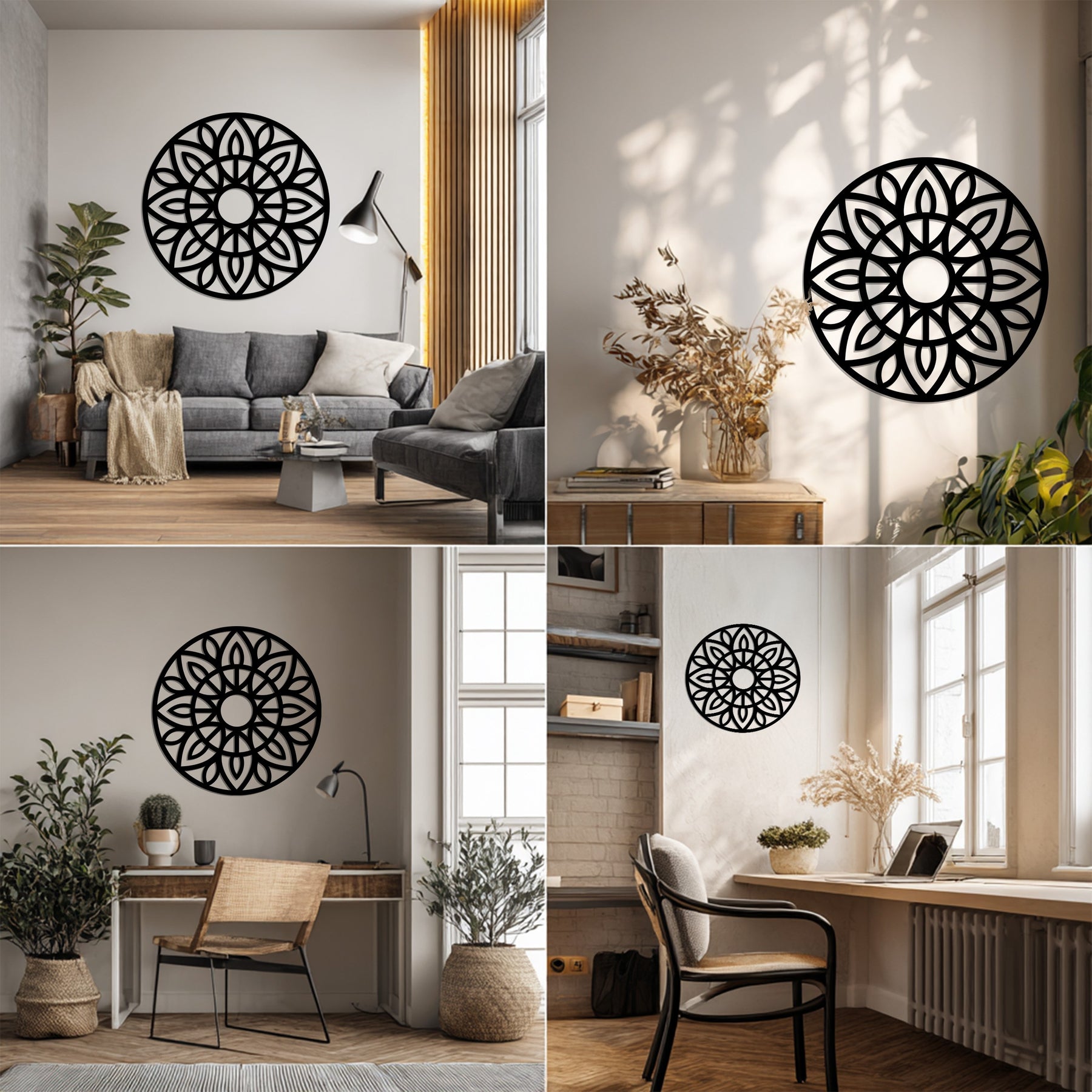 أضف إلى منزلك الانسجام والأناقة من خلال التوازن المقدس – ماندالا فن جداري معدنيتتميز هذه القطعة بنمط ماندالا متناظر مقطوع بالليزر مستوحى من الهندسة الطبيعية، ويرمز إلى الوحدة والوعي والهدوء. تصميمها الدائري البسيط يخلق نقطة محورية لافتة للنظر في الديكورات الداخلية الحديثة أو البوهيمية أو ذات الطابع الزن.