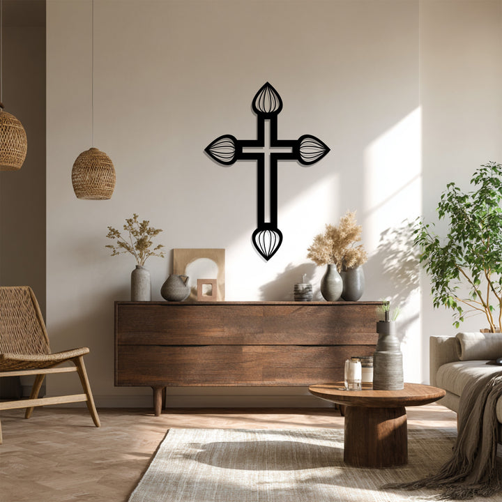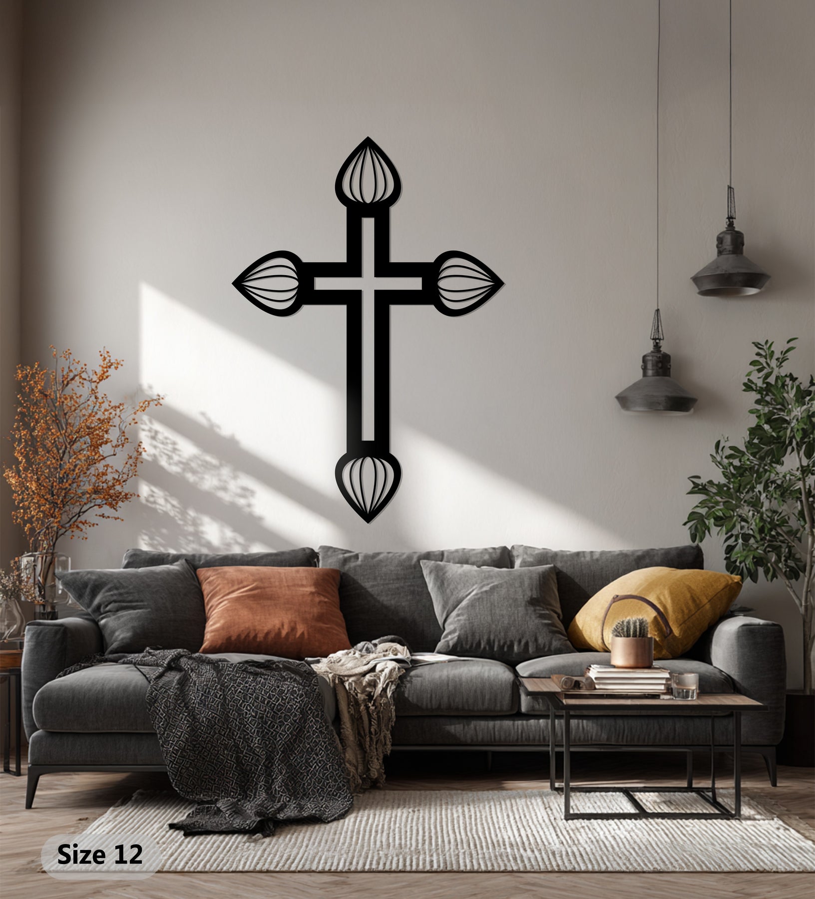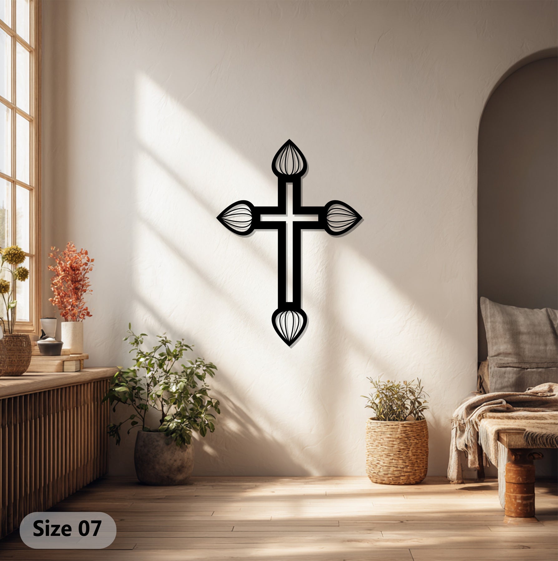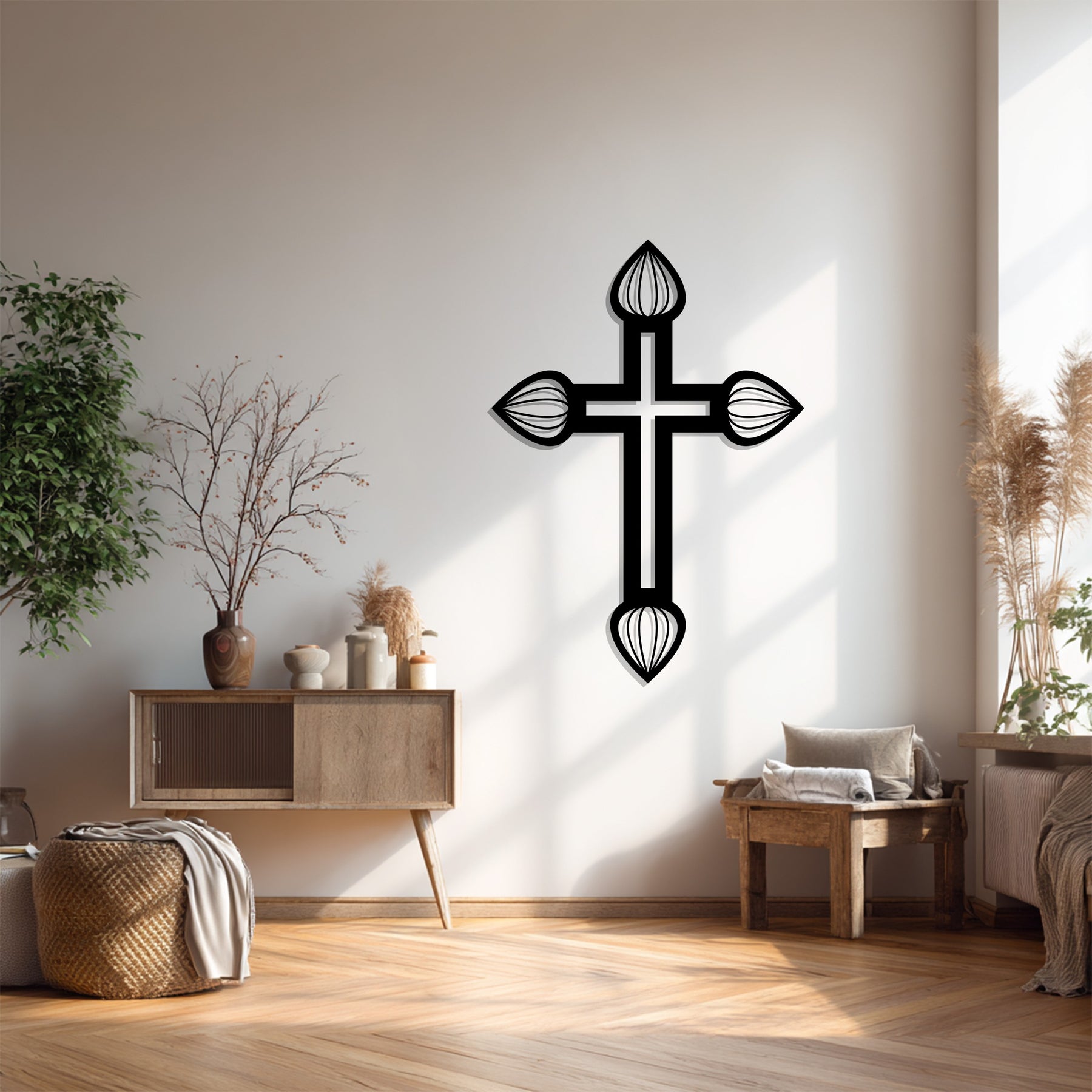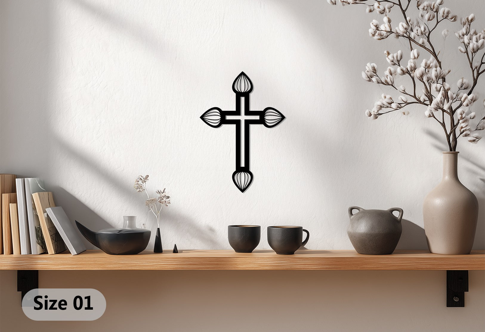 زهرة مقدسة – صليب بتلات فضية فن جداري معدني