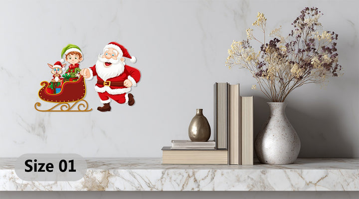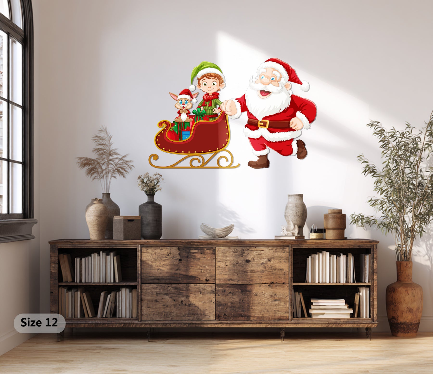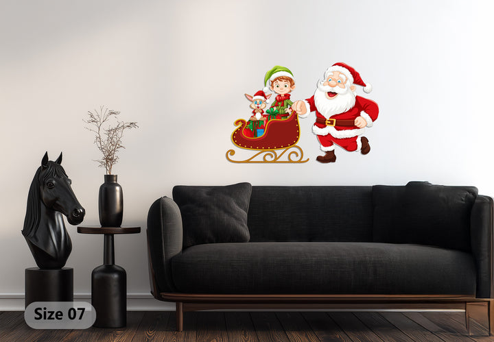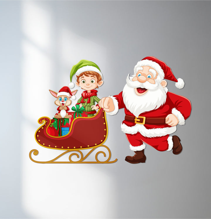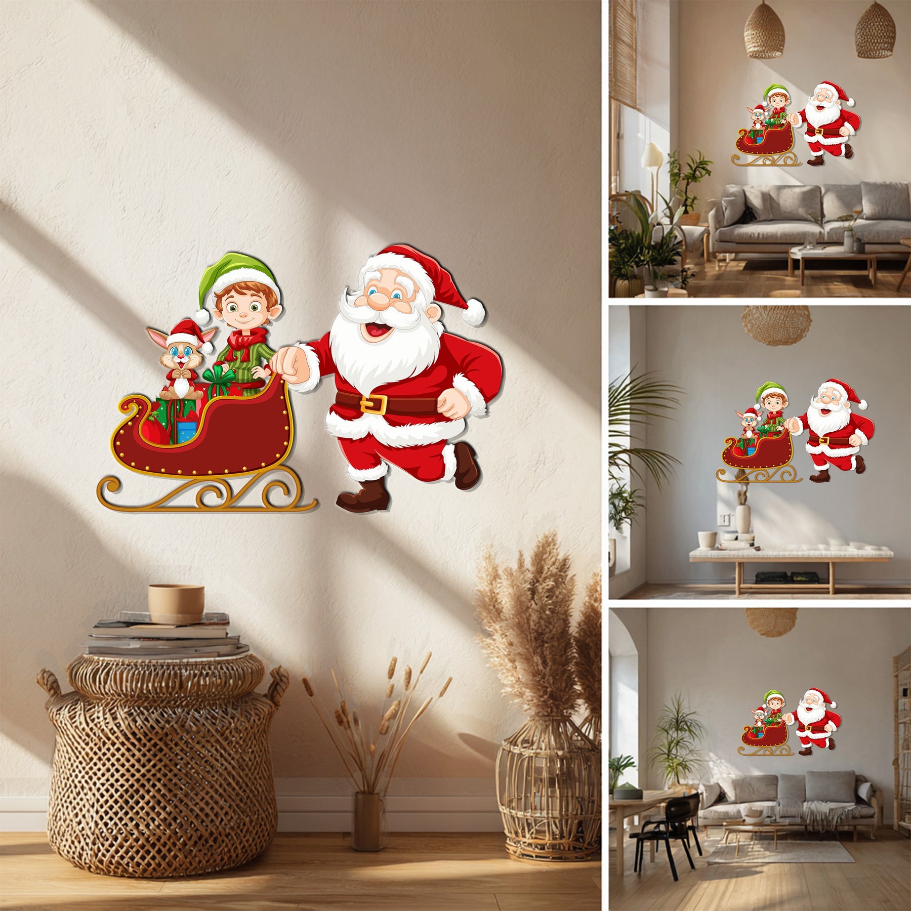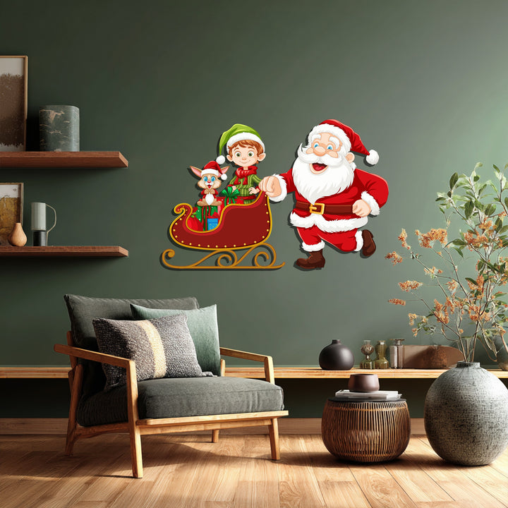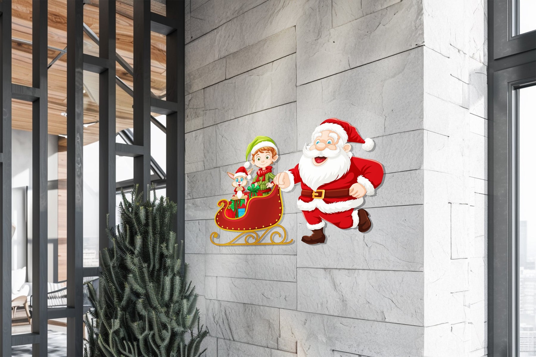 سانتا وجولة الزلاجة مع الجان - لوحة جدارية لعيد الميلاد