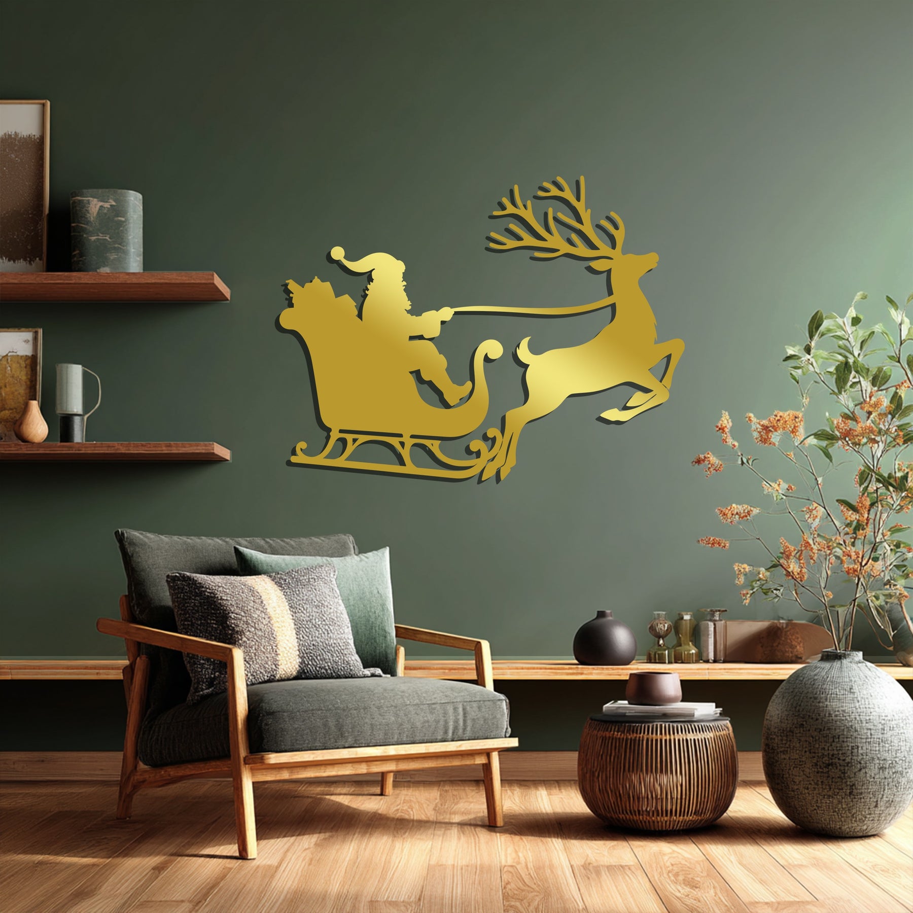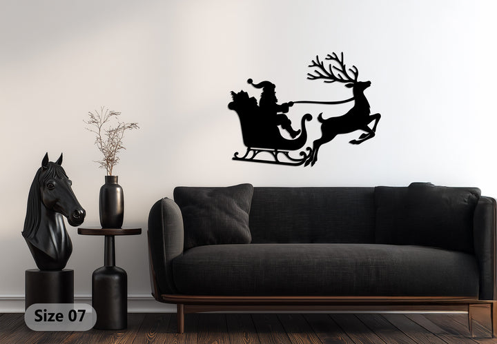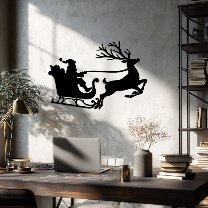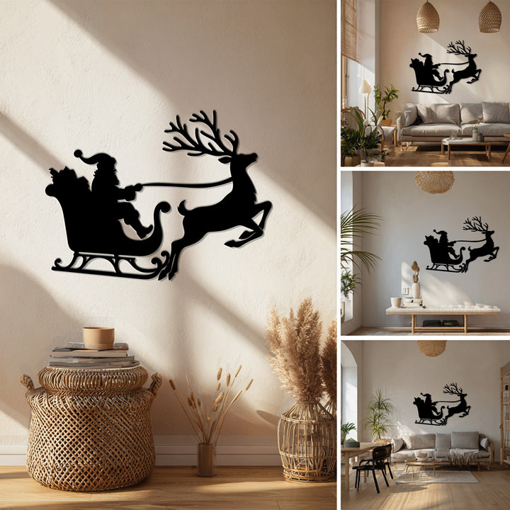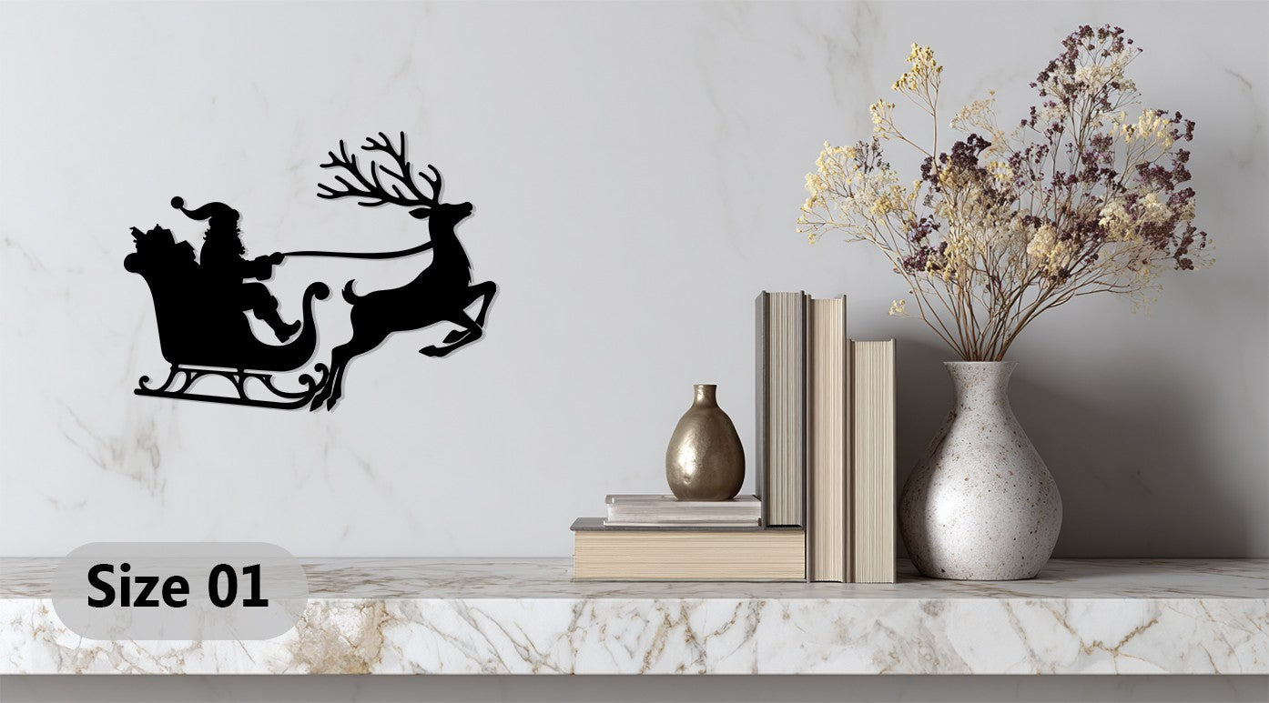 رحلة سانتا على الزلاجة – غزلان عيد الميلاد فن جداري معدني