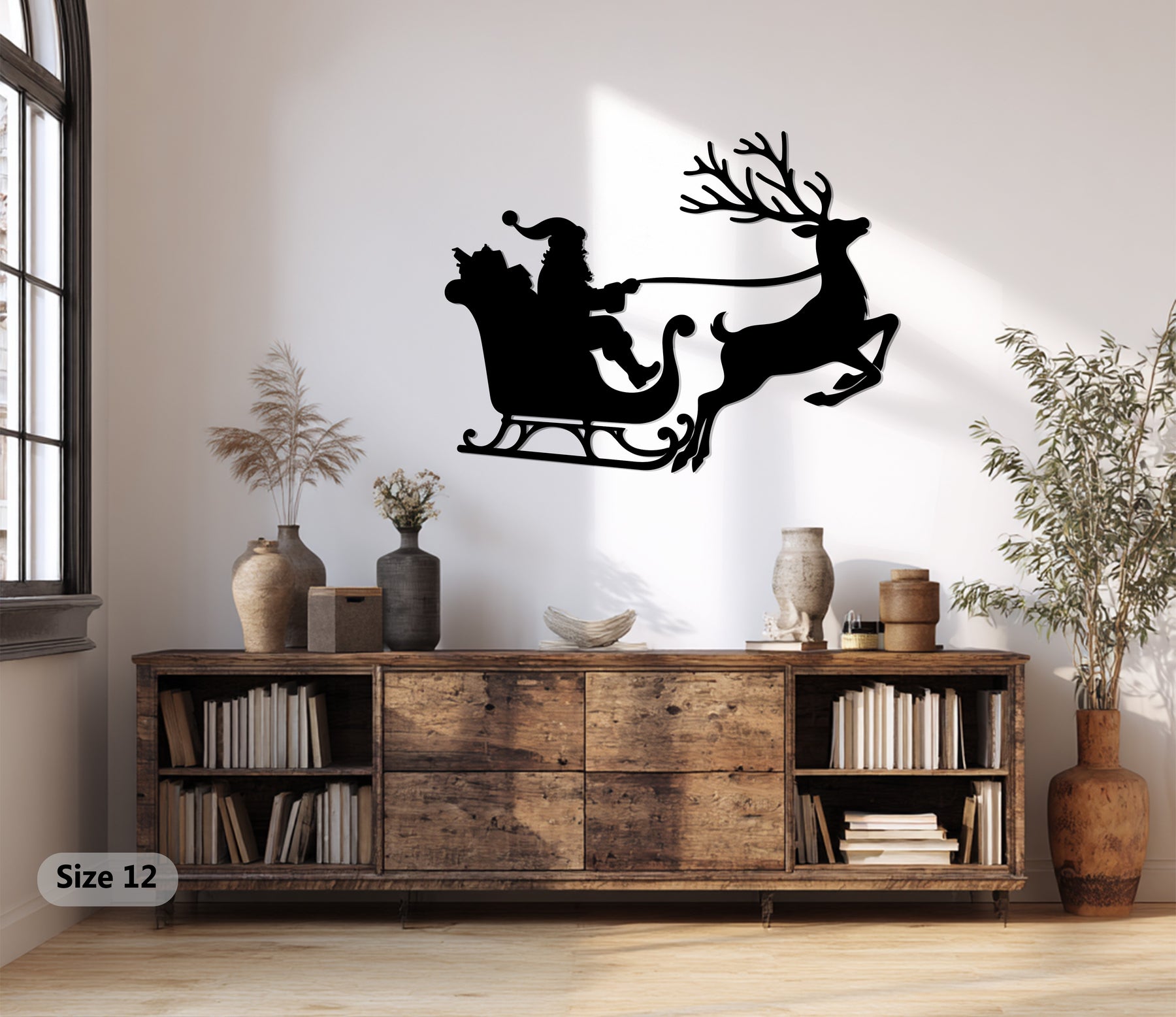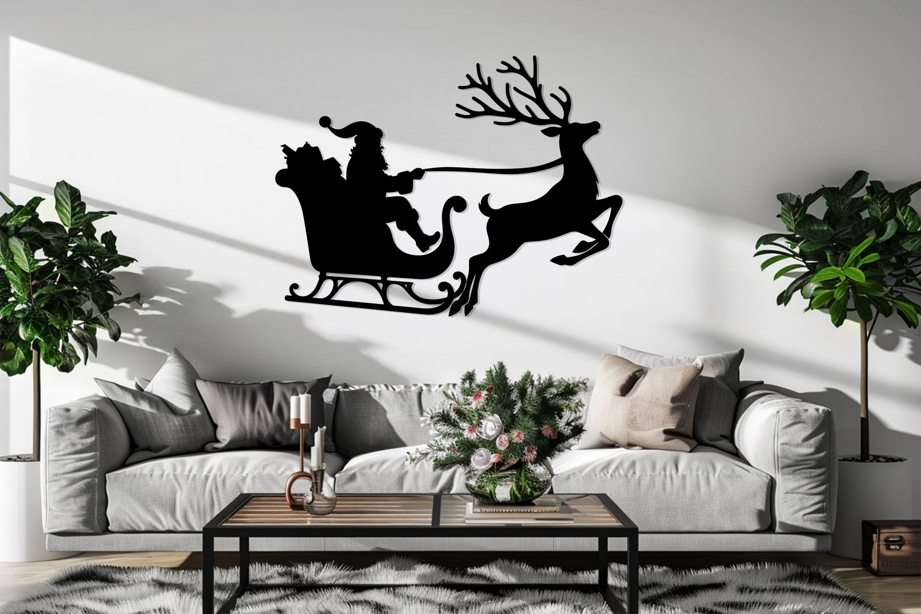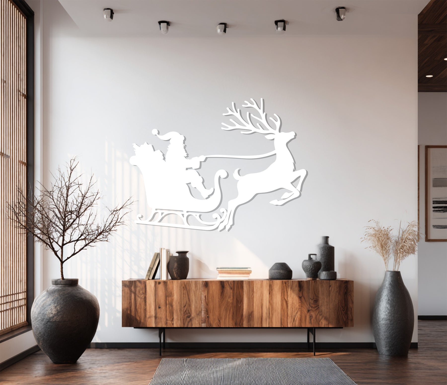 رحلة سانتا على الزلاجة – غزلان عيد الميلاد فن جداري معدني