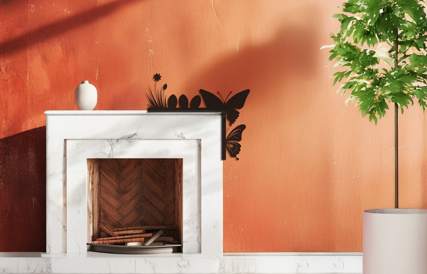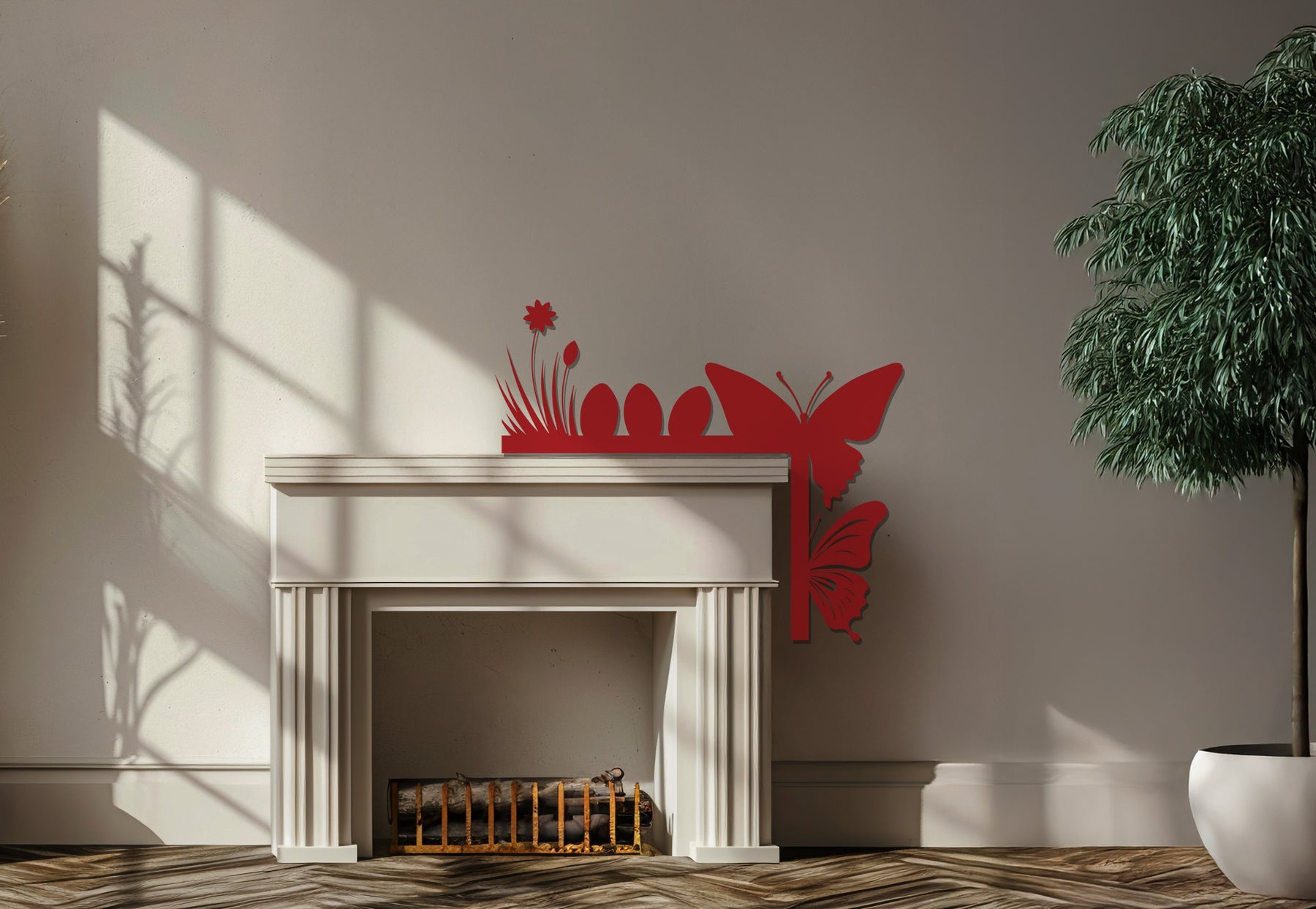 صحوة الربيع - ديكور مدفأة معدني على شكل فراشة ومرج