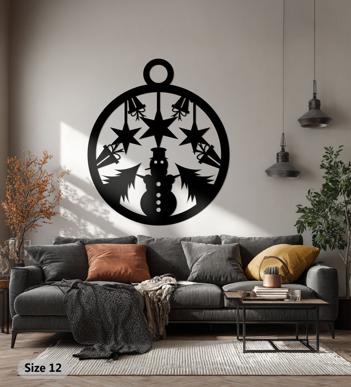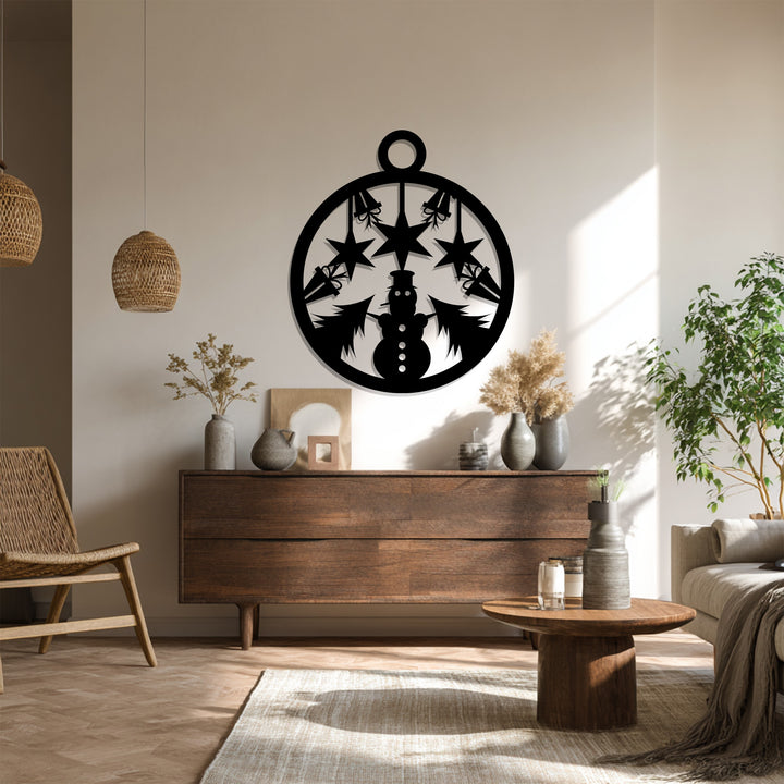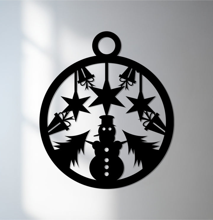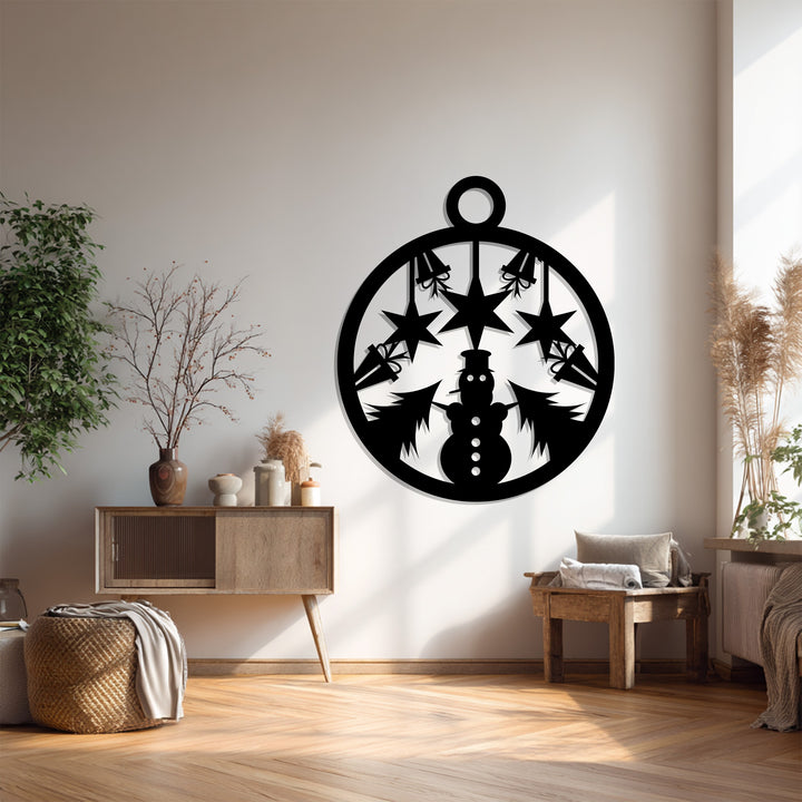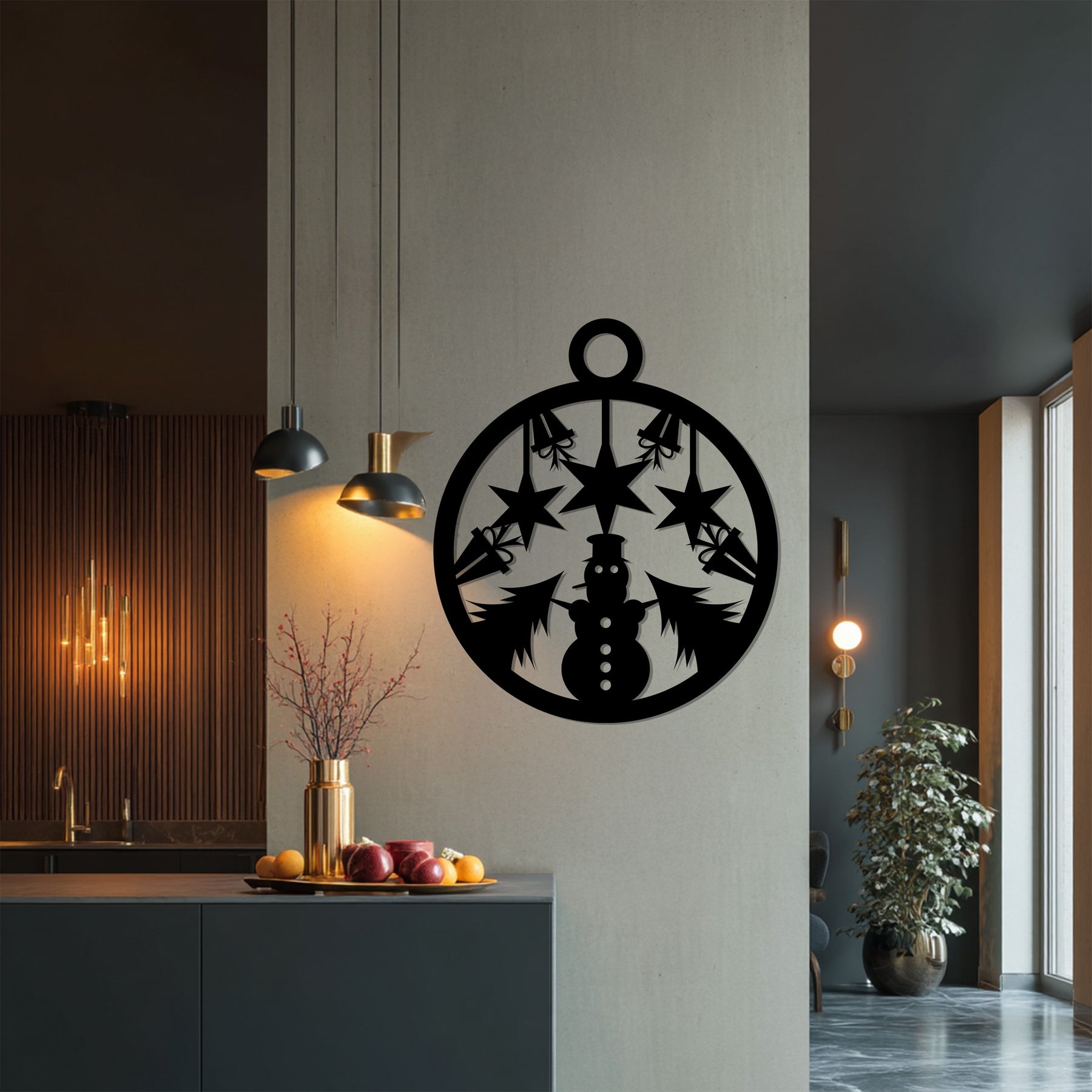 بهجة النجوم - رجل الثلج وأشجار عيد الميلاد فن جداري معدني