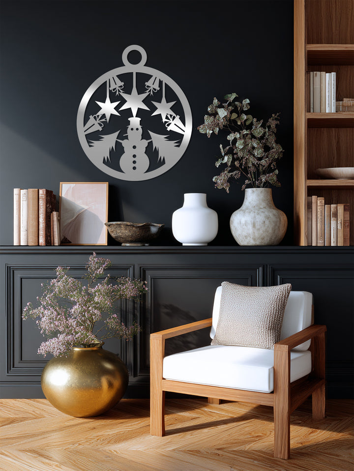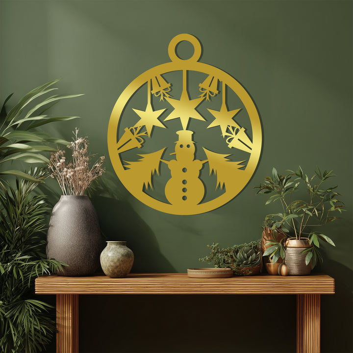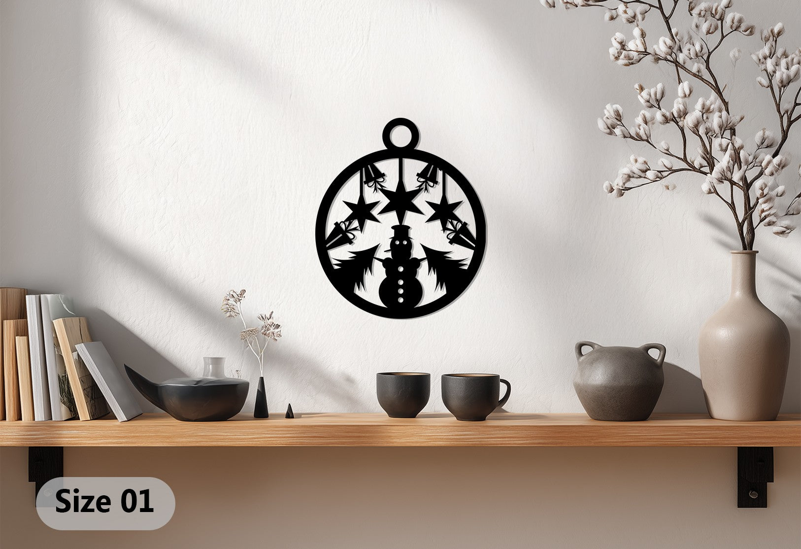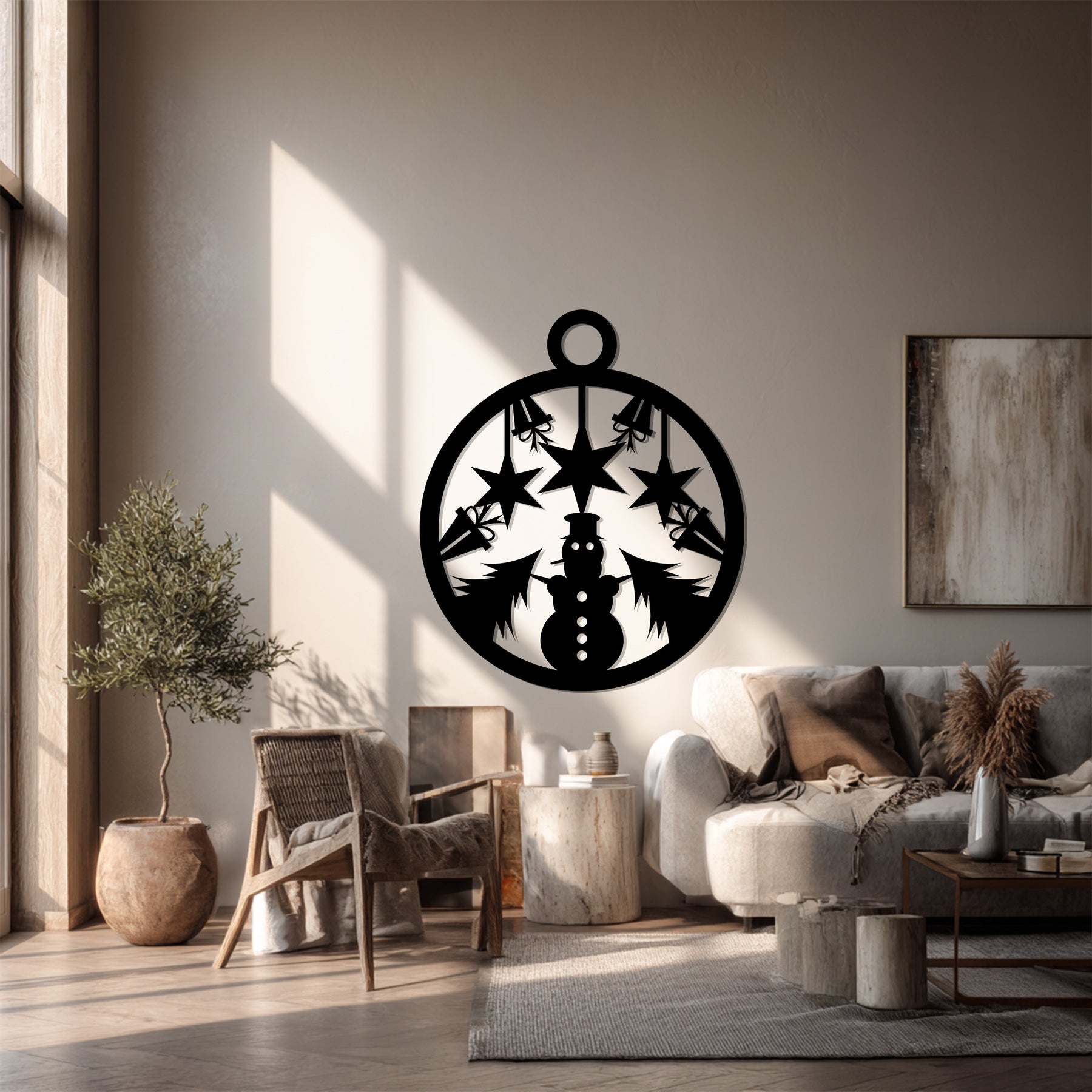 بهجة النجوم - رجل الثلج وأشجار عيد الميلاد فن جداري معدني