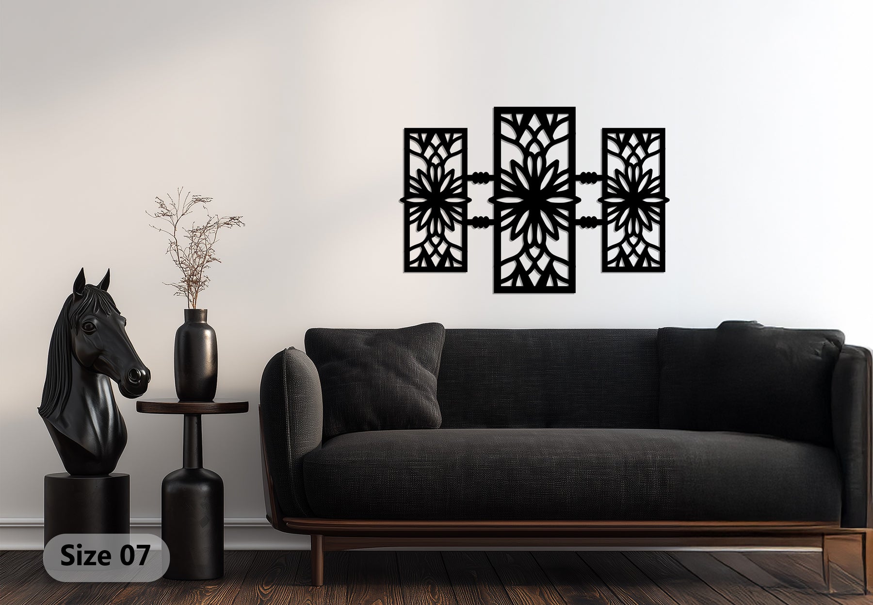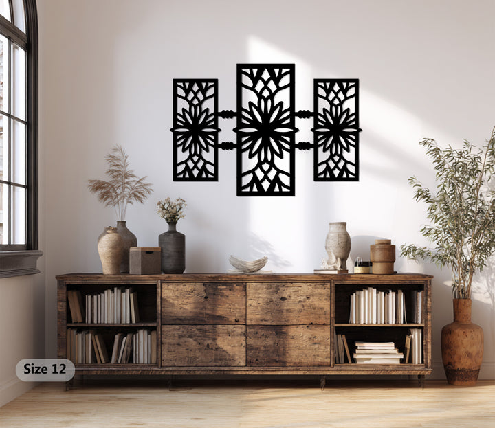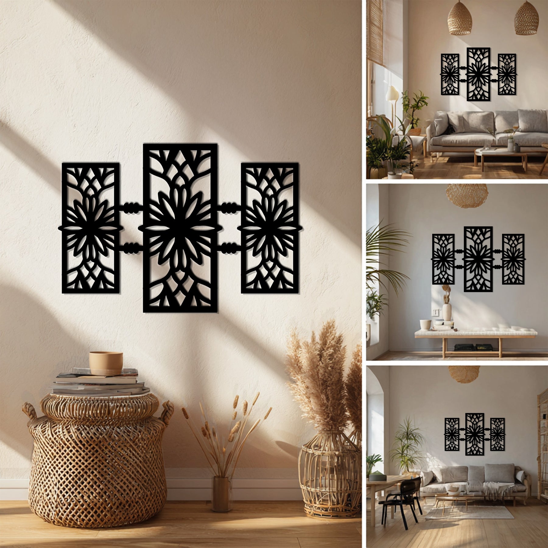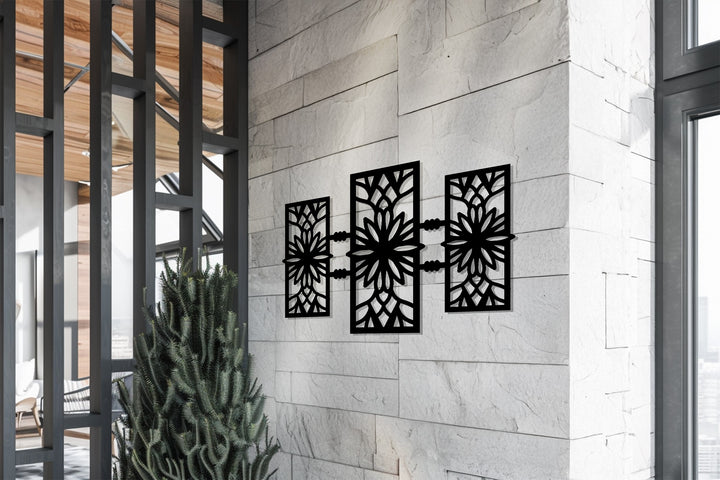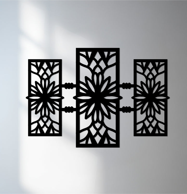 أضف لمسة جمالية متوازنة إلى منزلك مع... سيمتري بلوم – تصميم زهري هندسي حديث فن جداري معدنييتميز هذا التصميم المذهل ذو الألواح الثلاثة بهندسة معقدة مستوحاة من الأزهار، تشعّ بالانسجام والرقي. كل بتلة ومنحنى مقطوع بدقة متناهية باستخدام الليزر، مما يخلق تلاعبًا ساحرًا بالظلال والضوء يضفي لمسة جمالية راقية على أي ديكور داخلي.