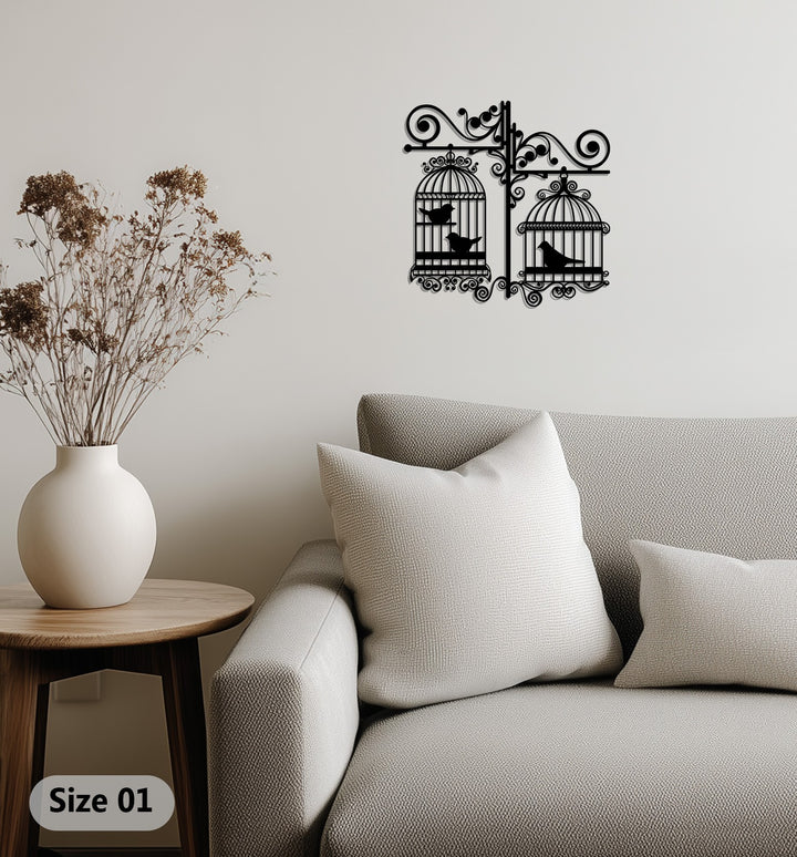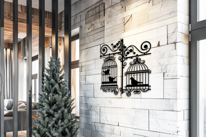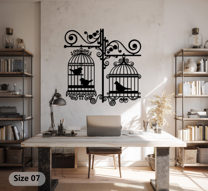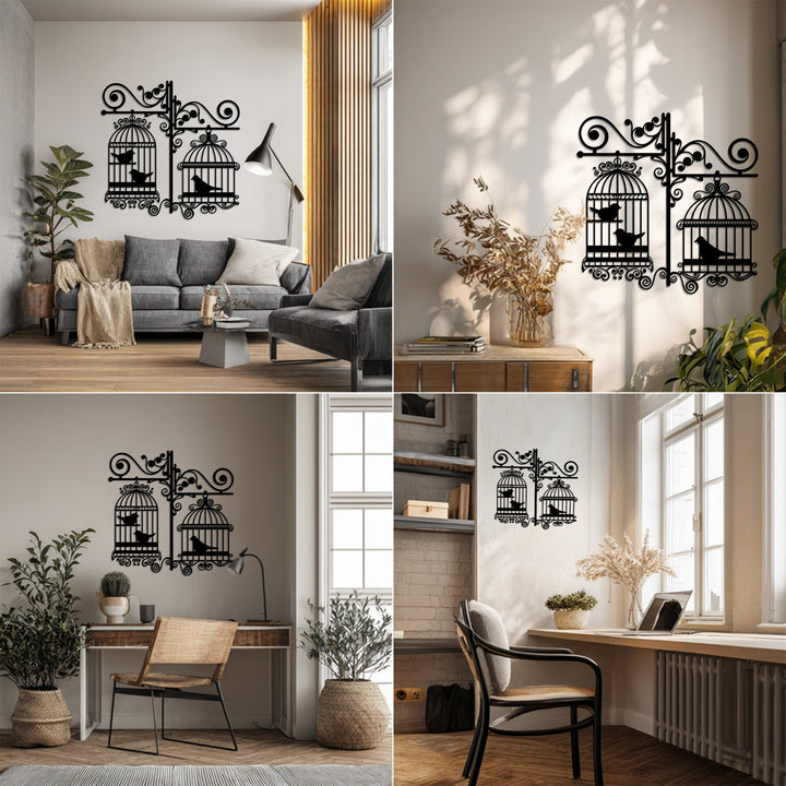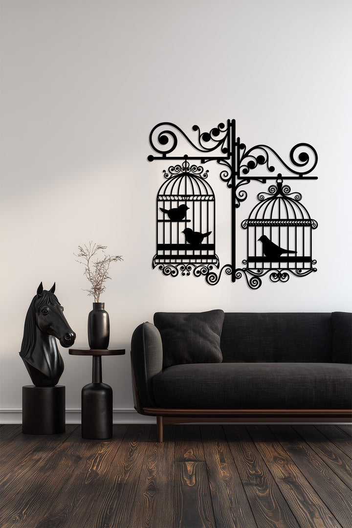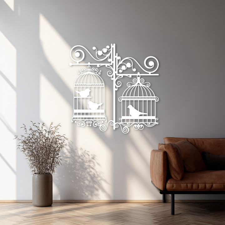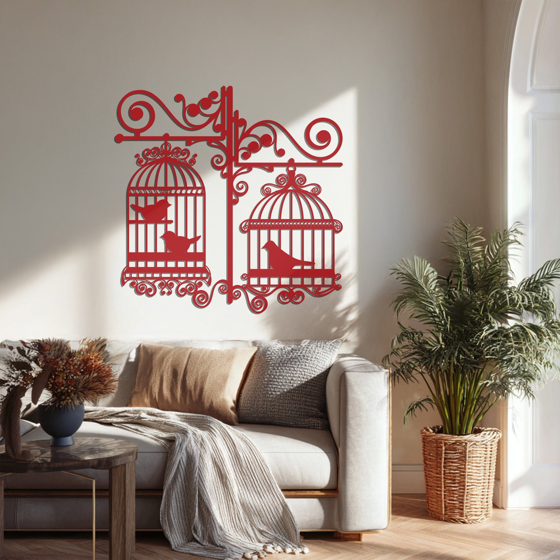 طيور مغردة من العصر الفيكتوري – قفص طيور مزخرف فن جداري معدني