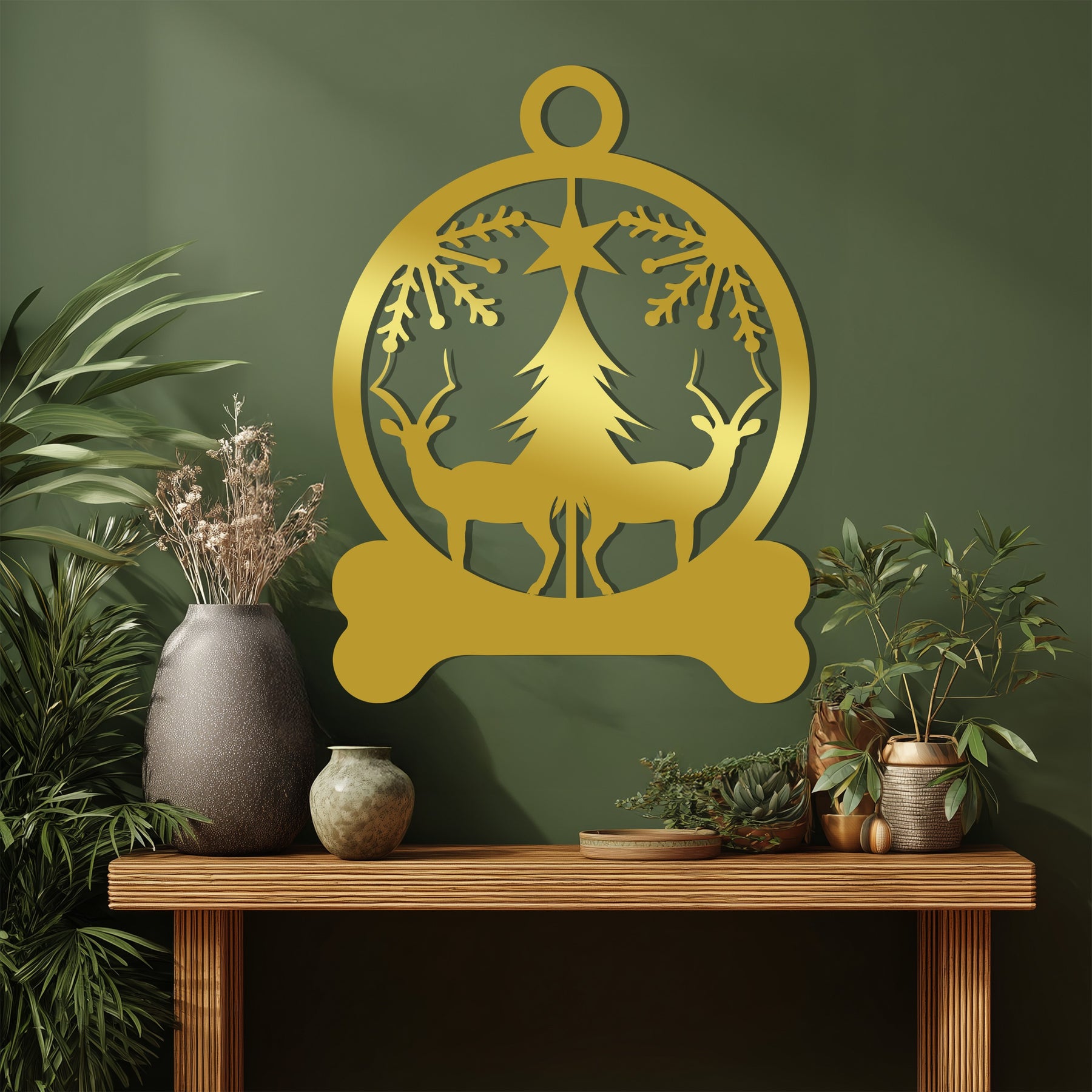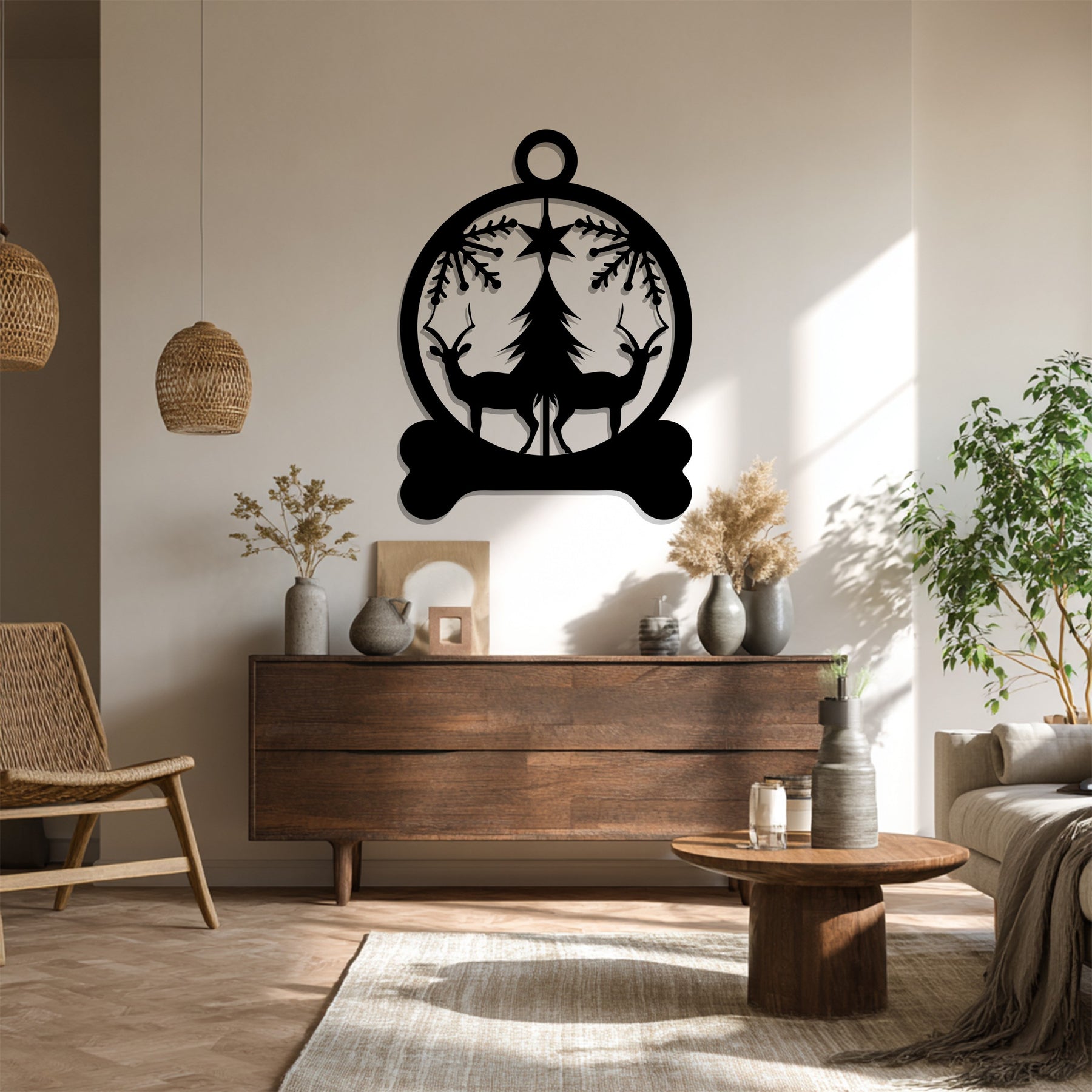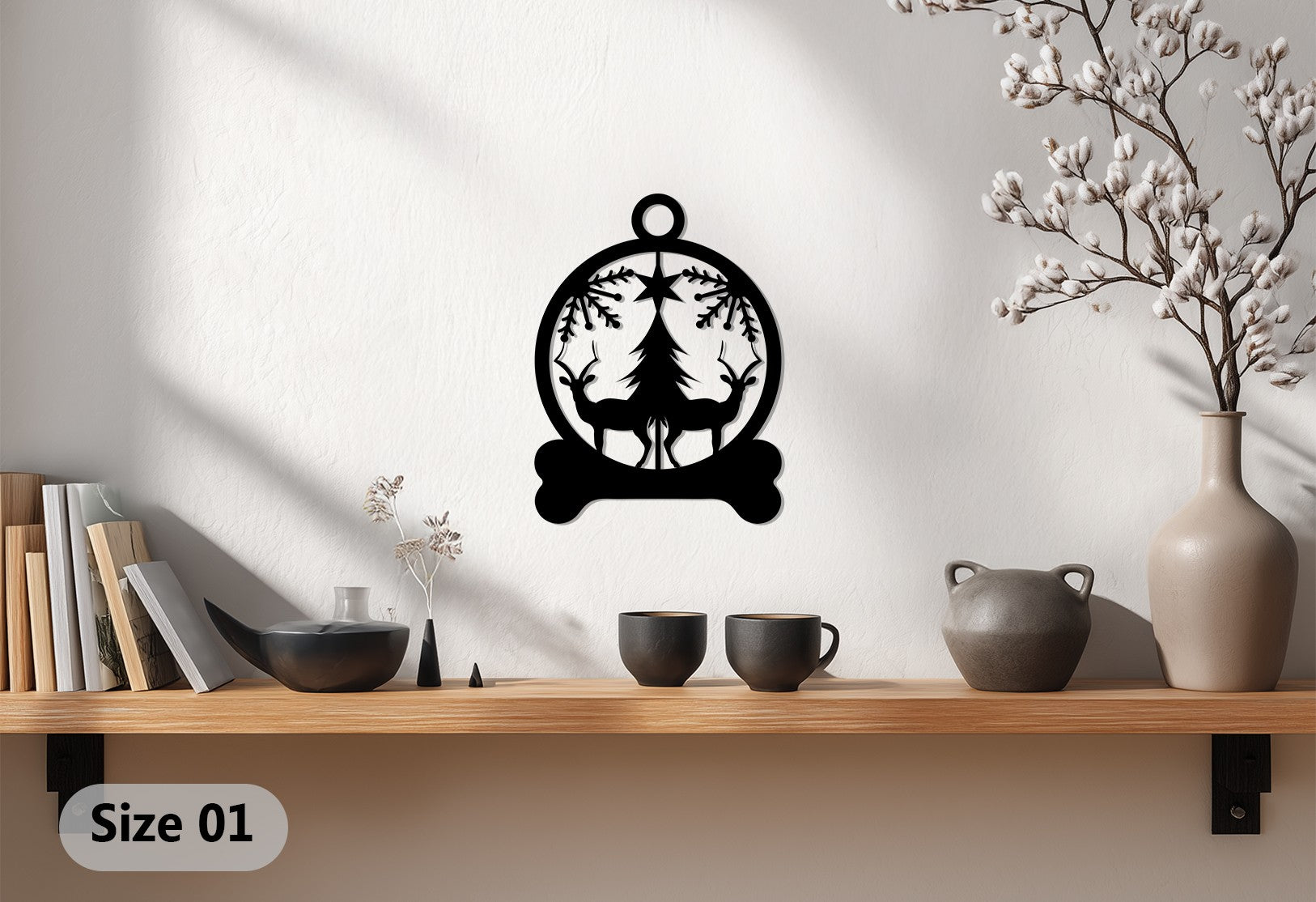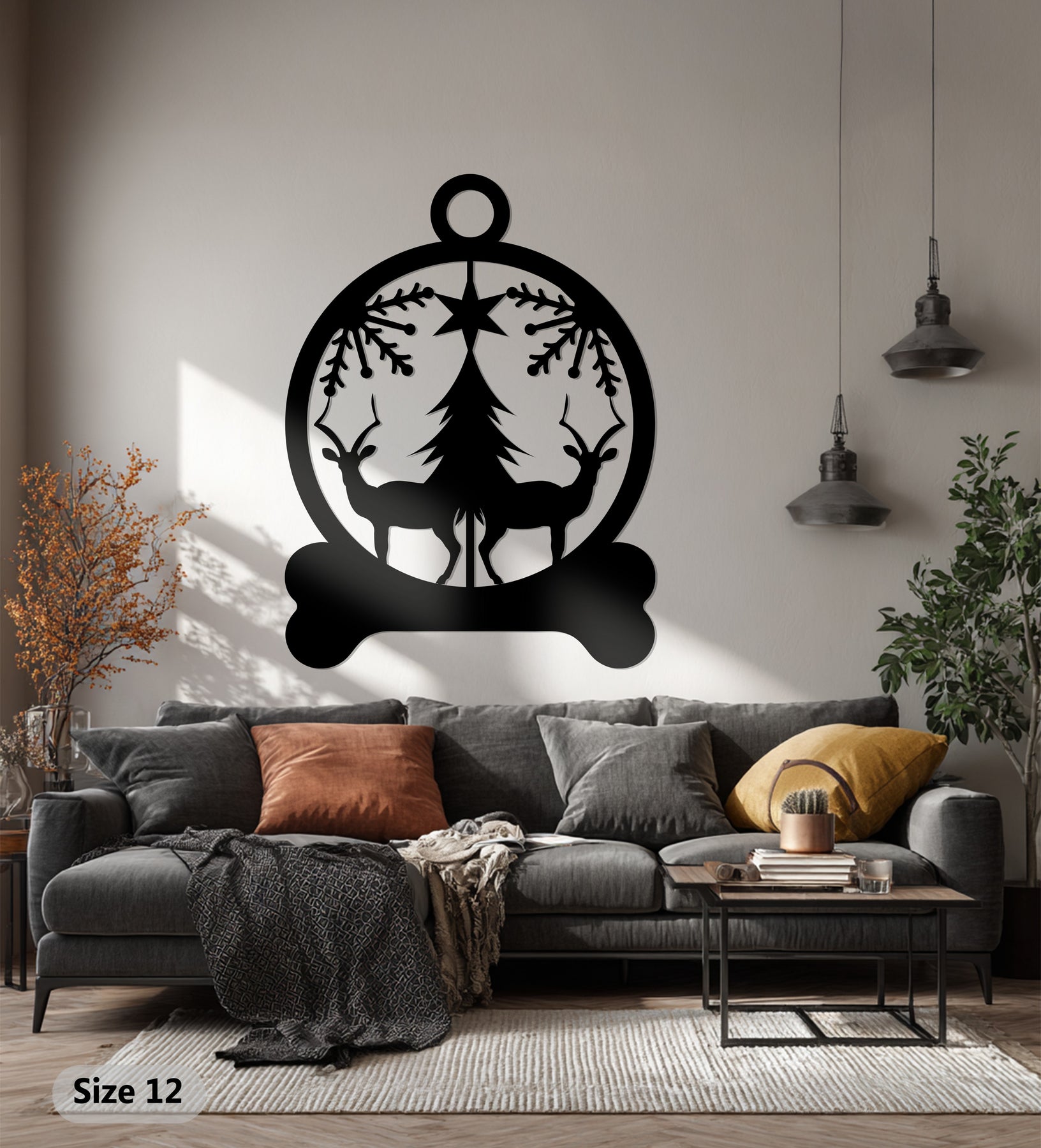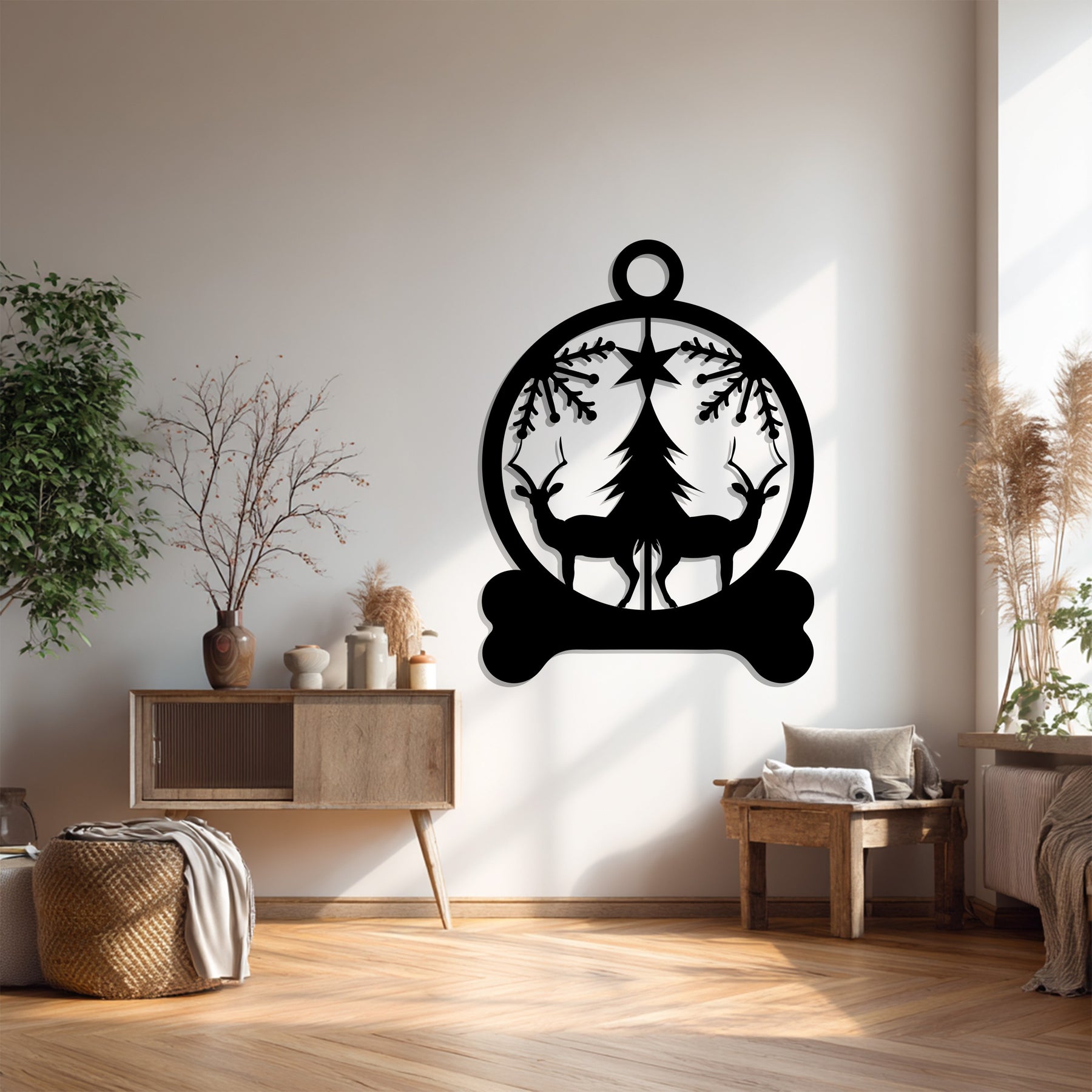 تناغم الشتاء – الرنة والشجرة فن جداري معدني
