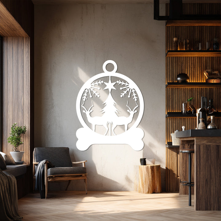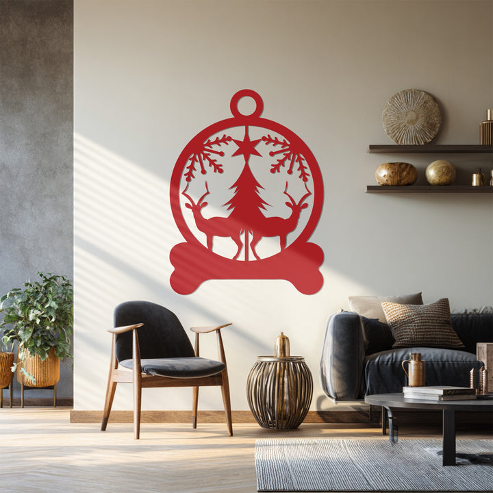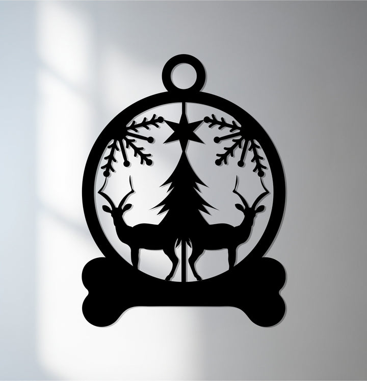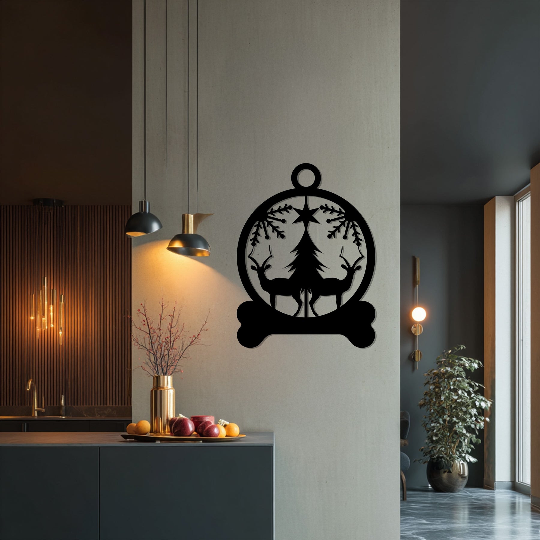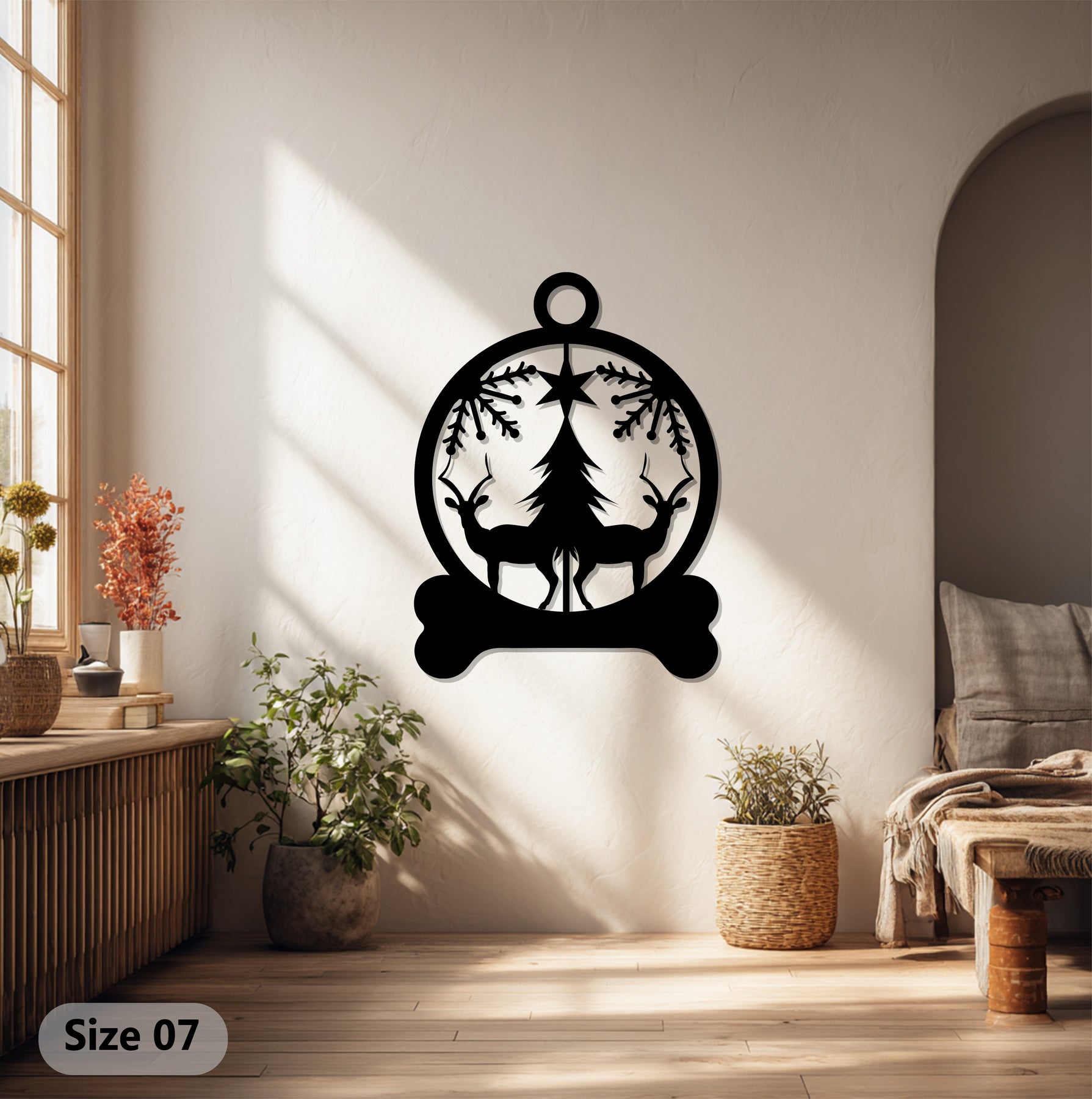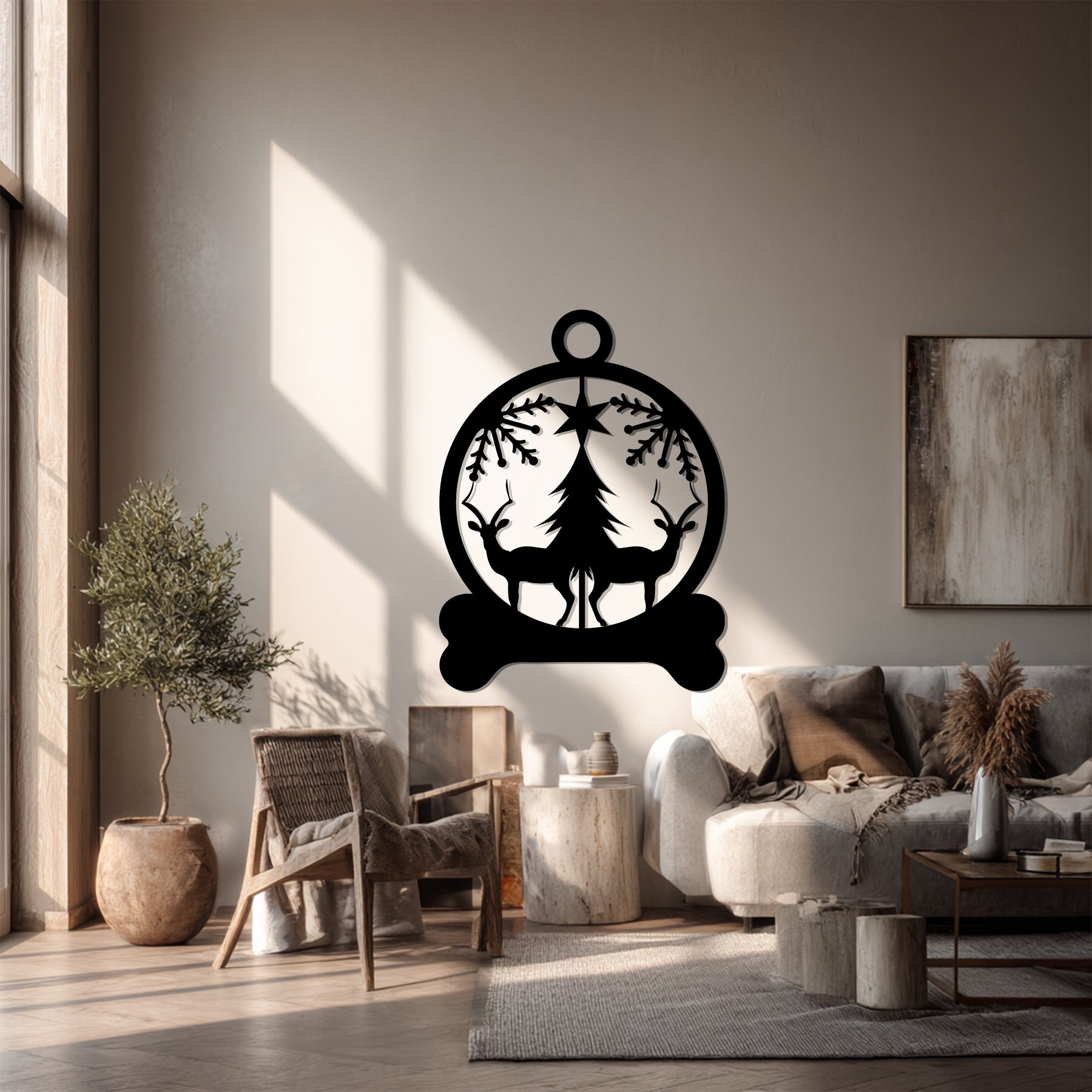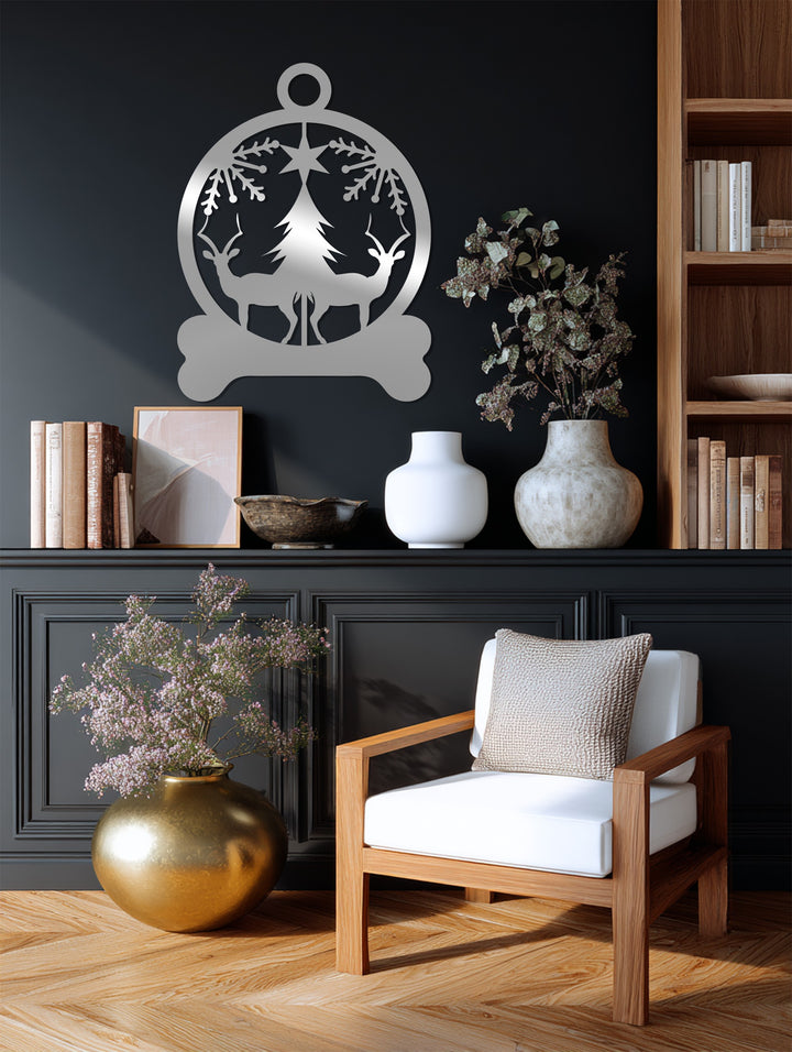تناغم الشتاء – الرنة والشجرة فن جداري معدني