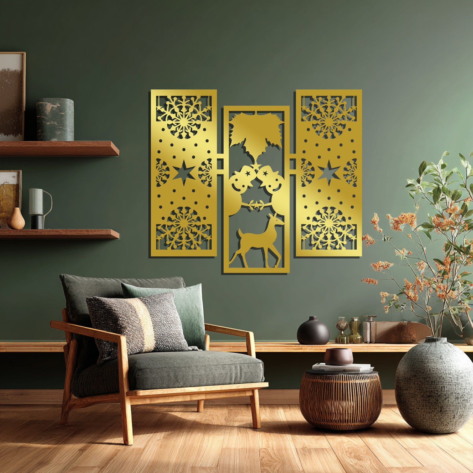 بهجة الشتاء – رجل الثلج ورنة عيد الميلاد فن جداري معدني