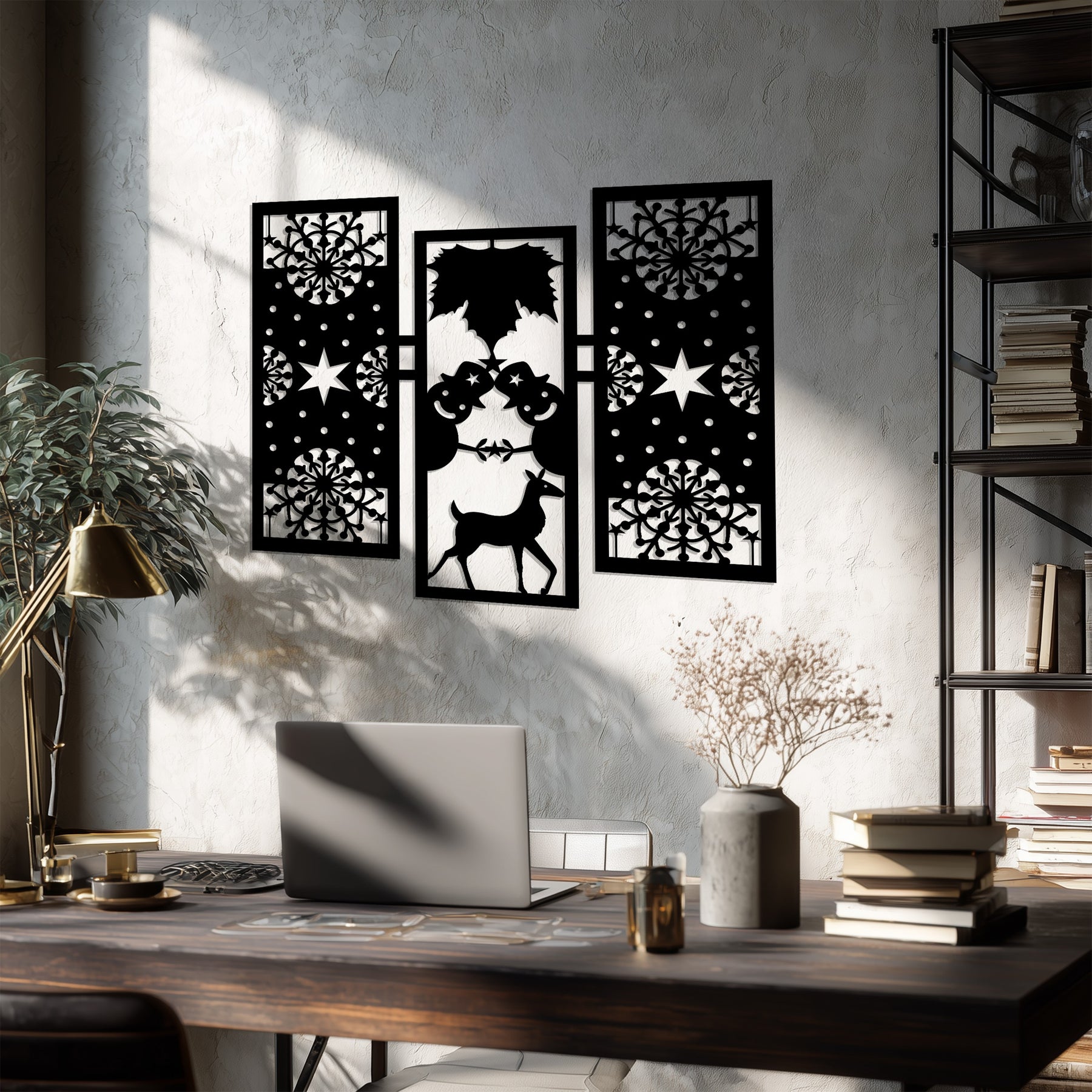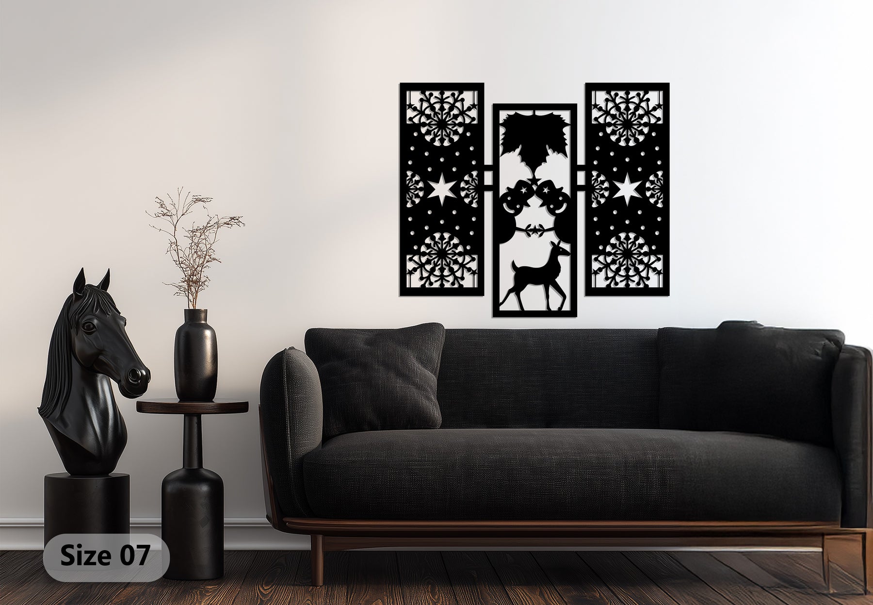 مصنوعة من معدن متين مقطوع بالليزر ومطلية باللون الأسود غير اللامع، تجمع هذه القطعة بين سحر الأعياد وفن العصر الحديث. مثالية لغرف المعيشة أو المداخل أو المكاتب، فهي تحتفي بالفرح والصداقة وجمال الشتاء. أضف لمسة من سحر الموسم تدوم عامًا بعد عام.