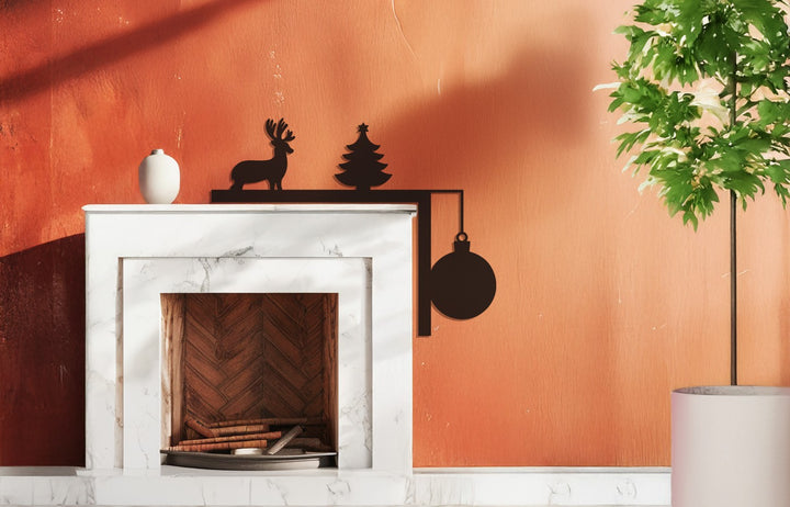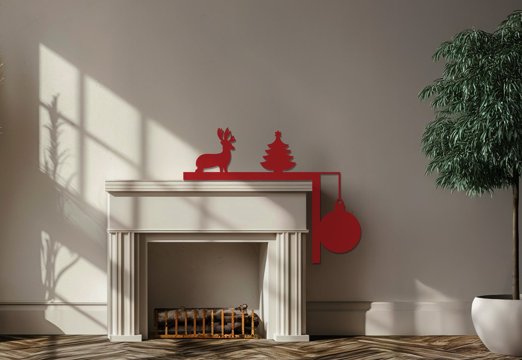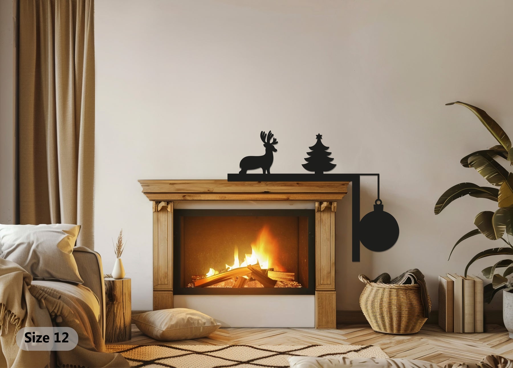 سحر الشتاء – ديكور معدني للمدفأة على شكل غزال الرنة وشجرة