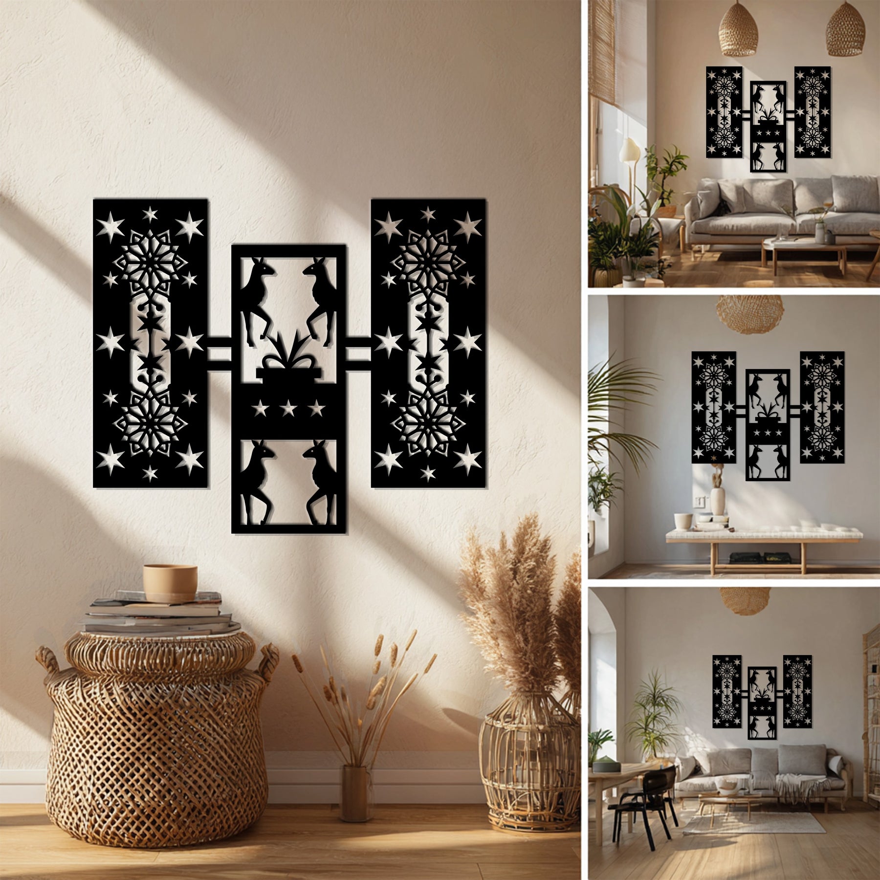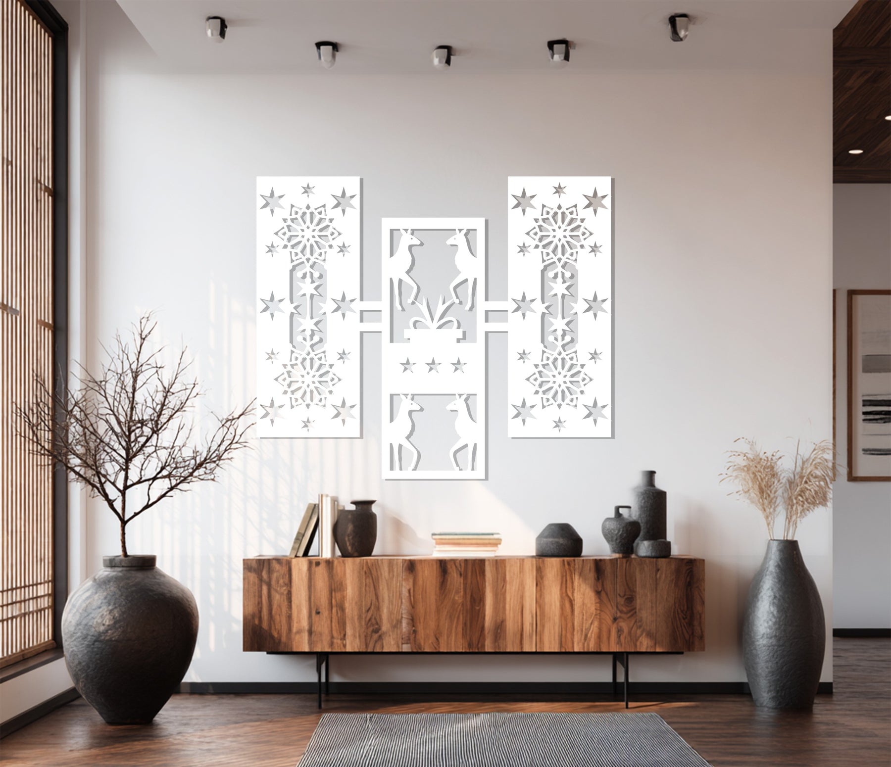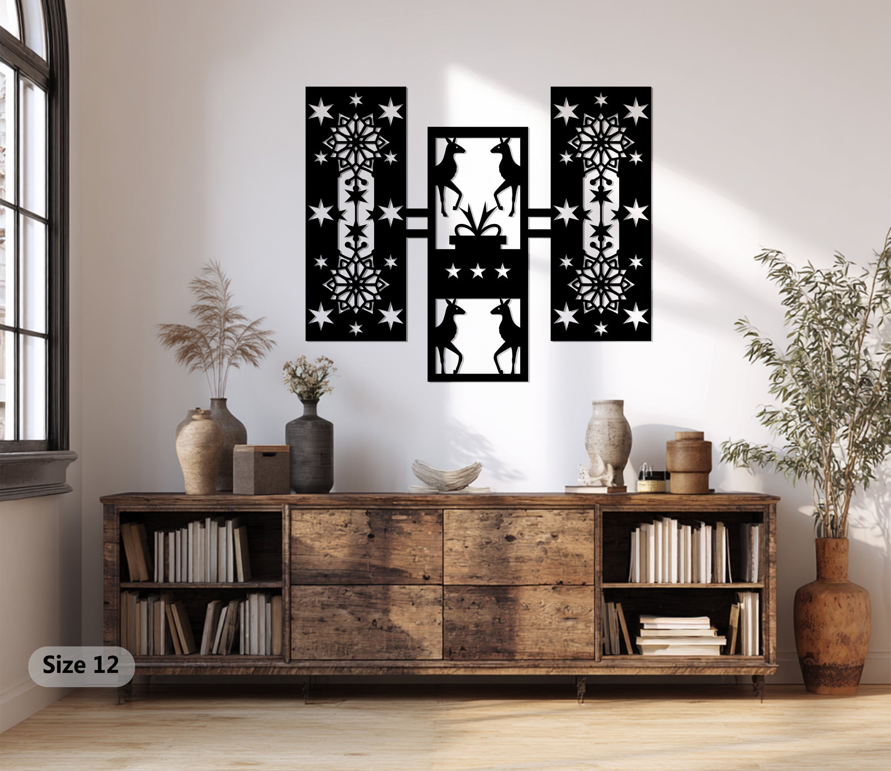 تناغم غزلان الشتاء – أشكال هندسية لعيد الميلاد فن جداري معدني