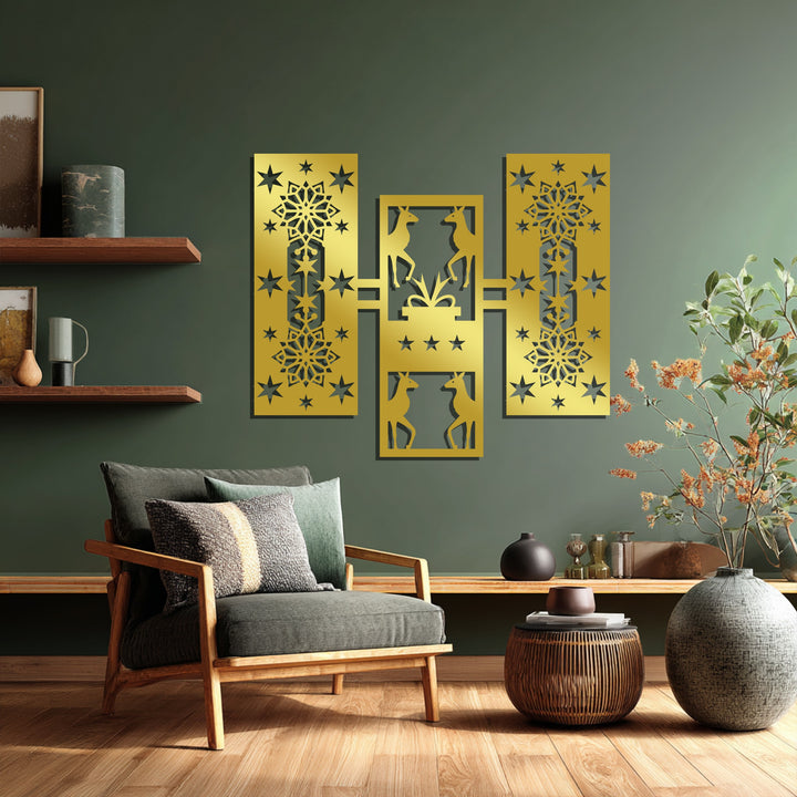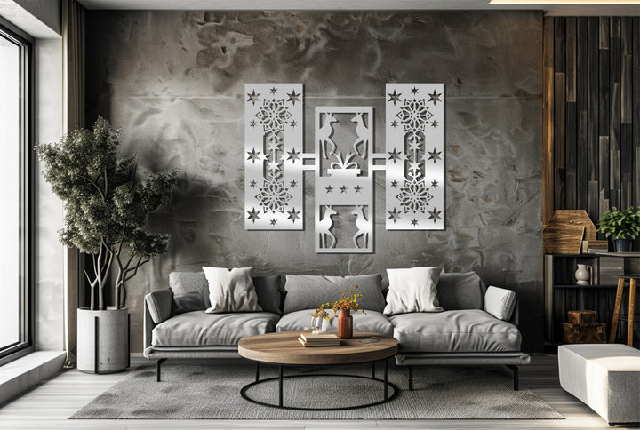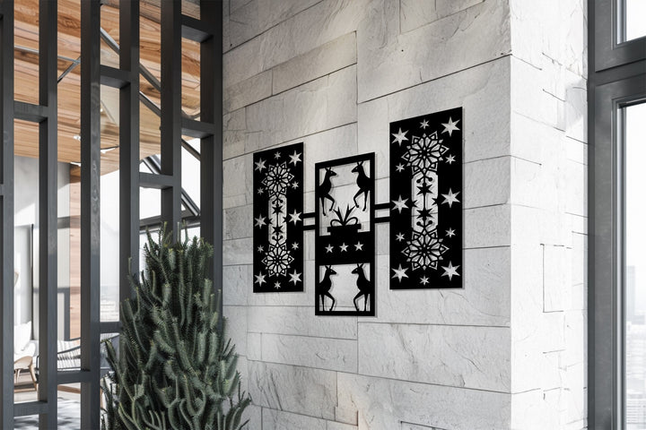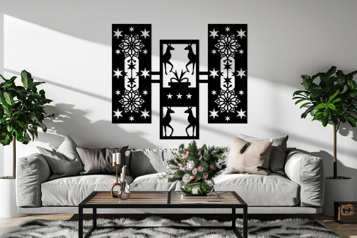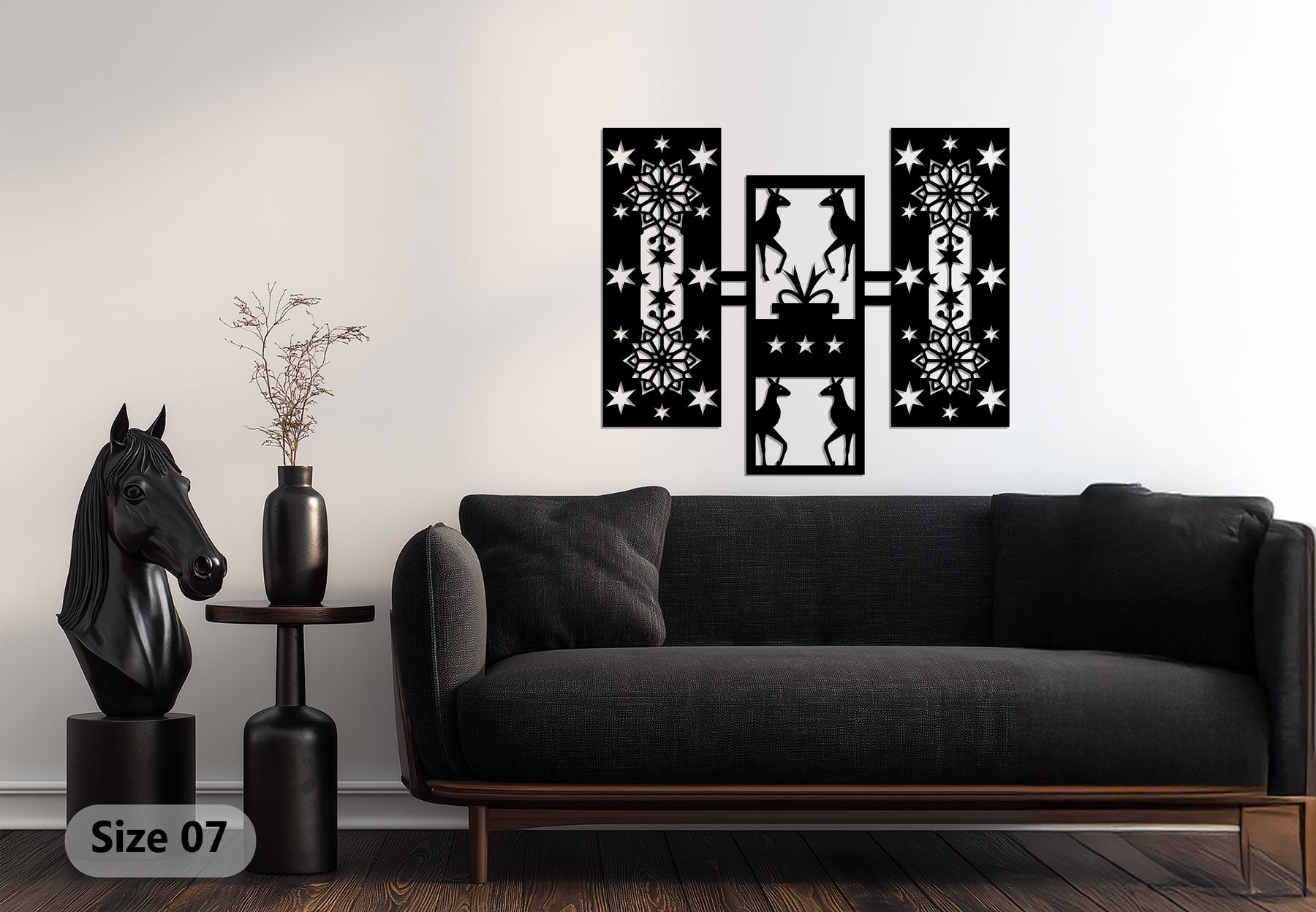 تناغم غزلان الشتاء – أشكال هندسية لعيد الميلاد فن جداري معدني