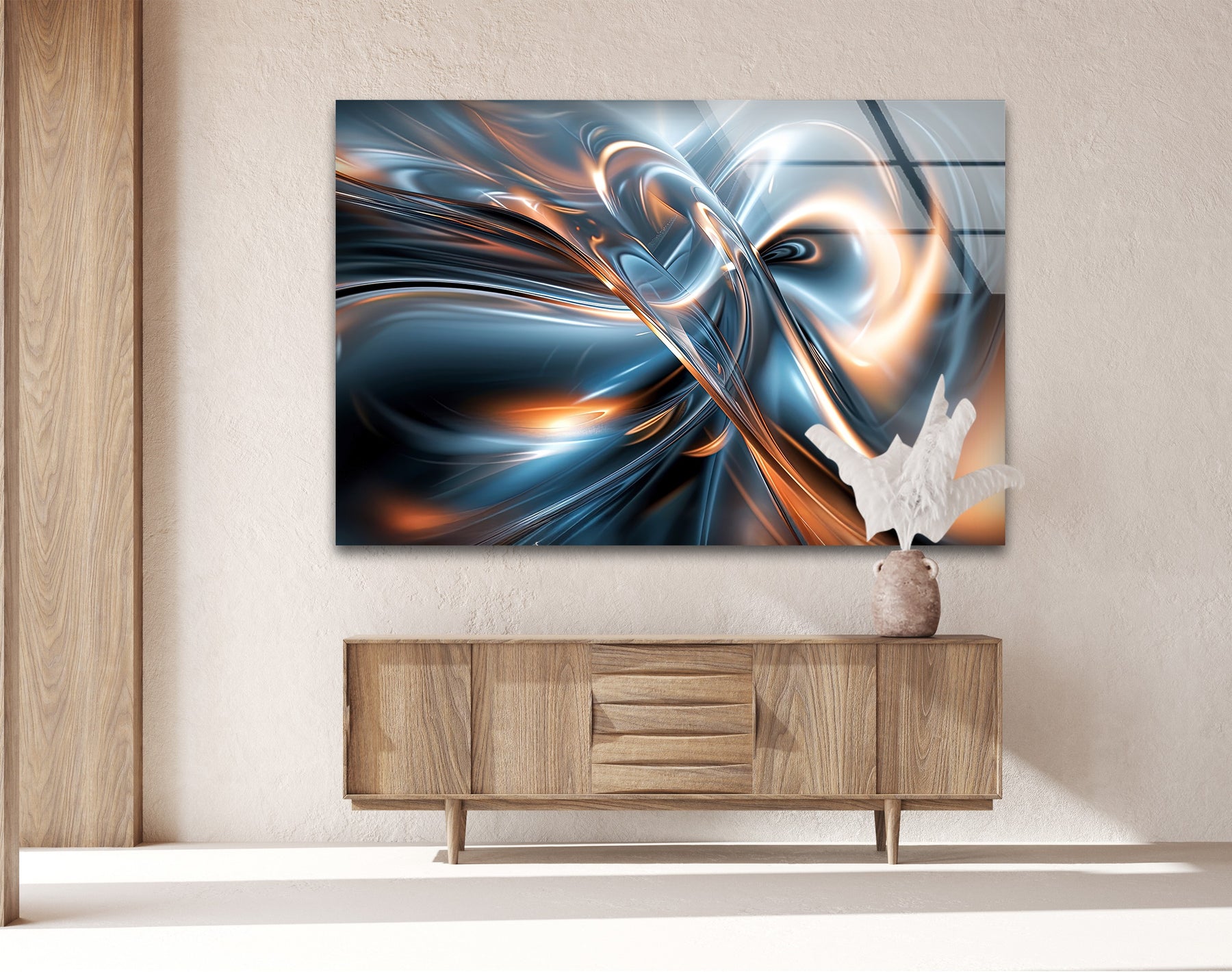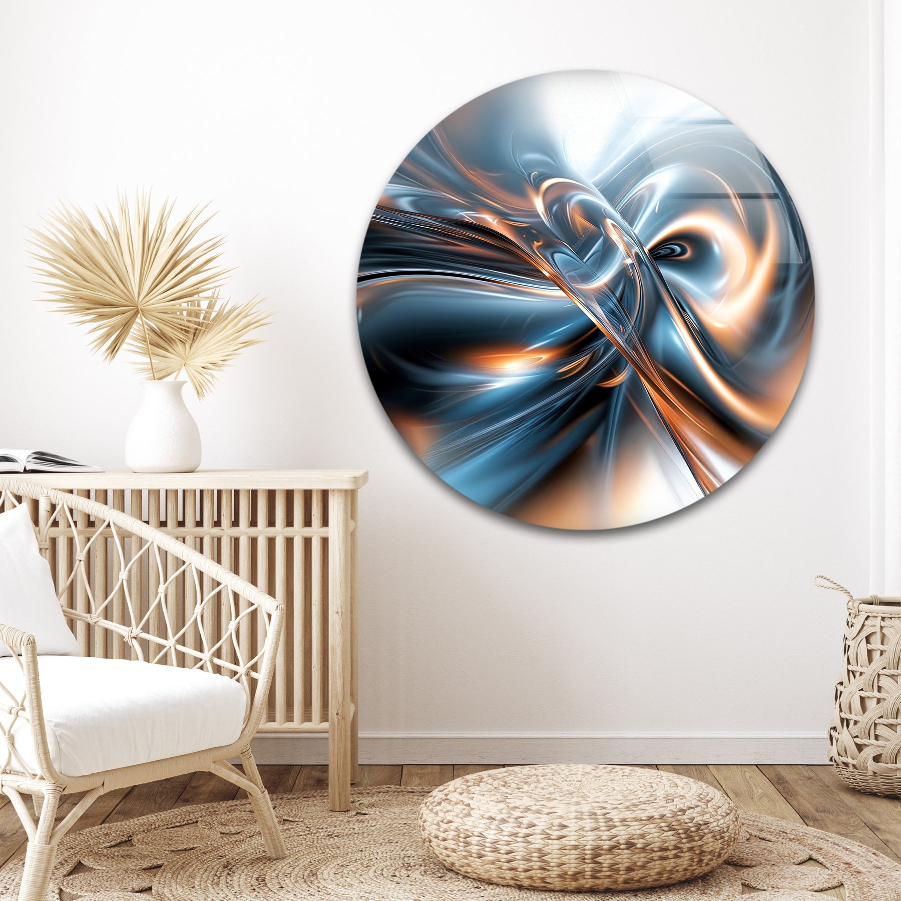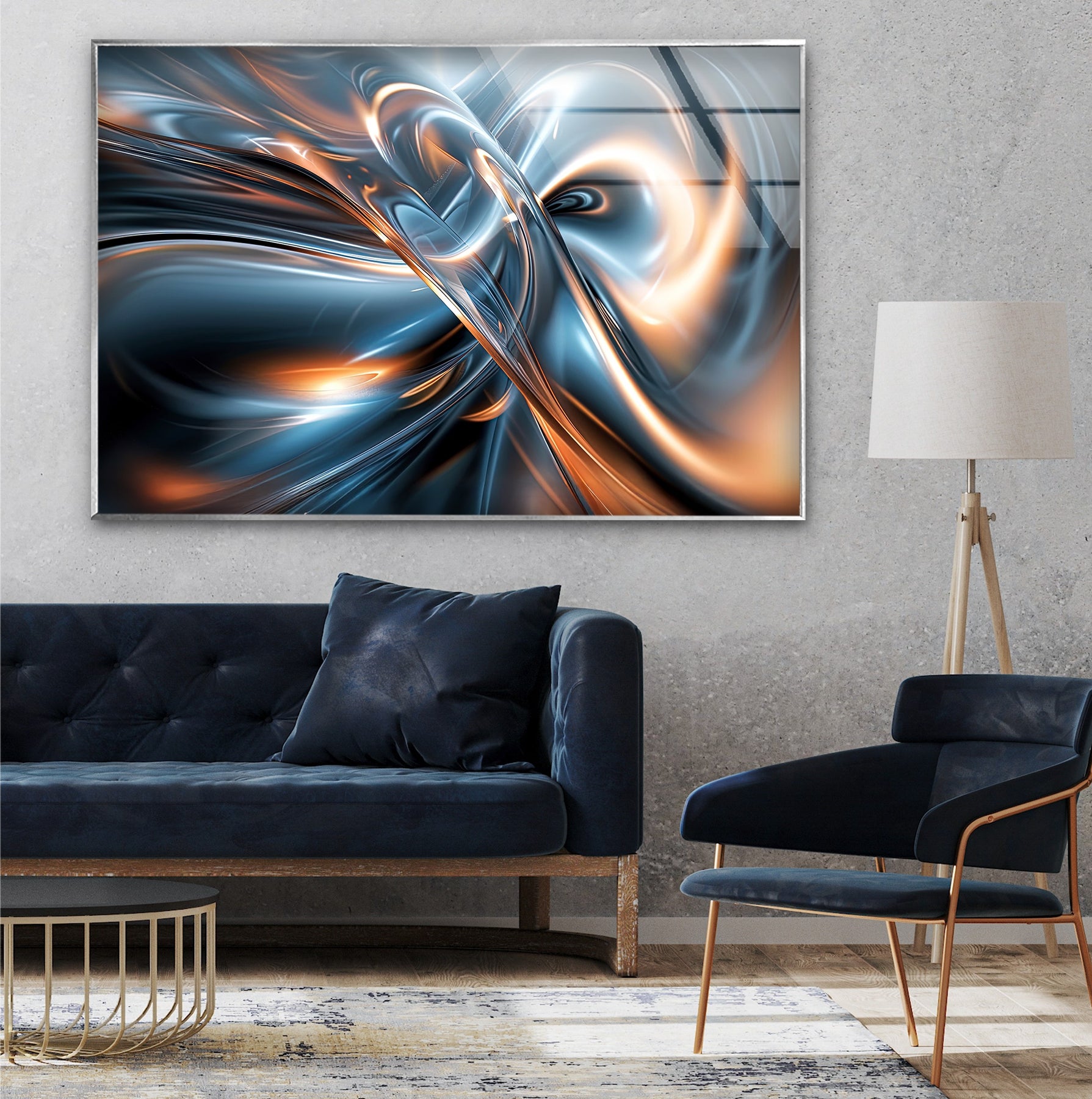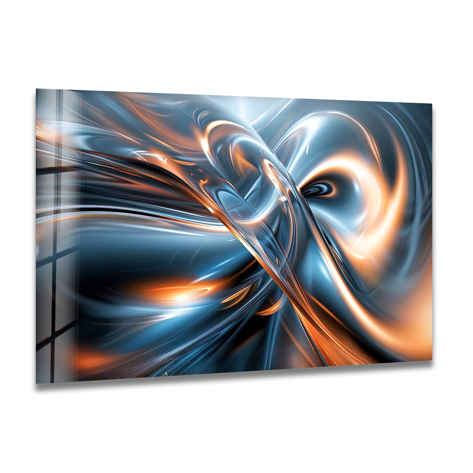 أشعل مساحتك بحركة كهربائية من AeroSpark Fusion Helix – دوامة معدنية عالية الطاقة اللوحات الزجاجية الجداريةتتميز هذه التركيبة الديناميكية بتيارات معدنية متشابكة بلون أزرق فولاذي جليدي وبرتقالي متوهج، تتقارب لتشكل دوامة قوية من الضوء والحركة. يشبه التصميم نواة طاقة مستقبلية - سائلة، متألقة، وجذابة للغاية - مثالية للديكورات الداخلية الجريئة والعصرية التي تتطلب تأثيرًا بصريًا قويًا.