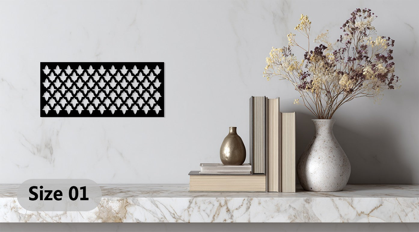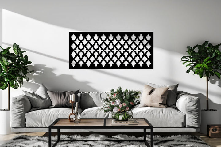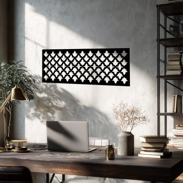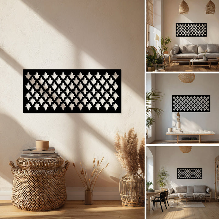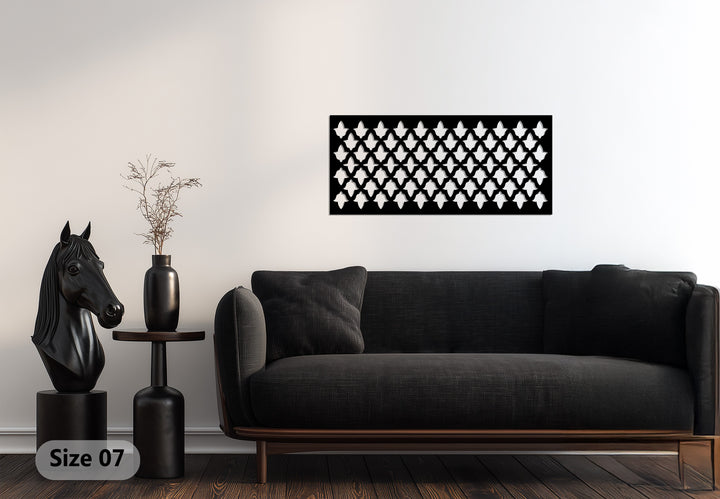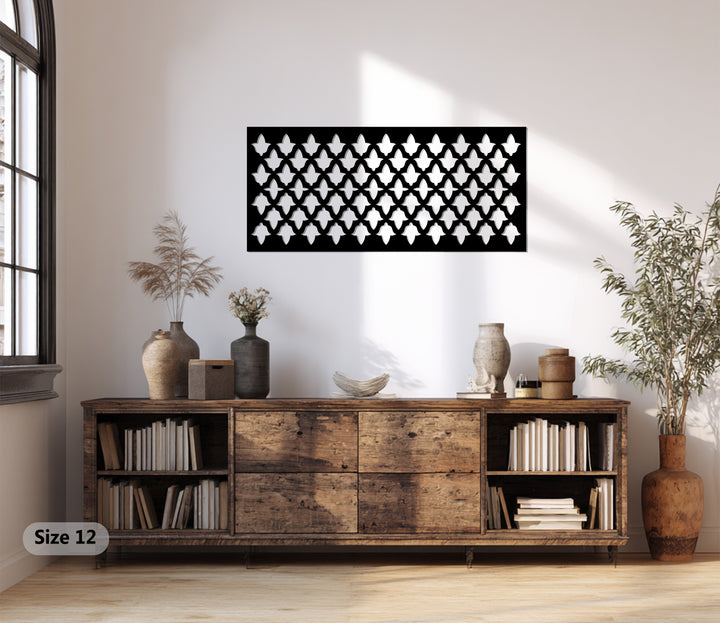 حسّن مساحة معيشتك مع نمط التناغم - هندسي حديث فن جداري معدني لوحةمزيج مثالي بين الهيكل والأناقة. يتميز هذا التصميم الأفقي الجريء بزخارف هندسية متكررة مستوحاة من الأنماط المعمارية الحديثة، مما يخلق توازناً راقياً بين النظام والأناقة.