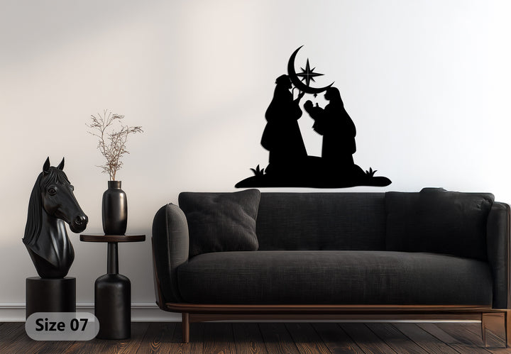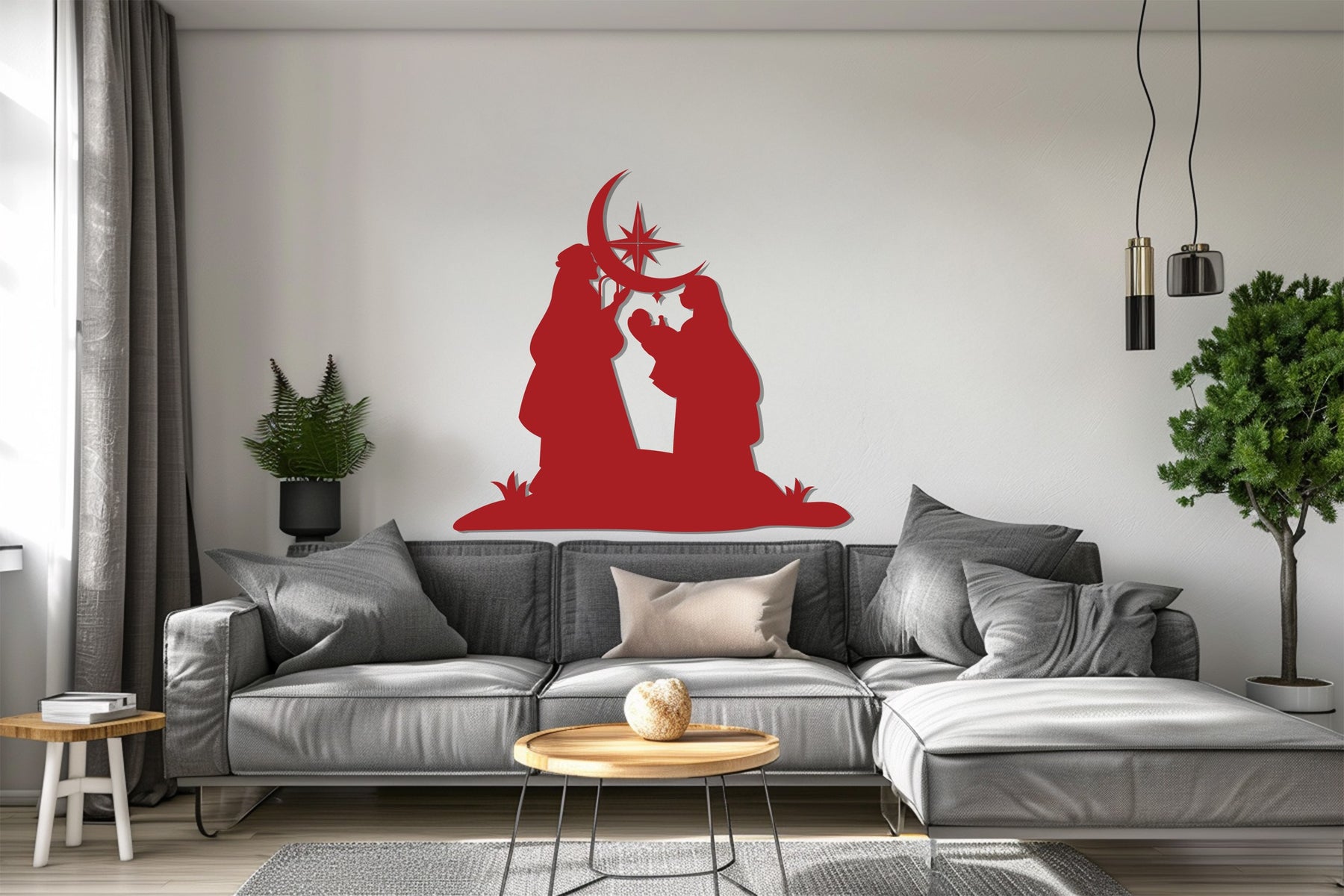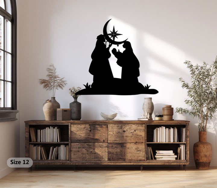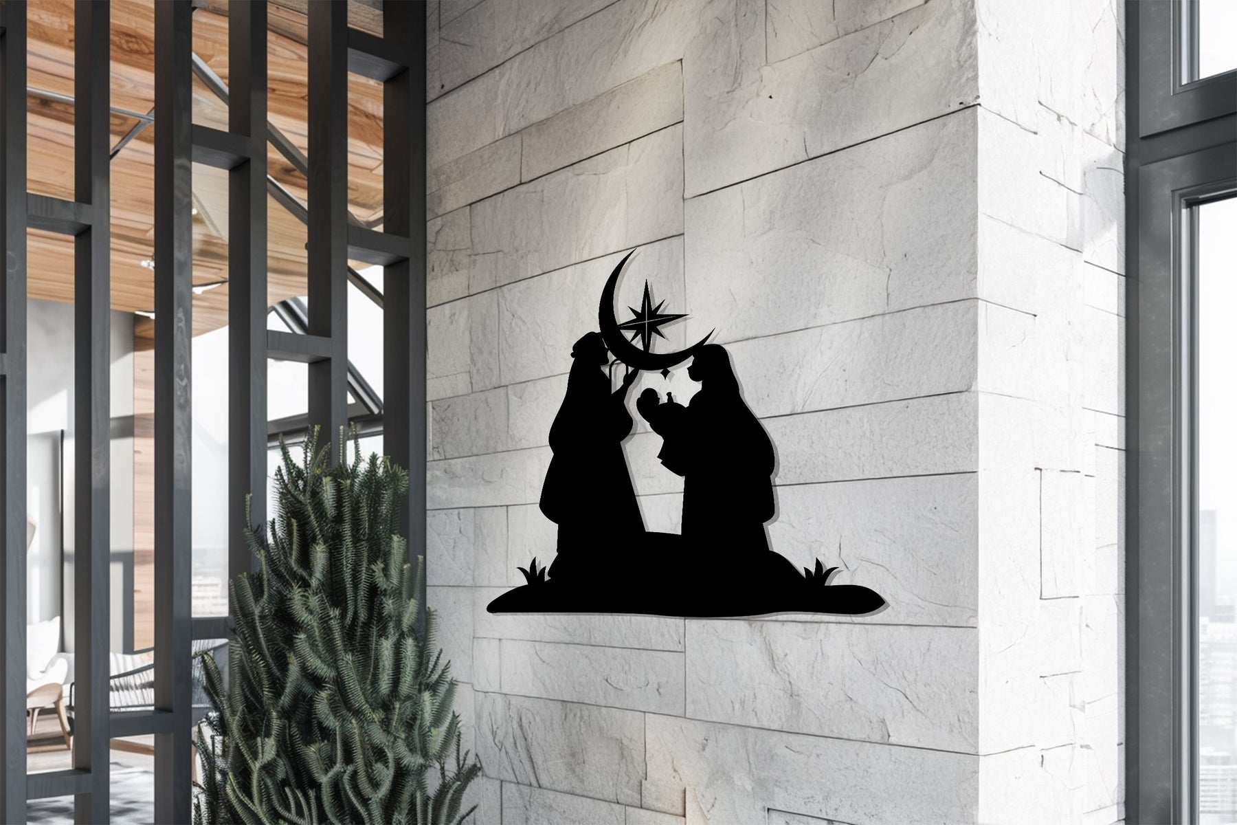 Holy Family Nativity Metal Wall Art under crescent moon and star