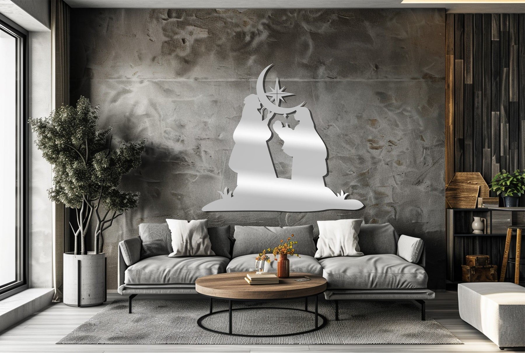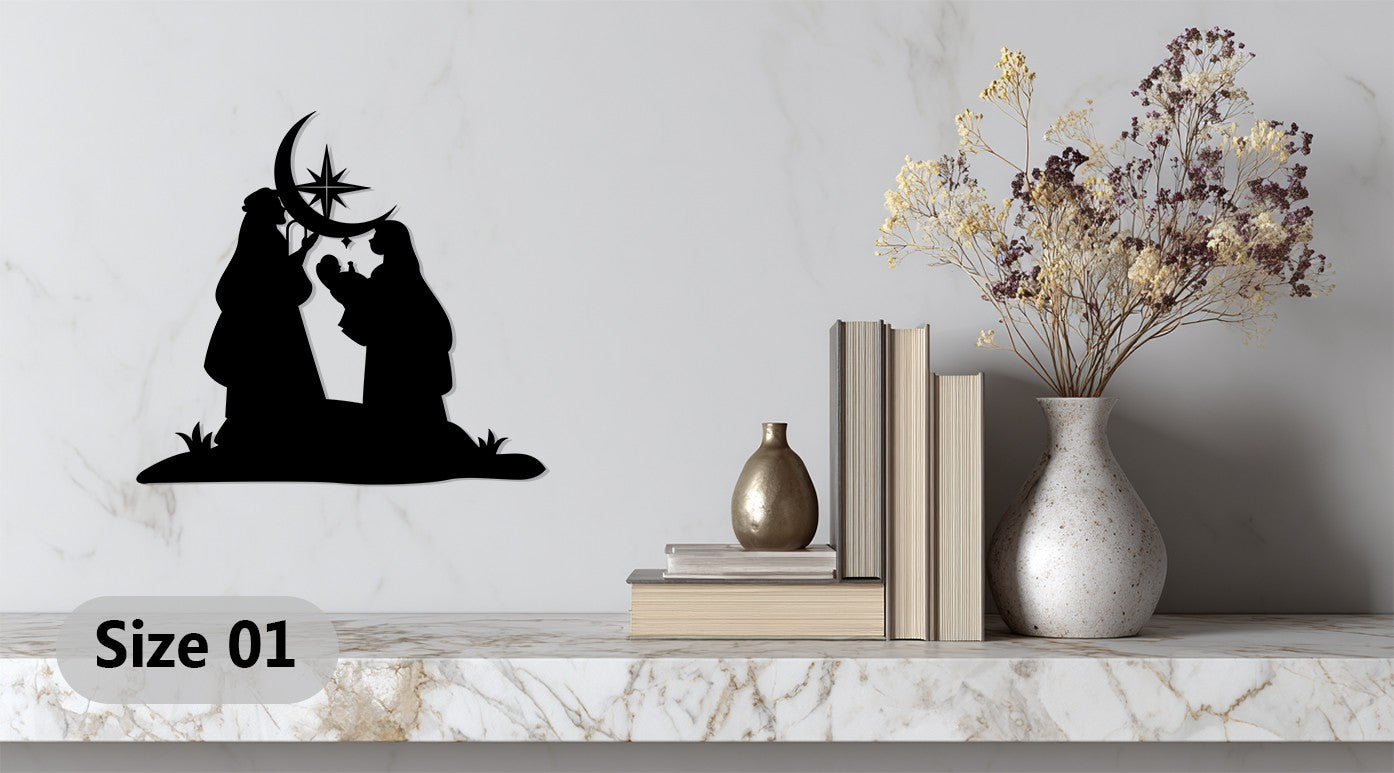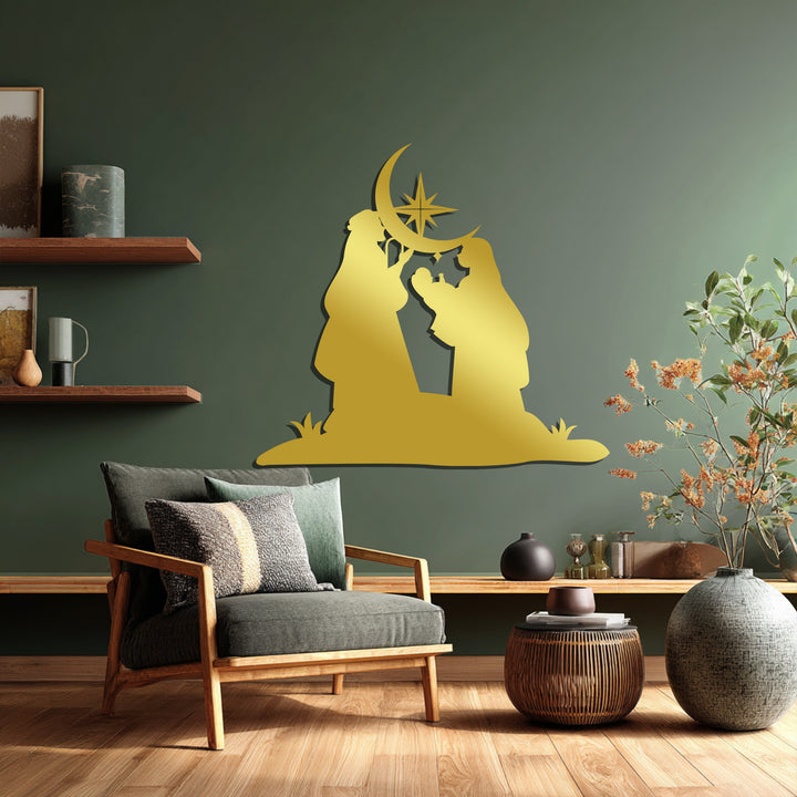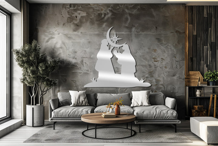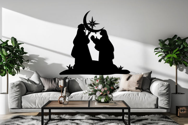 Holy Family Nativity Metal Wall Art under crescent moon and star