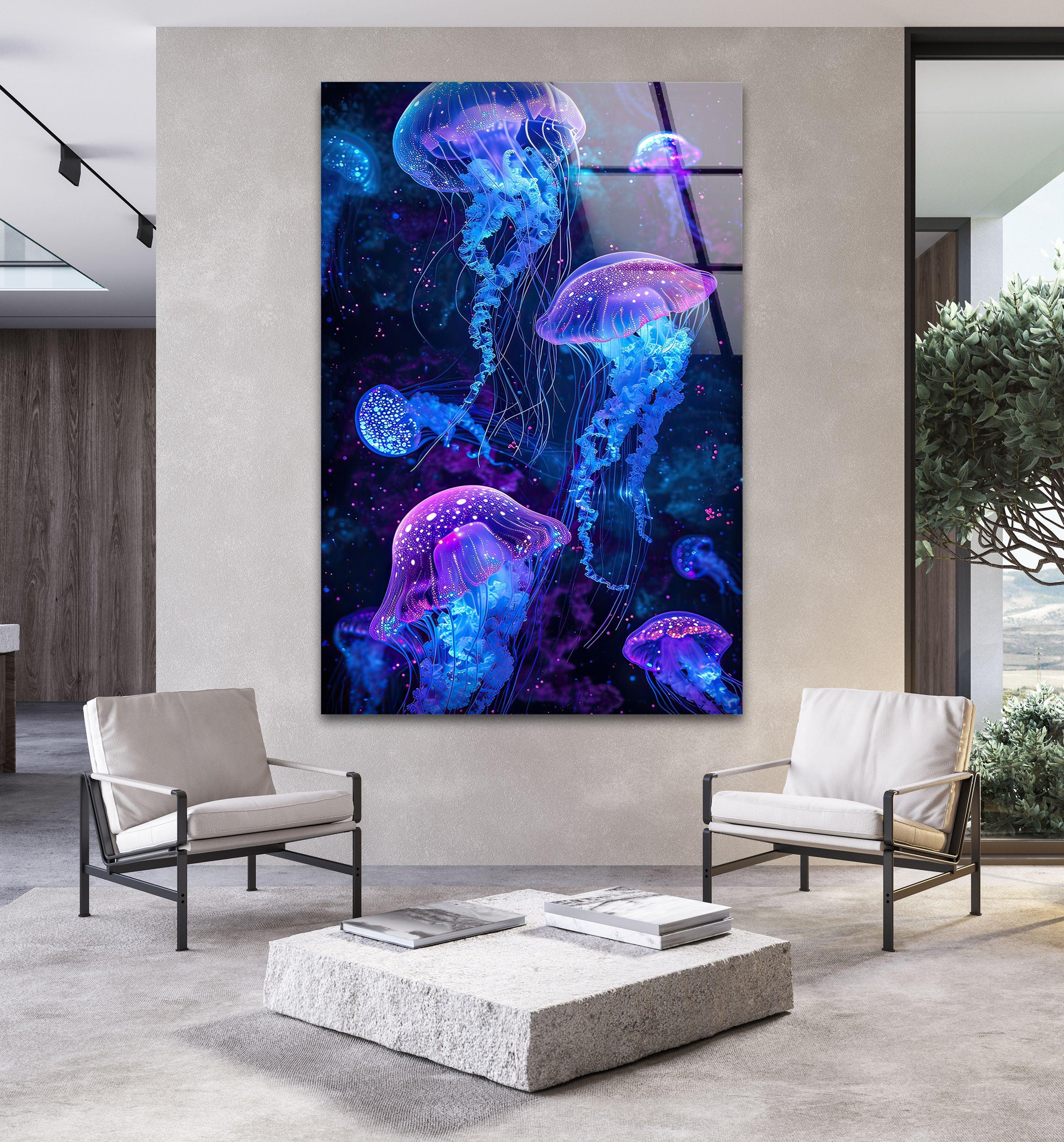 لوحة فنية جدارية لقناديل البحر المتوهجةانغمس في أعماق المحيط...