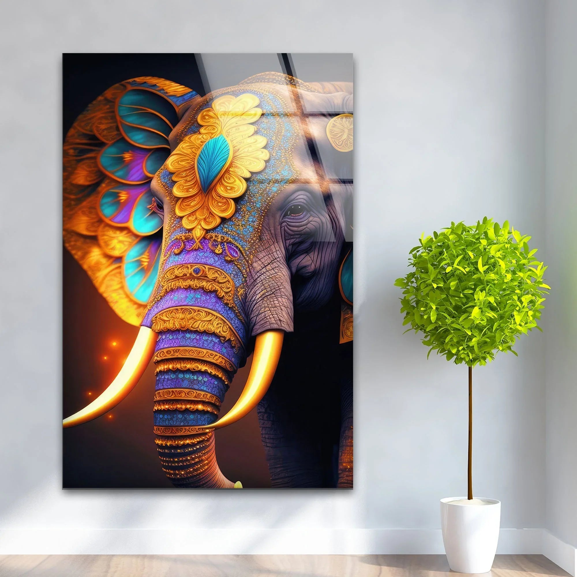 ديكور جداري على شكل فيل هندي ملون - فن...