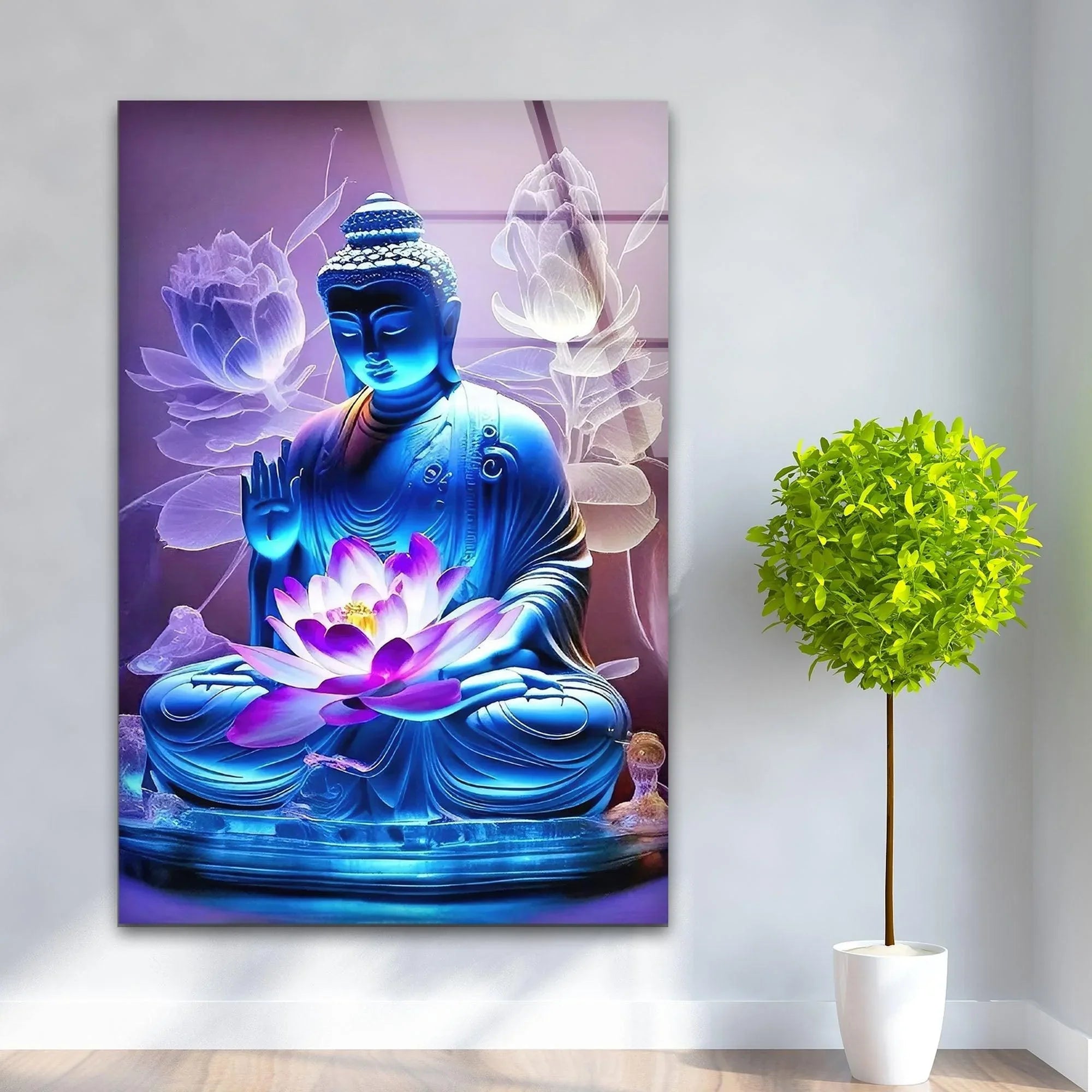 لوحة فنية جدارية لتمثال بوذا الأزرق - هدوء في...