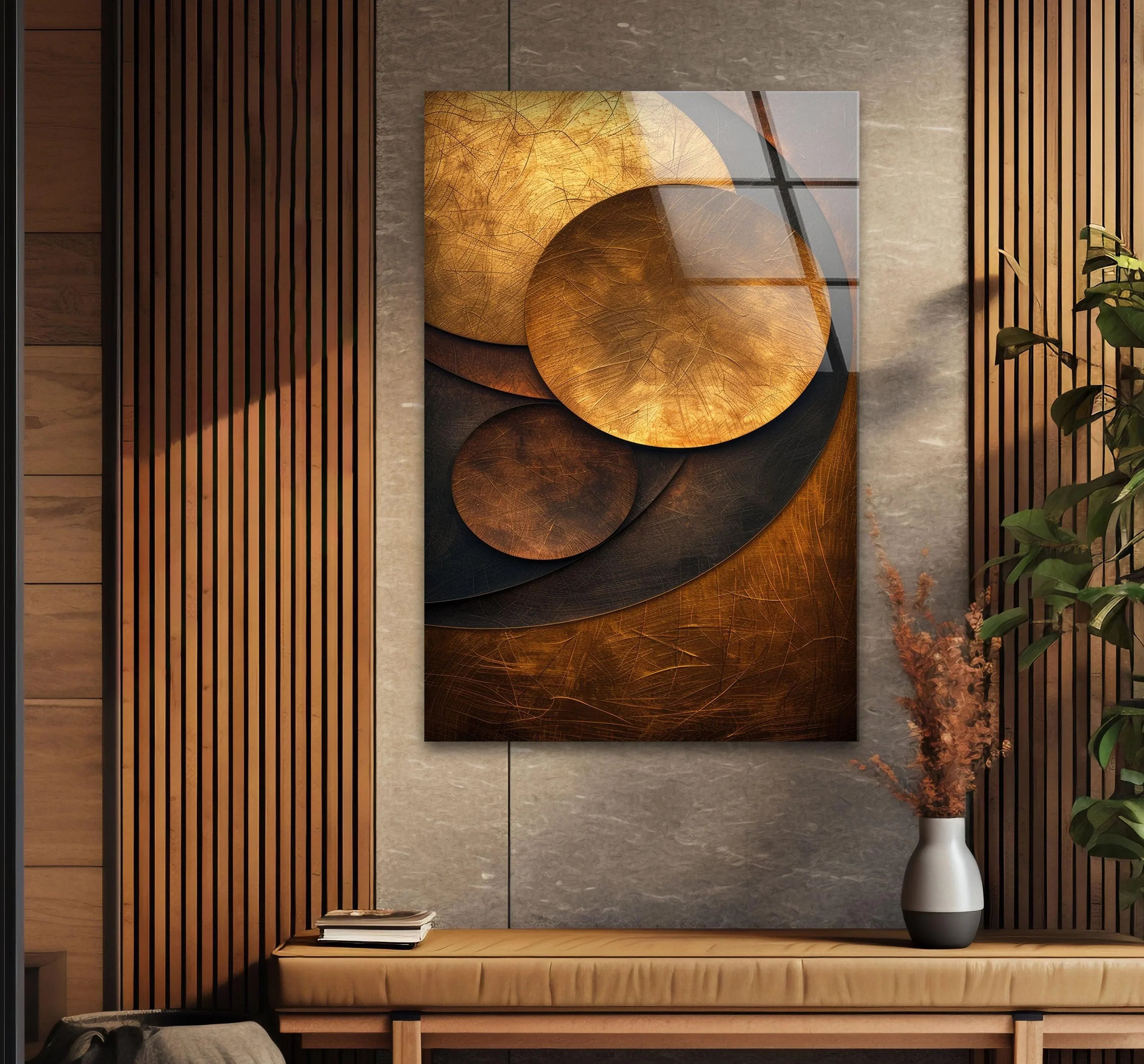 مطبوعات تجريدية بيضاوية اللون النحاسي المجرد اللوحات الزجاجية الجداريةقم...