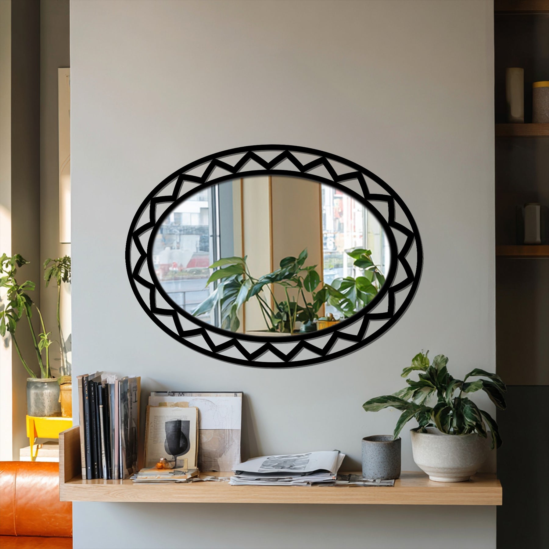 Modern geometric oval mirror wall decor