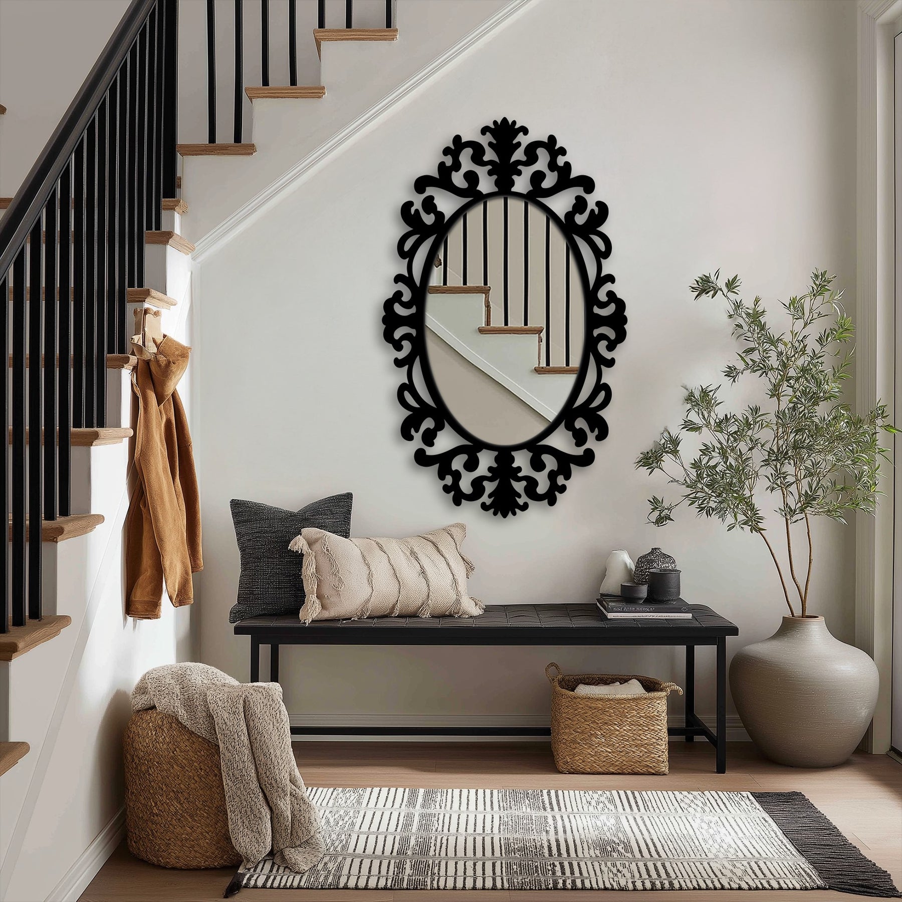 Bring a refined, classic touch to your space with this oval decorative wall mirror, framed in sweeping baroque-inspired curves. The elegant silhouette blends artistry with everyday function, making your wall feel curated and complete.