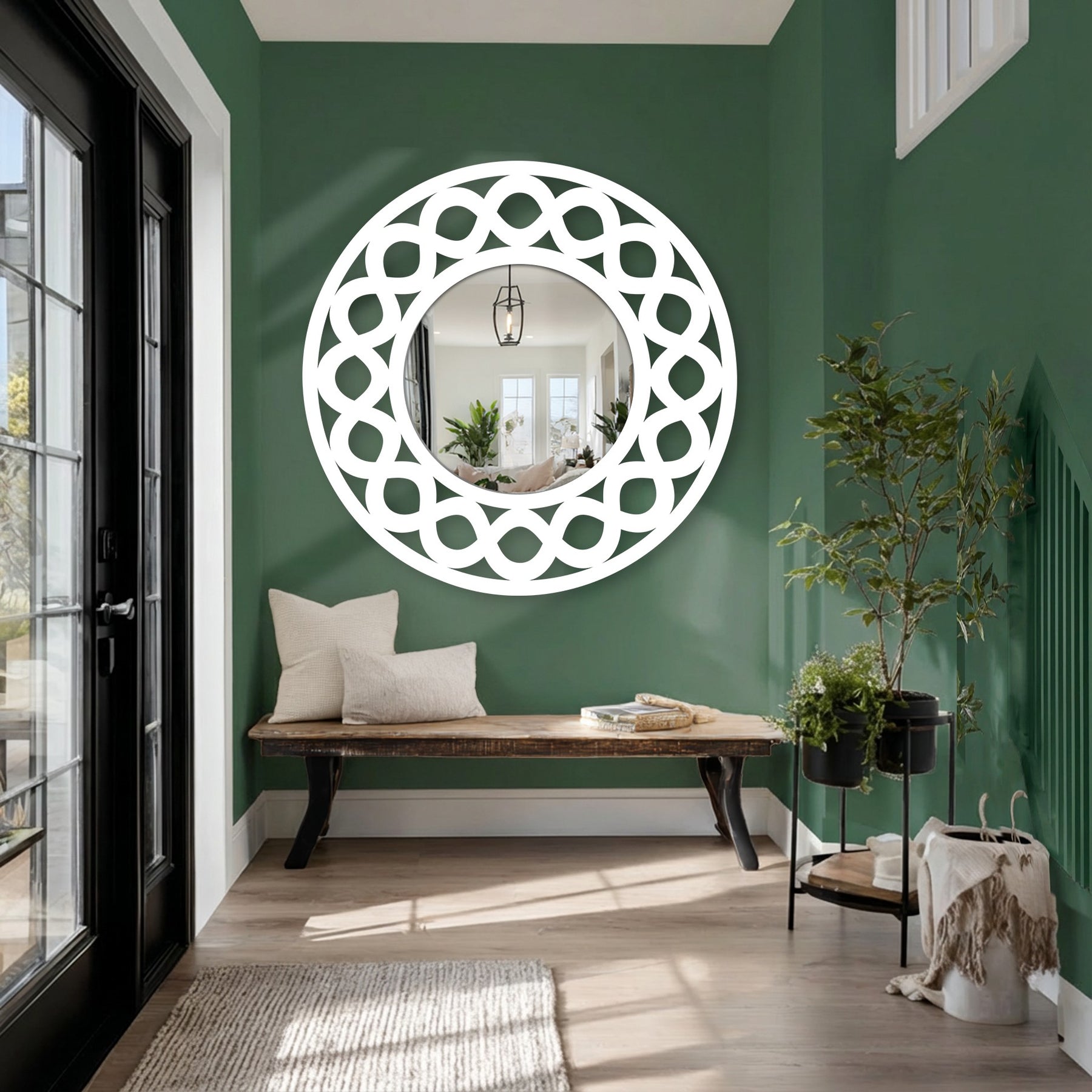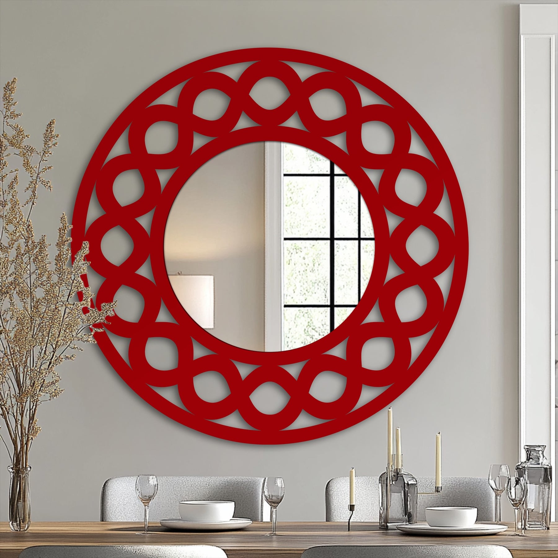 Displayed as a standout mirror wall decor, this modern wall mirror transforms plain walls into intentional focal points. The structured pattern provides durability and architectural clarity, allowing the looping design to remain delicate, airy, and visually striking.